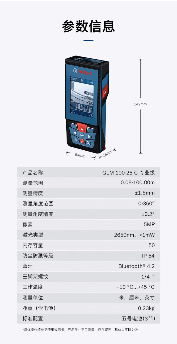 Bosch (BOSCH) laser range finder 100 meters GLM100-25C outdoor infrared range finder Bluetooth map doctor laser ruler 100 meters outdoor range finder + Bosch tripod