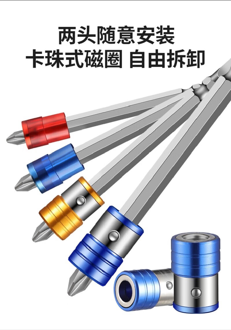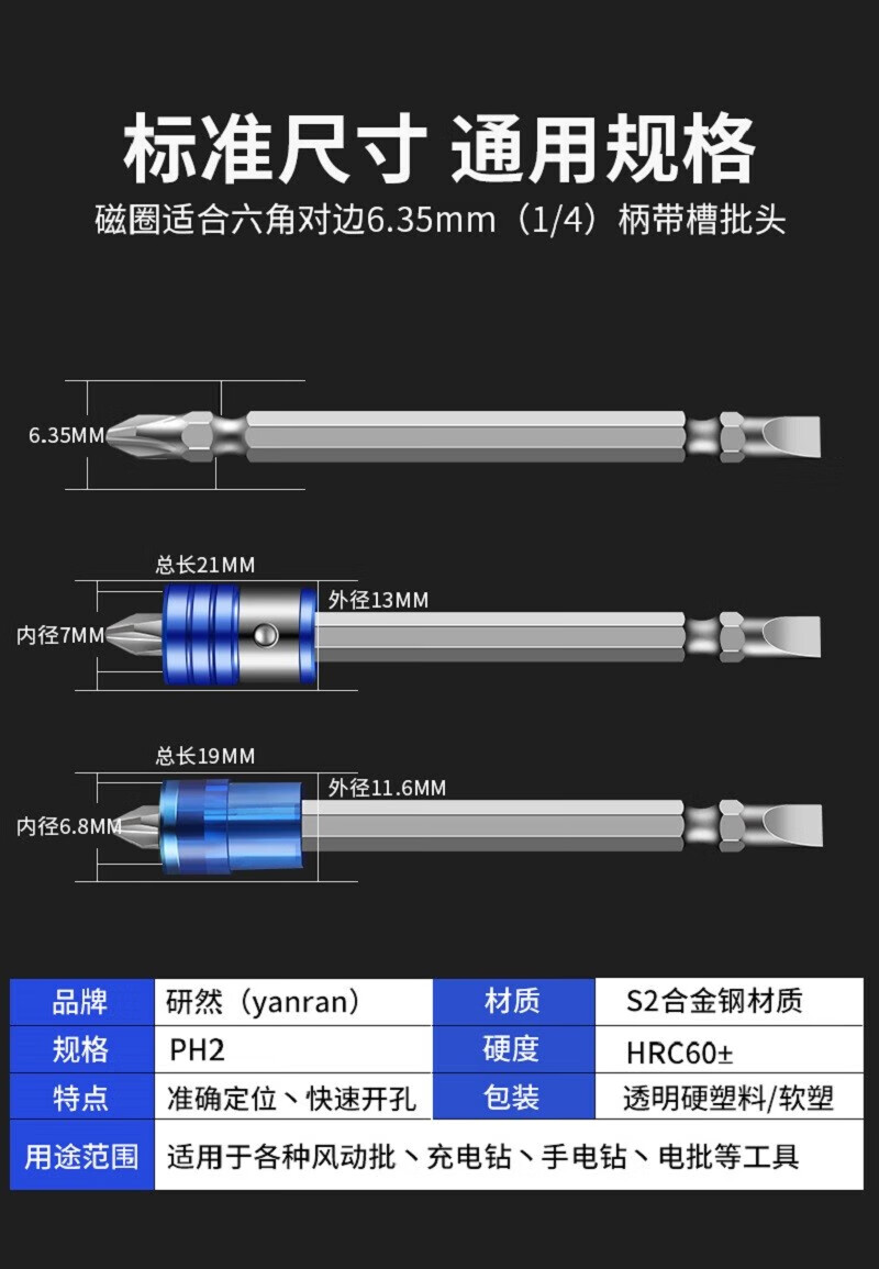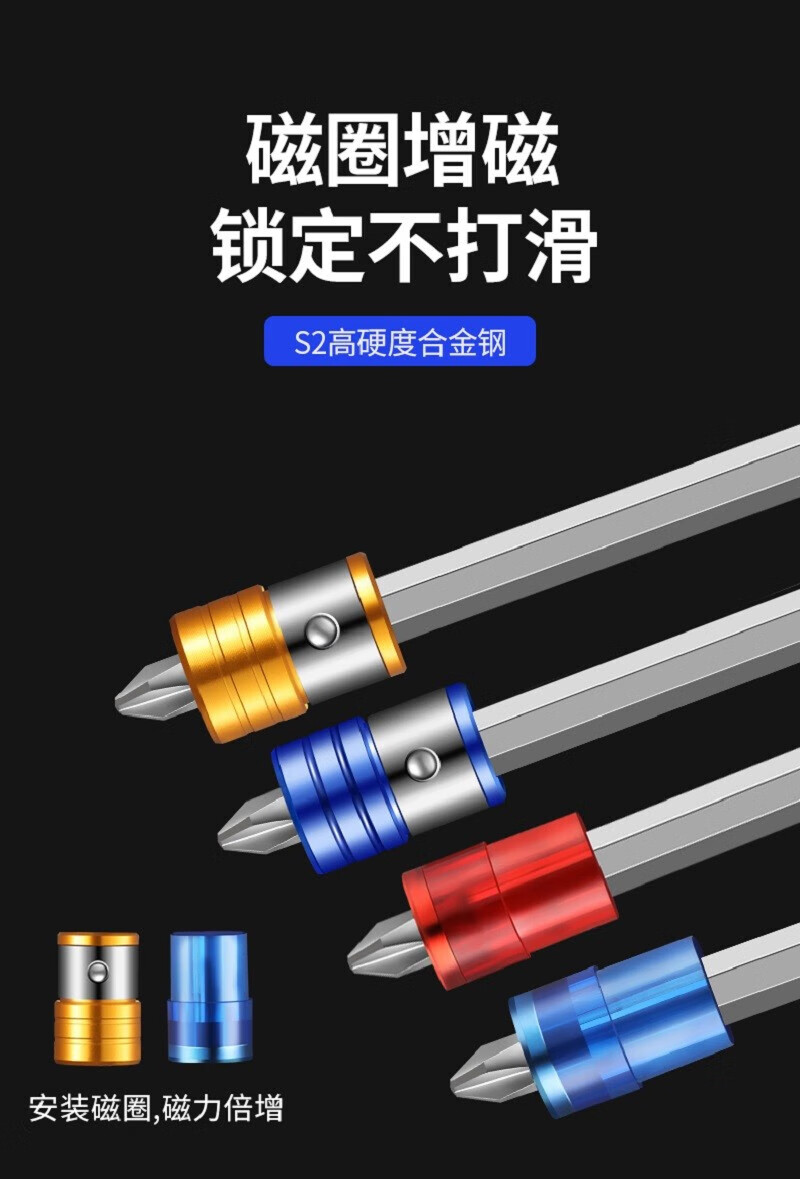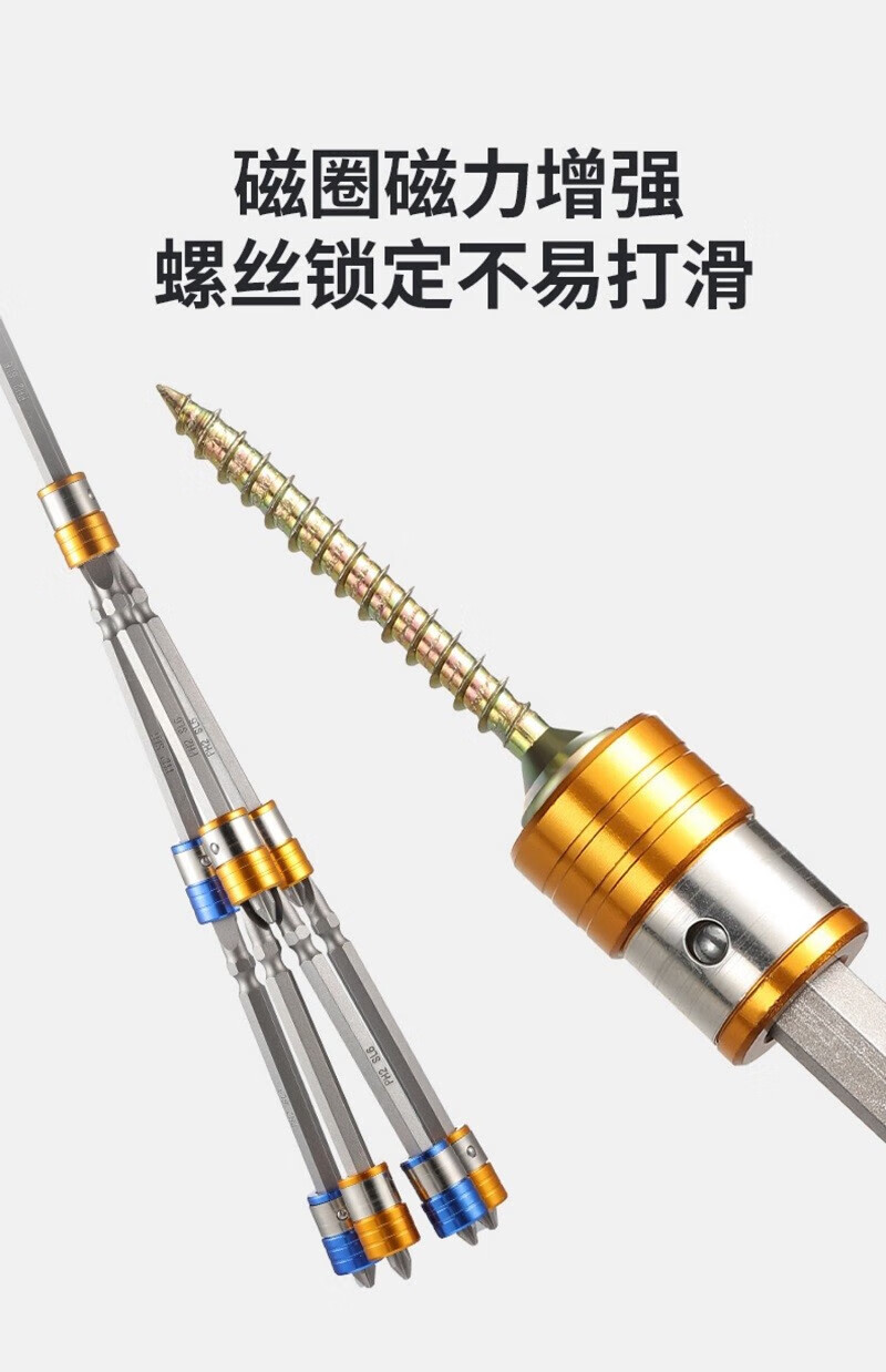 Yanran Cross Bit Set Strong Magnetic Extended Special Grade Electric Screwdriver Bit Hand Electric Drill Extended Super Hard Anti-hit Strong Magnetic Circle Gold and White Model (1 Pack)