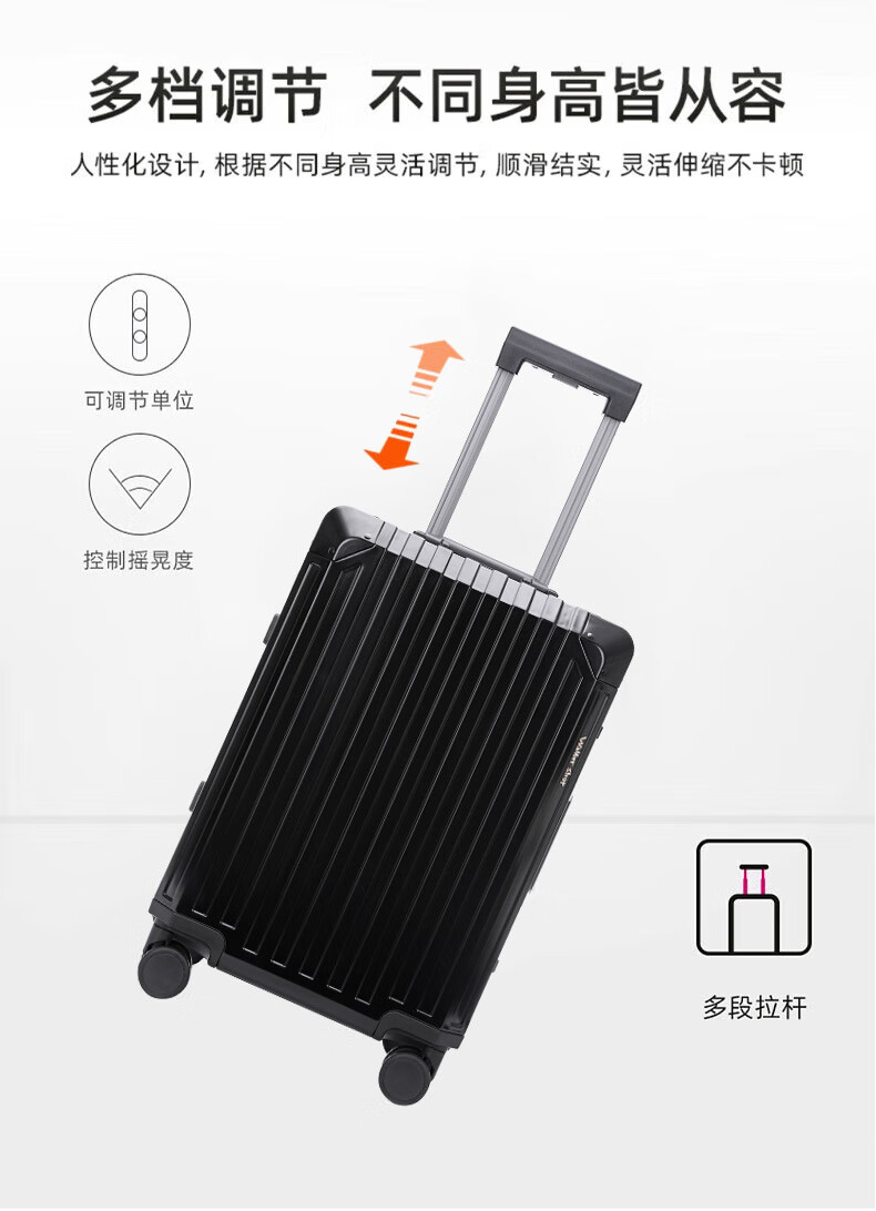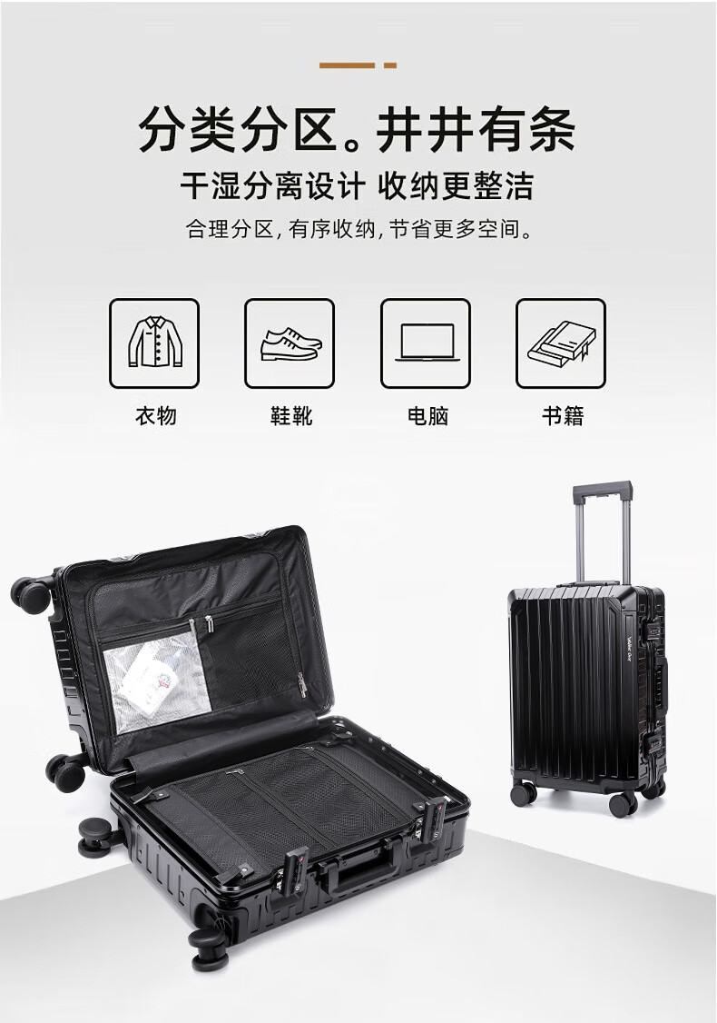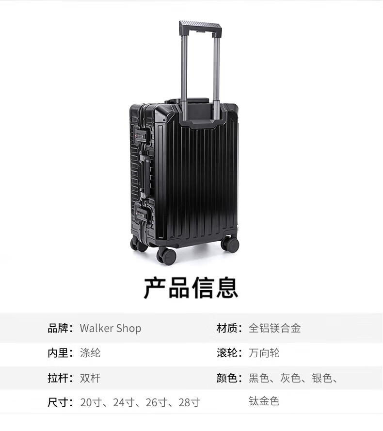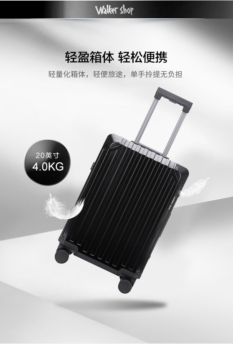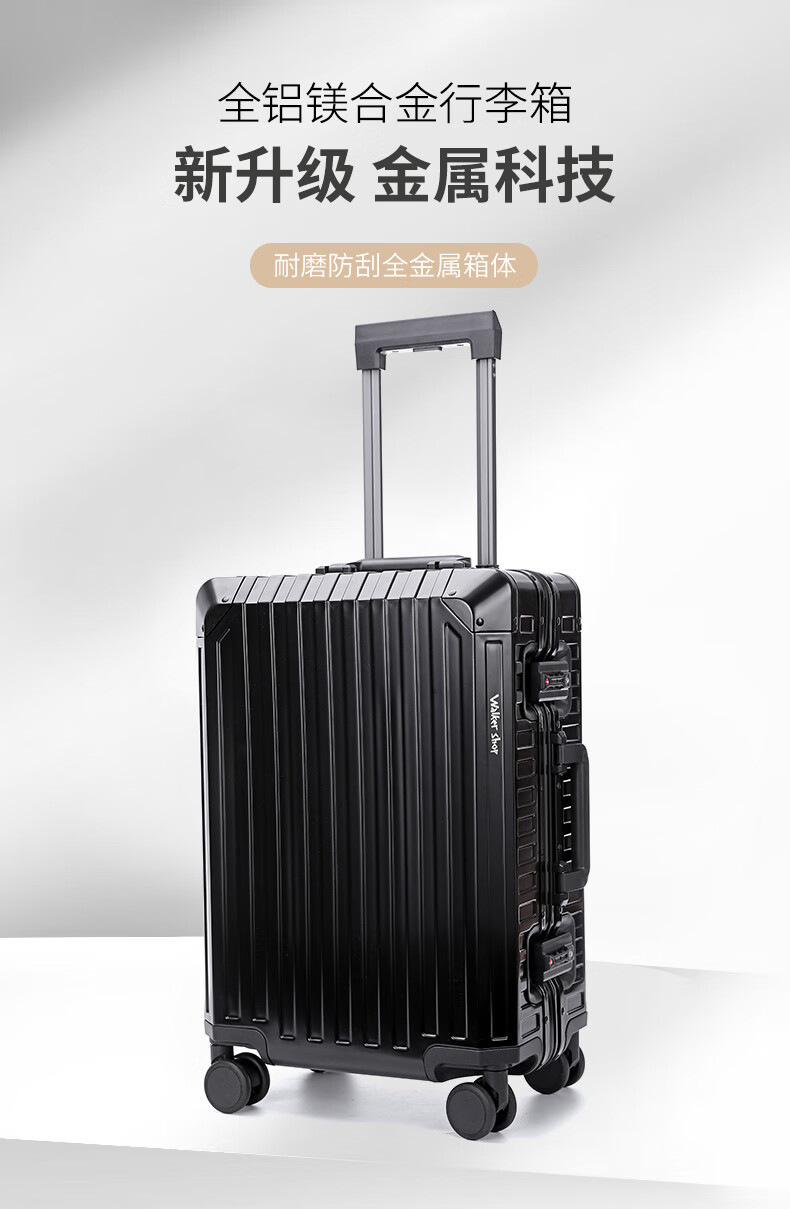 Walker Shop Luggage 2026 New Boarding Trolley Case Aluminum-Magnesium Alloy Multifunctional Business Travel Suitcase Mysterious Black Upgraded Thickened Aluminum Frame 24-inch Check-in Box/All Aluminum-Magnesium Alloy