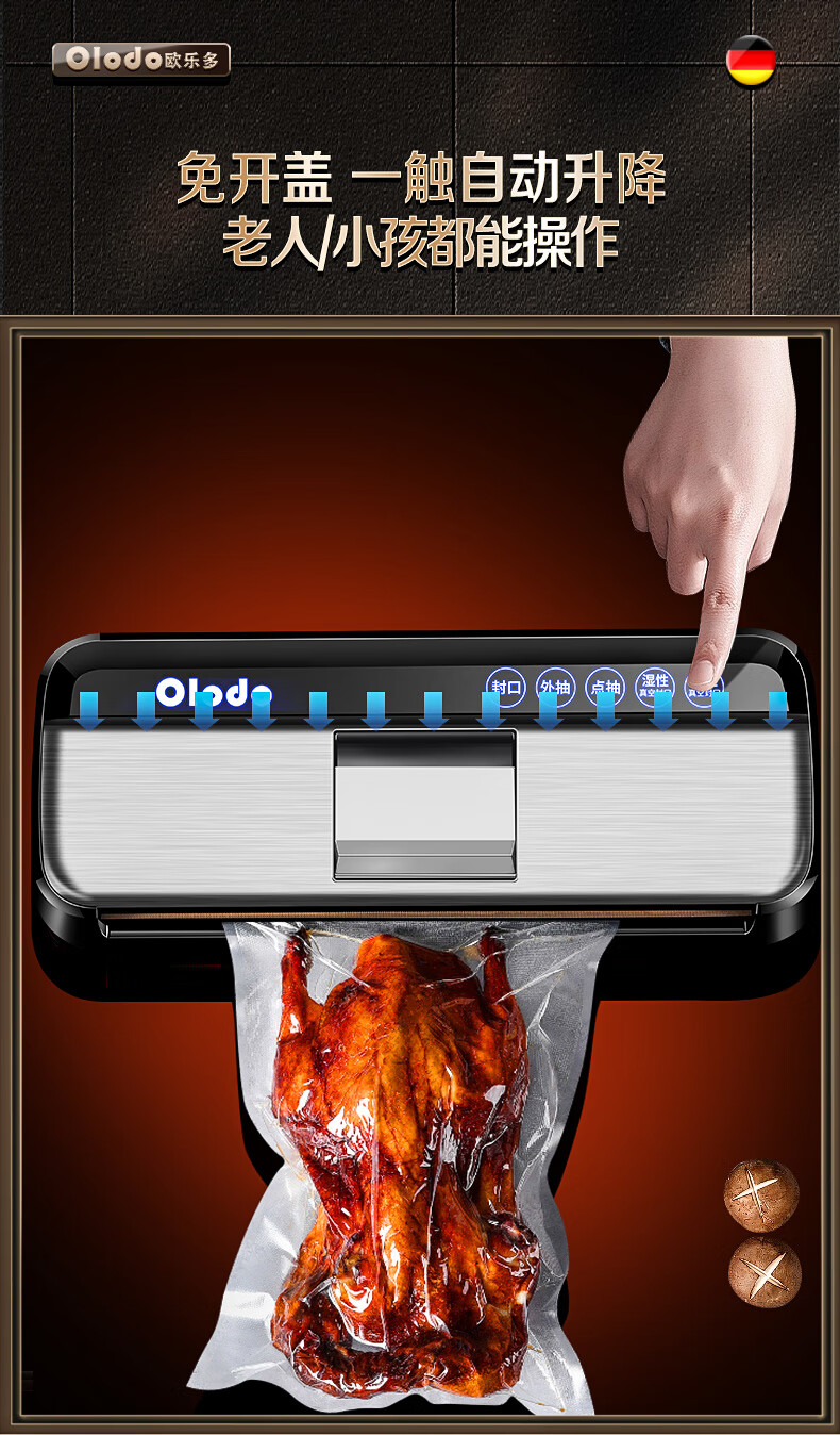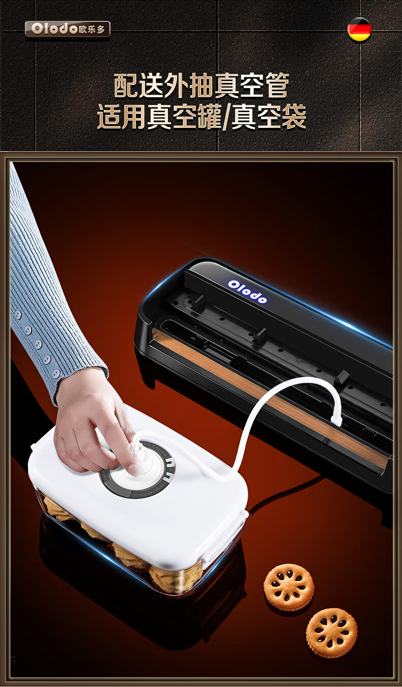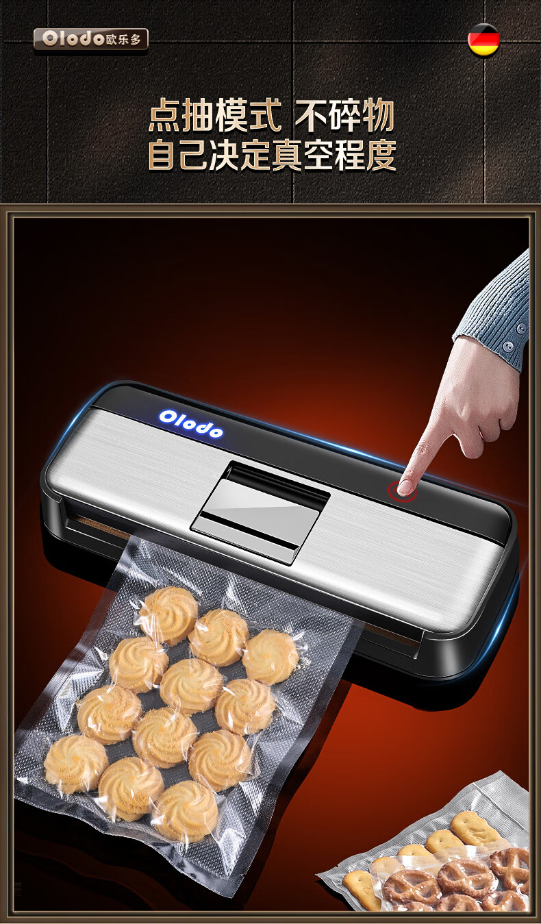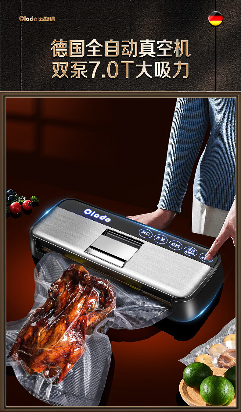 Olodo Germany vacuum sealing machine fully automatic packaging machine household double-pump vacuum machine powerful plastic sealing machine packaging machine 15*20cm (50 pieces)