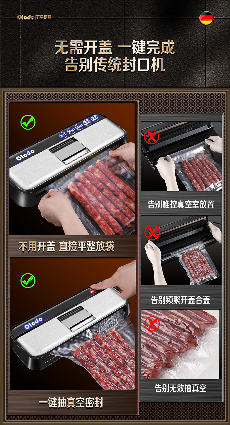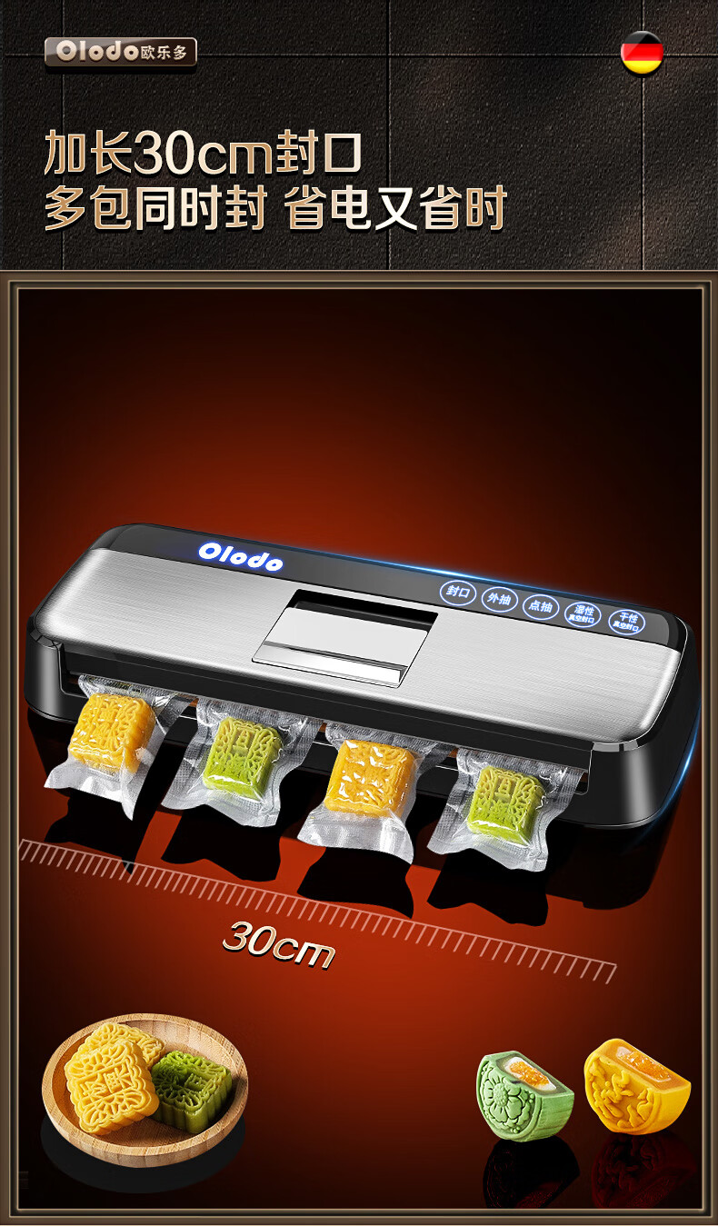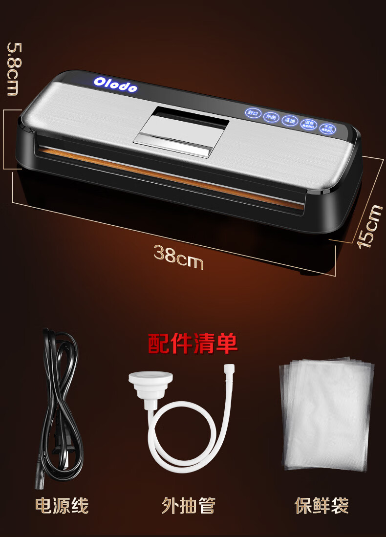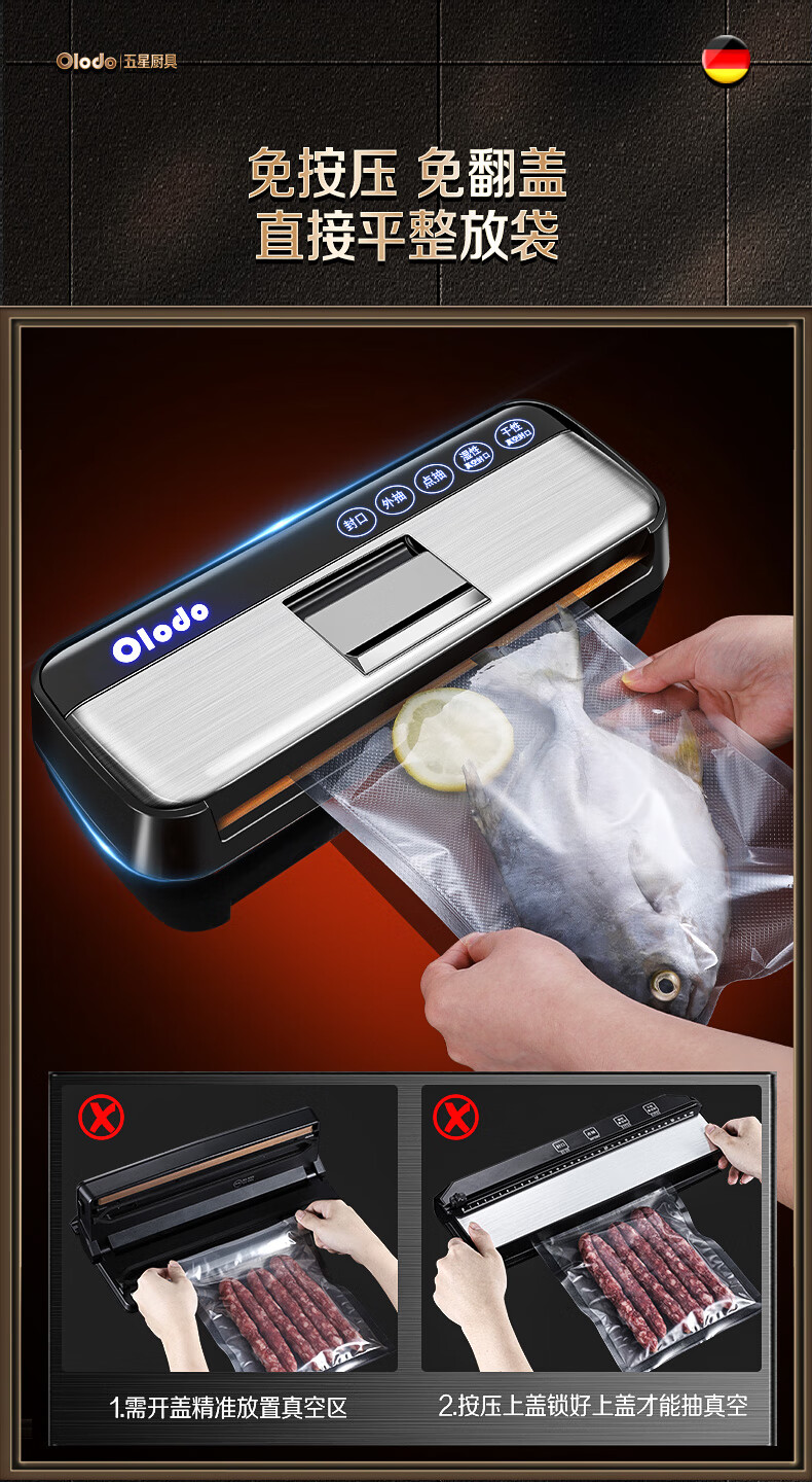 Olodo Germany vacuum sealing machine fully automatic packaging machine household double-pump vacuum machine powerful plastic sealing machine packaging machine 15*20cm (50 pieces)