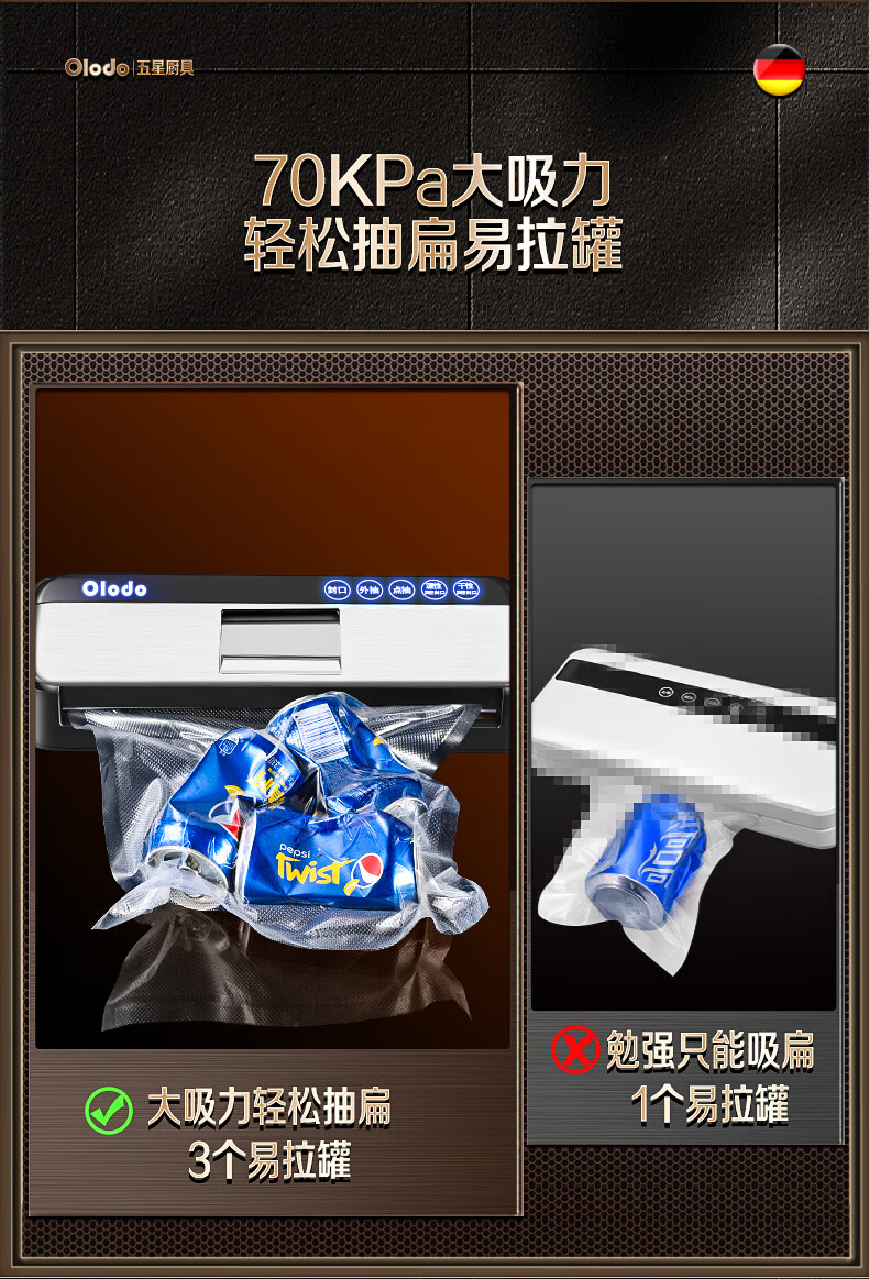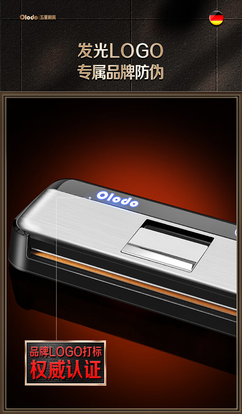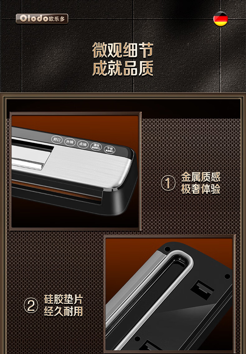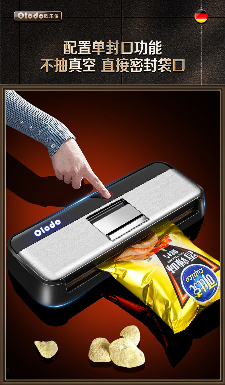 Olodo Germany vacuum sealing machine fully automatic packaging machine household double-pump vacuum machine powerful plastic sealing machine packaging machine 15*20cm (50 pieces)