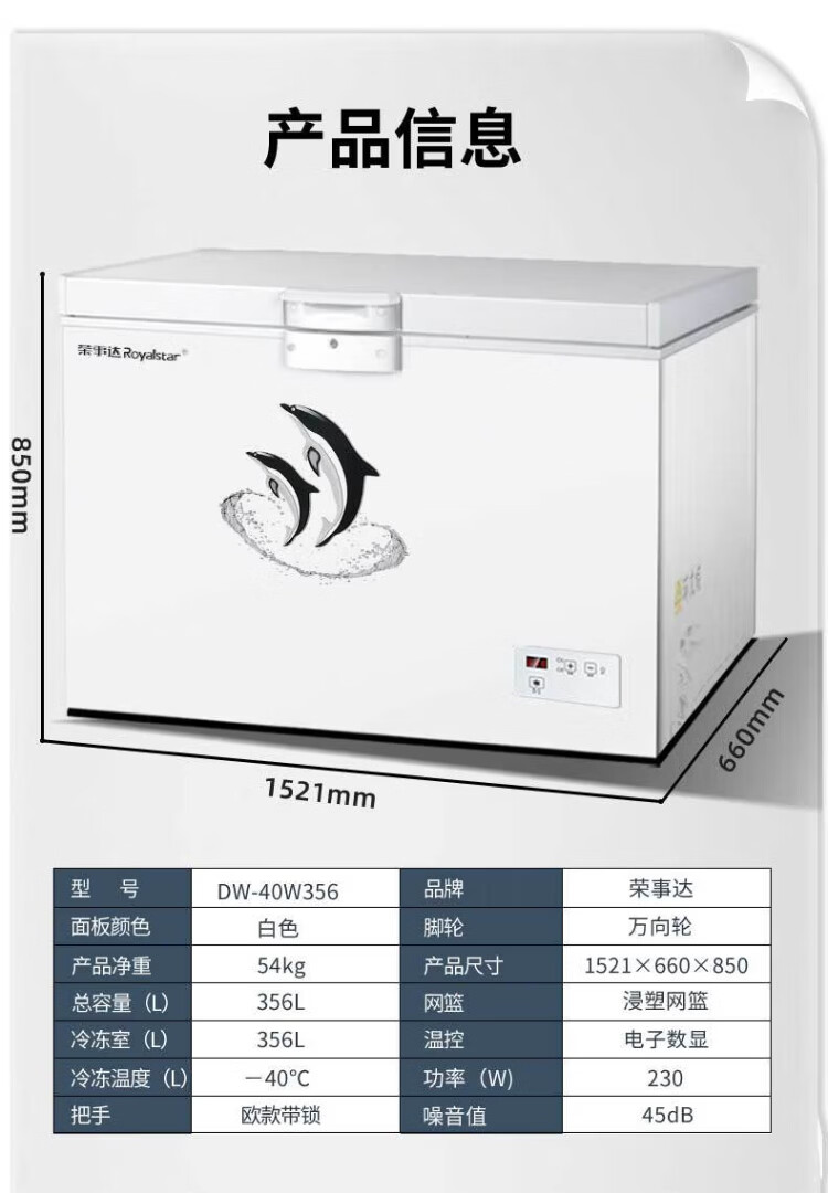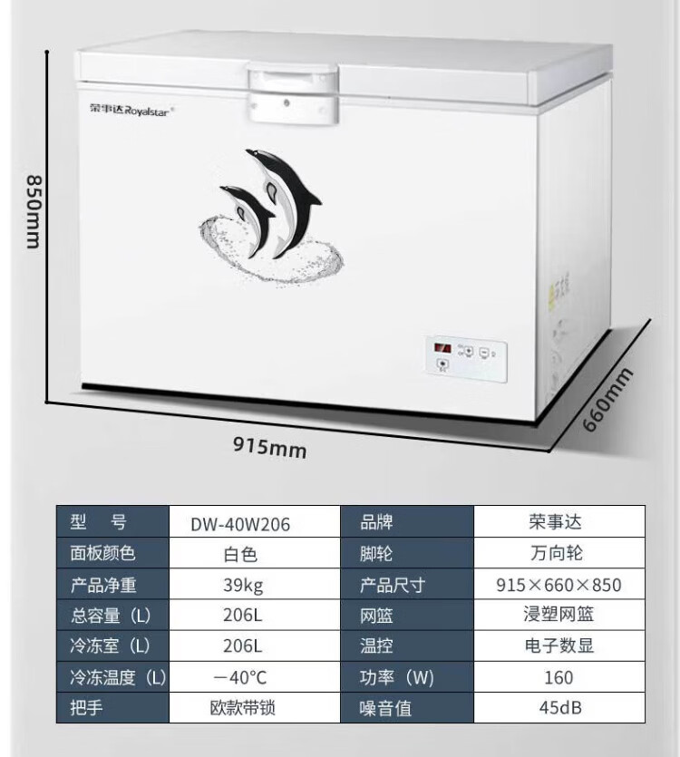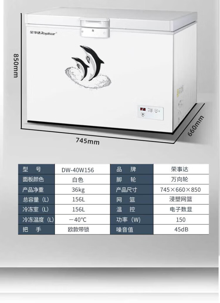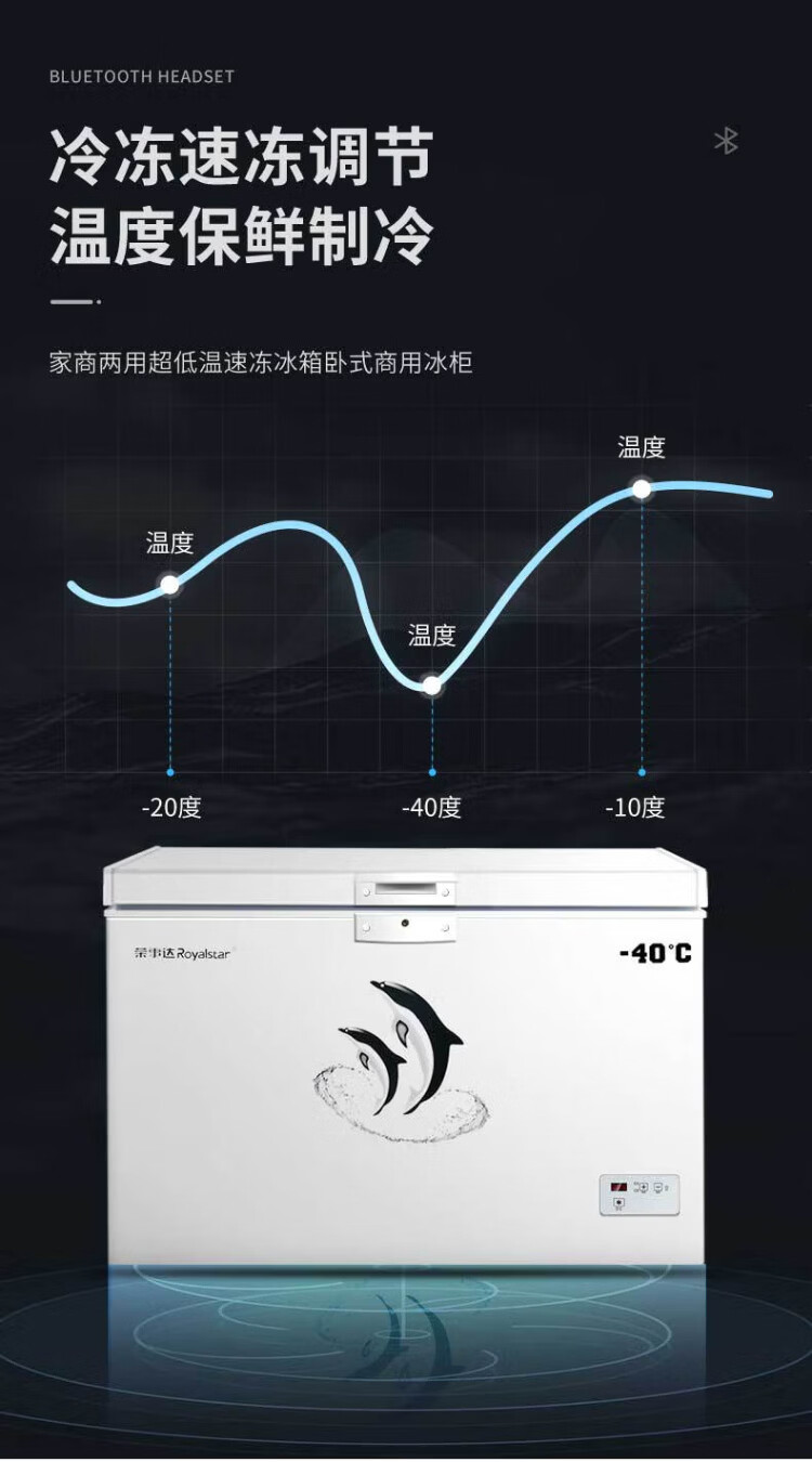 Royalstar ultra-low temperature freezer minus 40 degrees commercial large-capacity freezing sub-zero cabinet seafood deep-freezing quick-freezing refrigerator deep freezing ice cream cabinet laboratory refrigerator -40 C 156L deep freezing