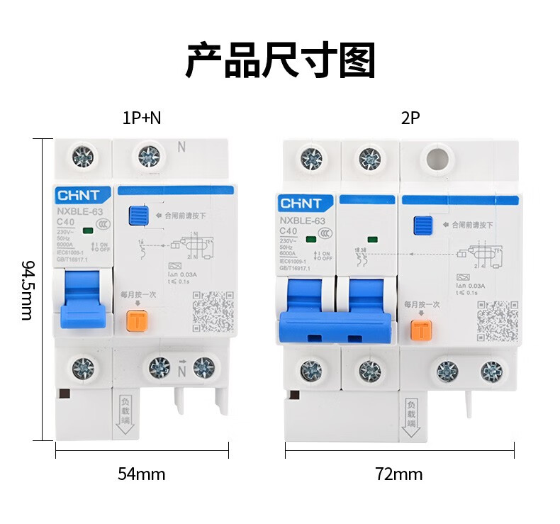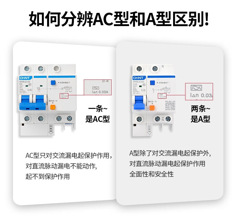 CHNT leakage protection circuit breaker Type A for charging piles Leakage protector NXBLE series 40A 1P+N 2P Special leakage protection for charging piles 2P 40A
