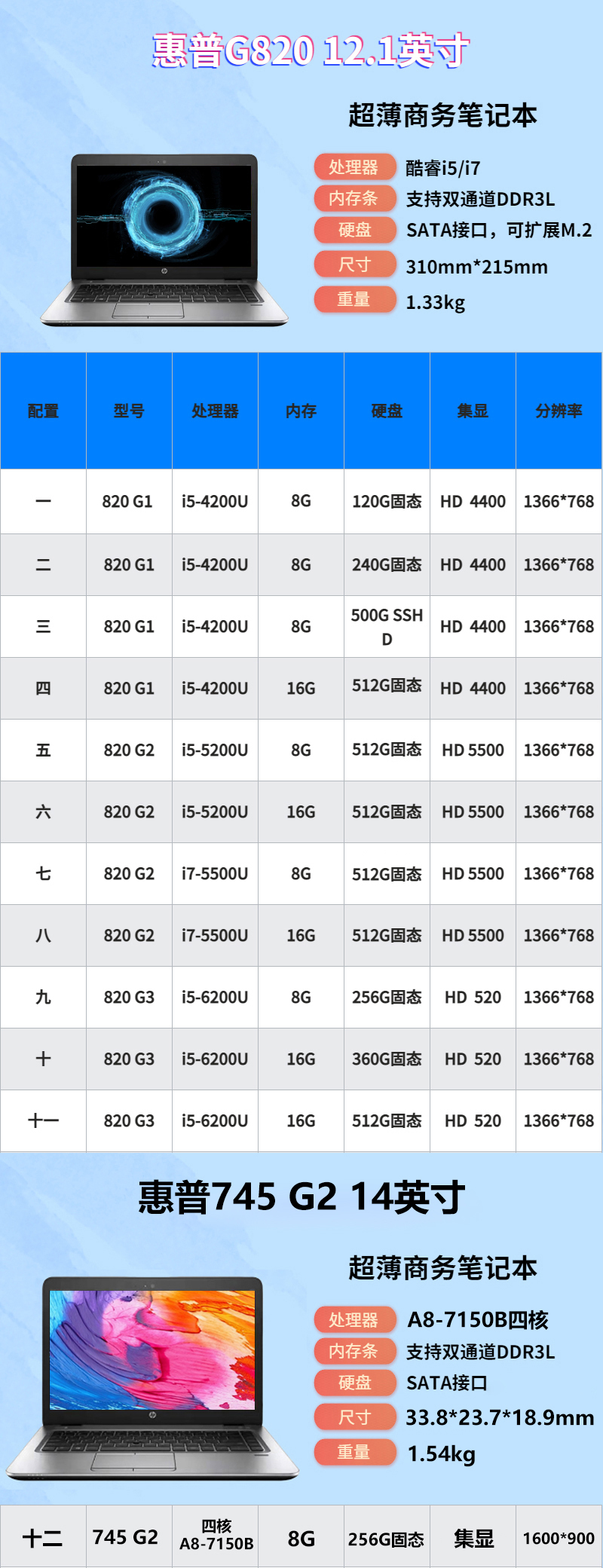 HP (HP) second-hand notebook computer 820G1G2 portable 12.5-inch Core i5\i7 thin and light portable office student online class 90% new Core i7-5500U/16G/512 solid state independent display 14 inches