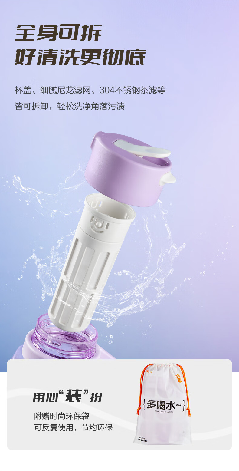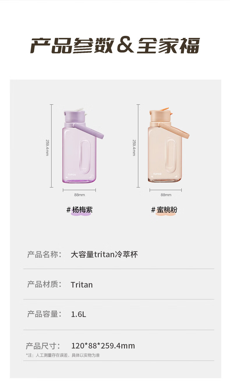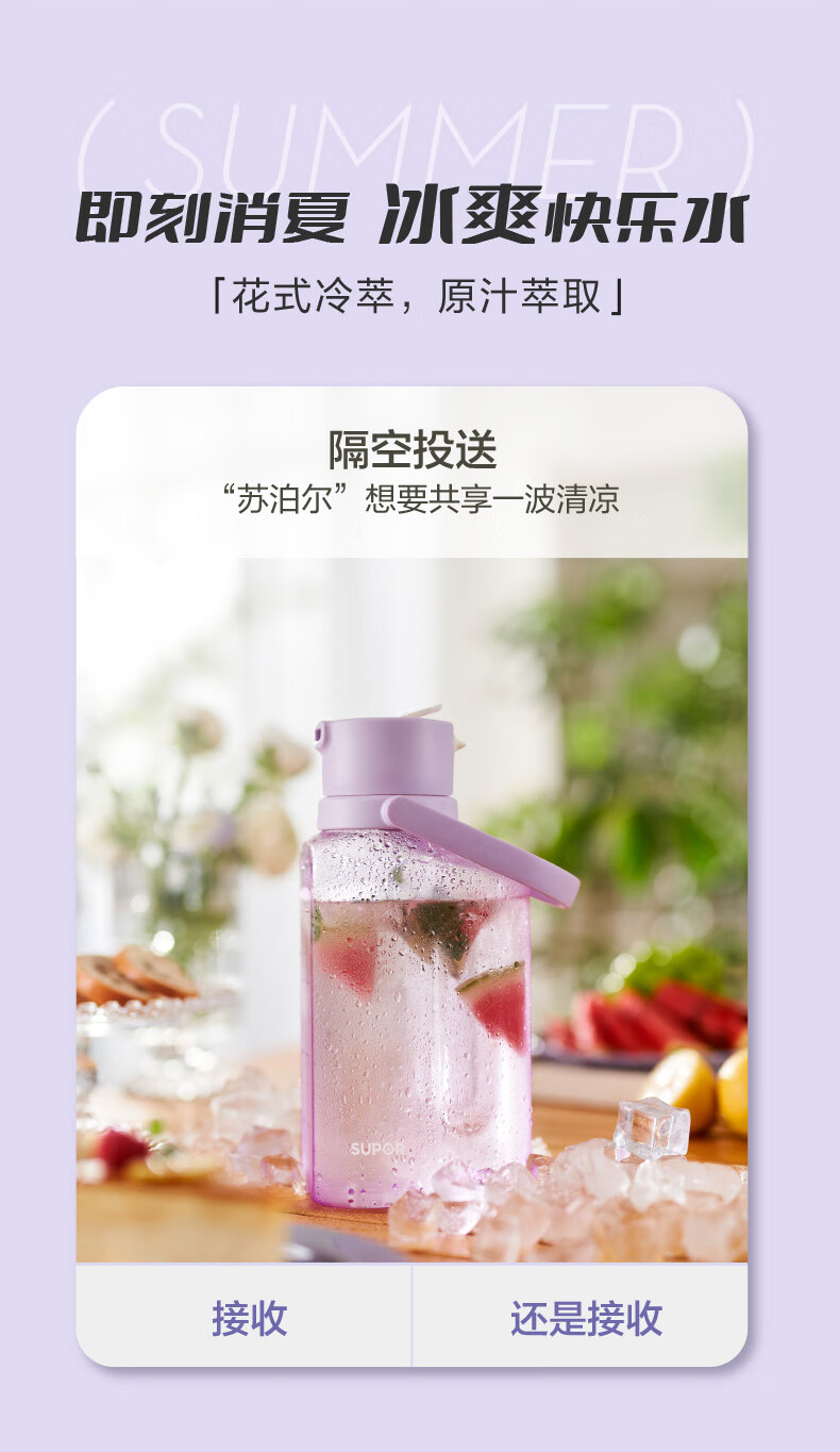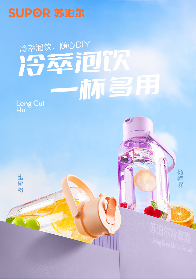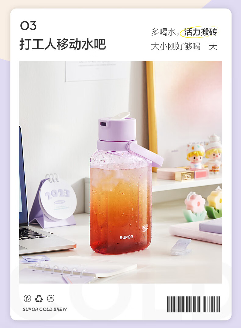 SUPOR sports water bottle large-capacity water cup tritan material plastic cup fitness outdoor ton bucket ton men and women cup bayberry purple 1600ml