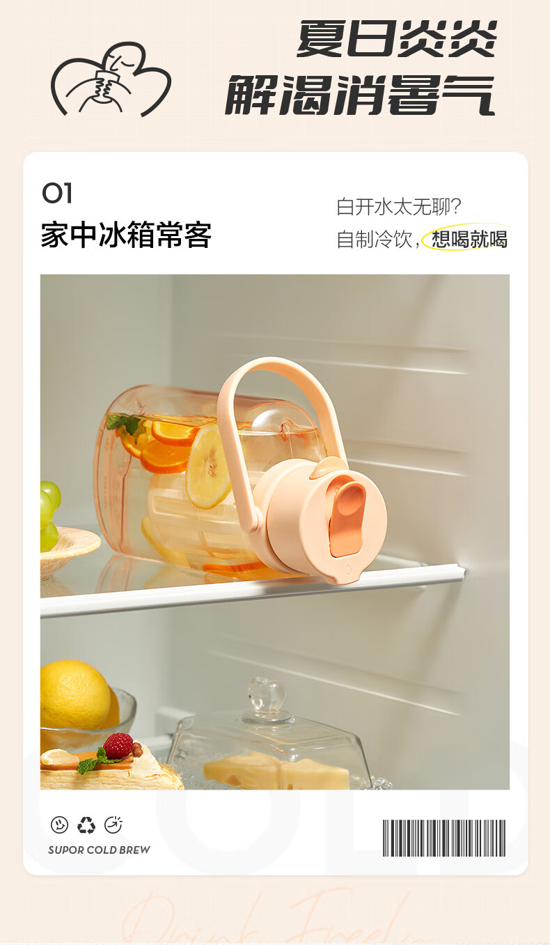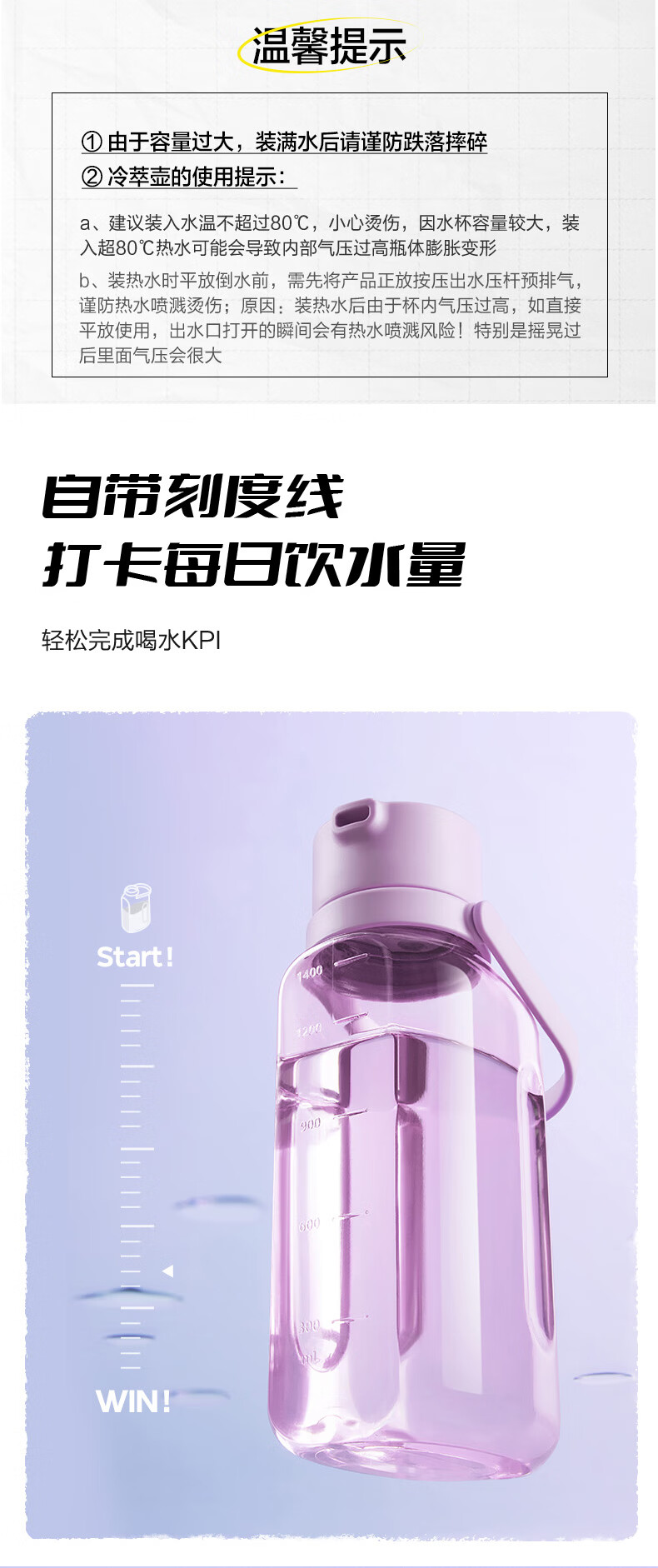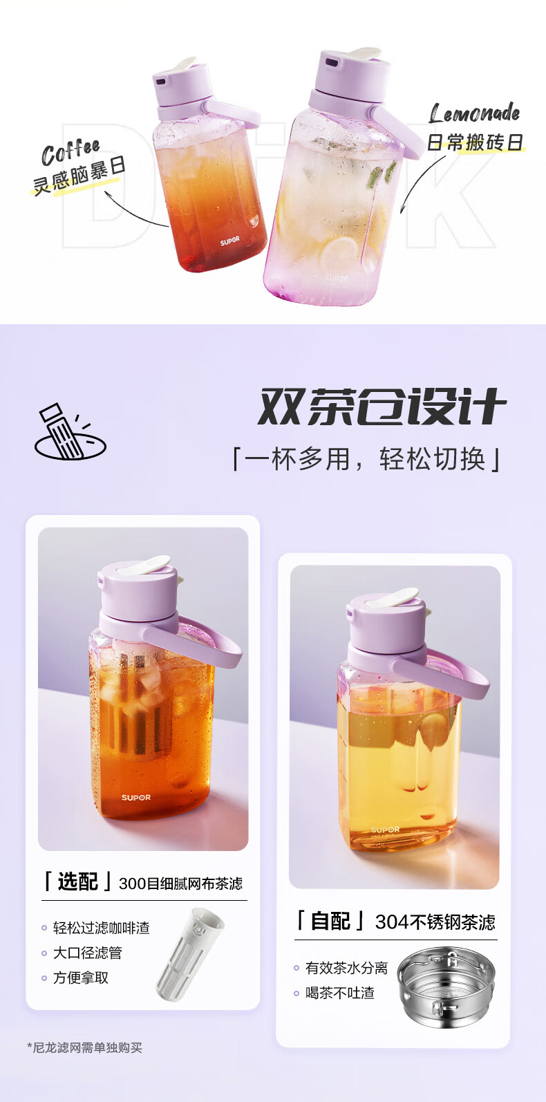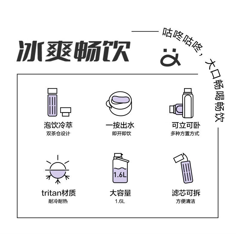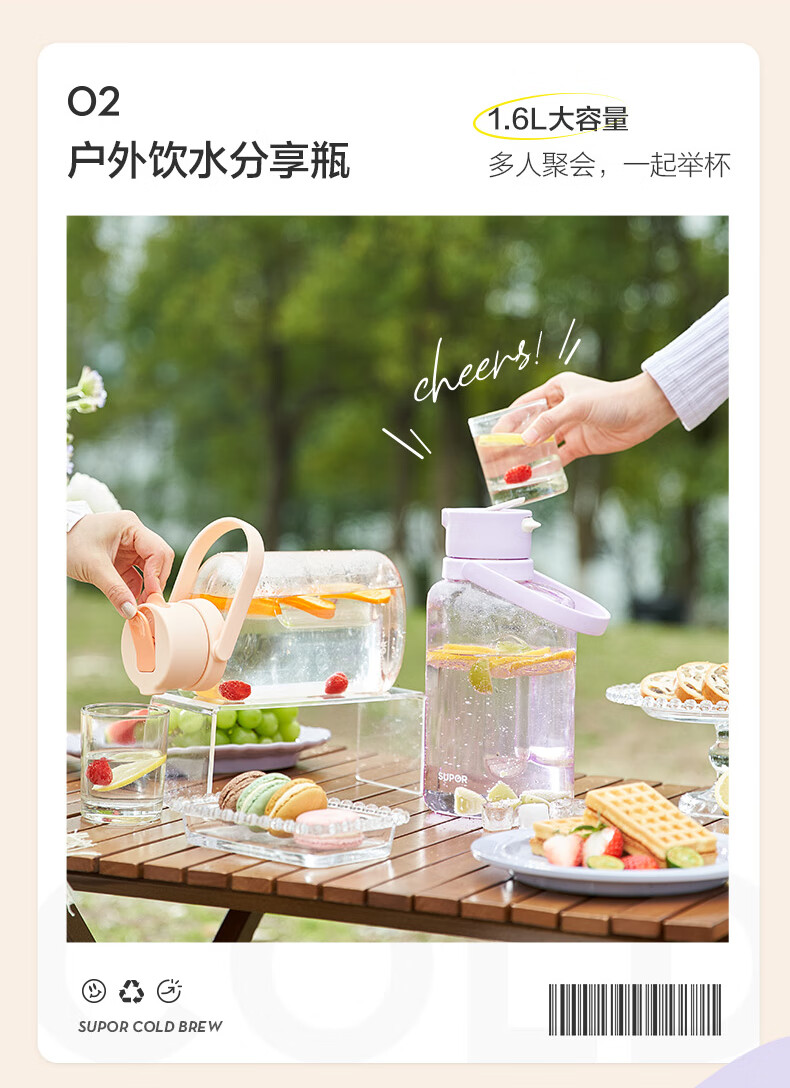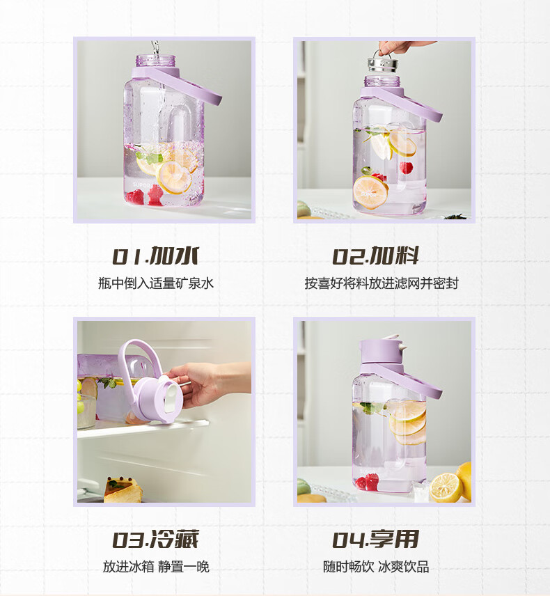 SUPOR sports water bottle large-capacity water cup tritan material plastic cup fitness outdoor ton bucket ton men and women cup bayberry purple 1600ml