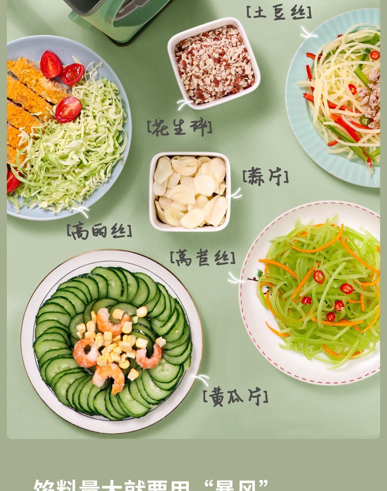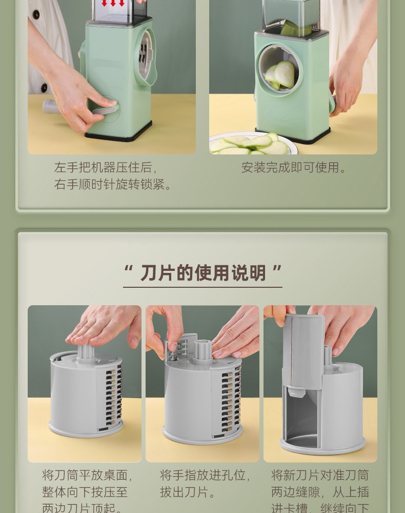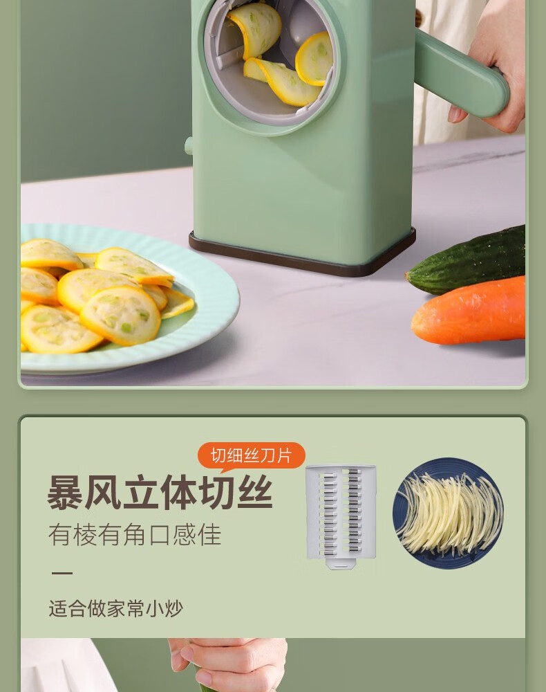 Jingyan German quality household vegetable cutting tool Storm vegetable cutter roller hand-cranked potato grater multi-function fresh green luxury five-knife option safe and does not hurt your hands