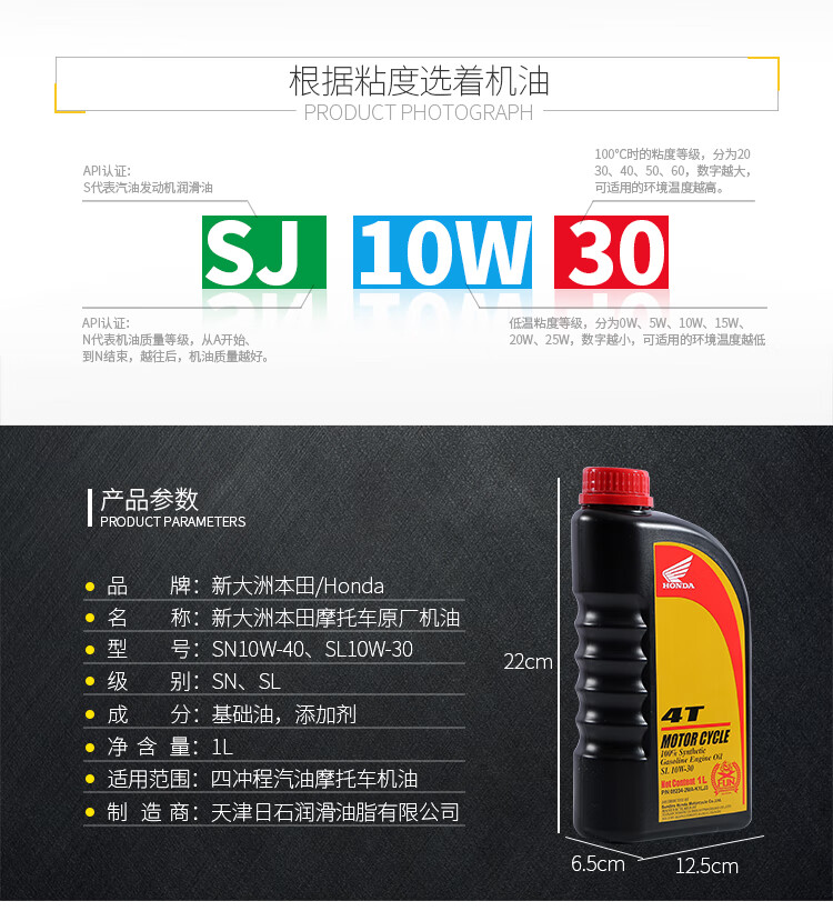 TUDAZHE New Continent Honda full engine oil motorcycle oil SN grade 10W-40 Honda mid-row engine oil SL10W-30 SL10W-30 new and old packaging shipped randomly