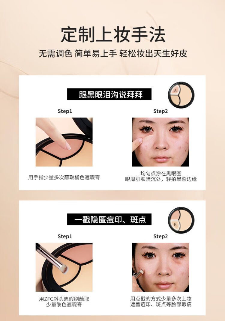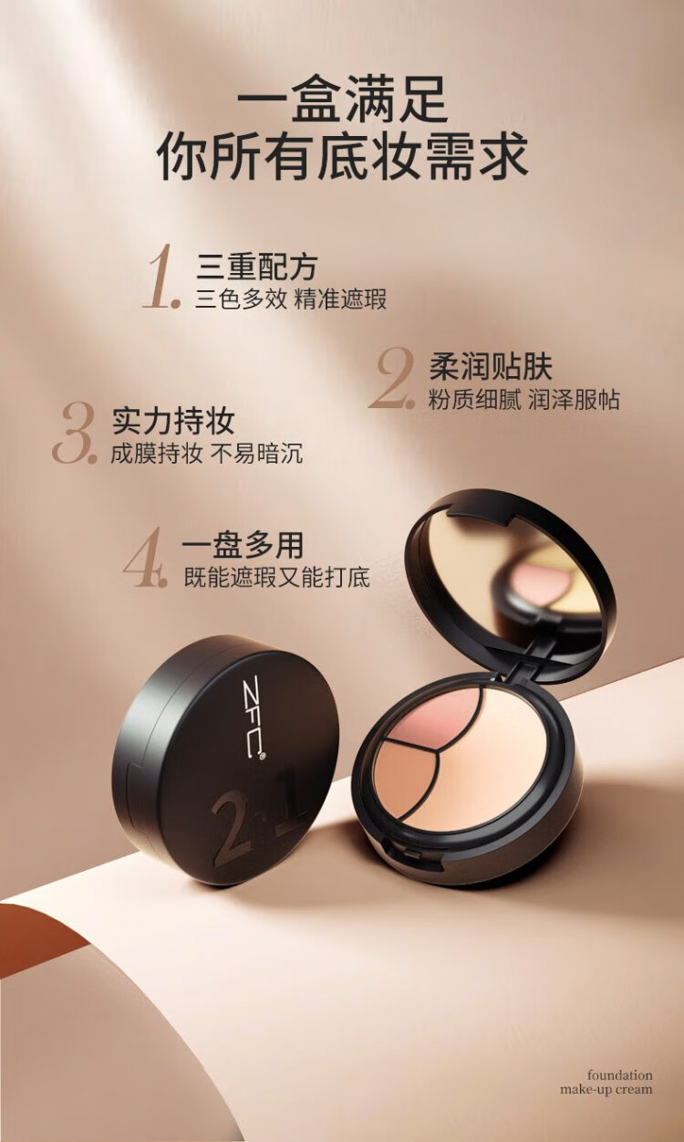 ZFC Foundation Cream 2+1 Concealer Covers Spots and Acne Marks, Repairs and Highlights Brightening Liquid Foundation for My Girlfriend with No Makeup Concealer & Foundation 2+1 (Natural Color)