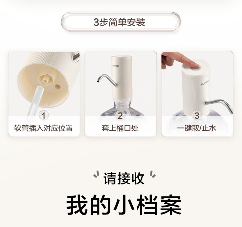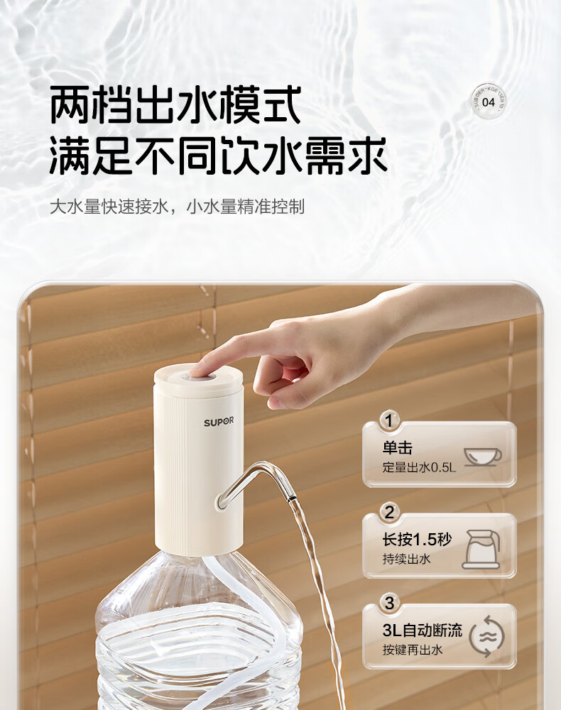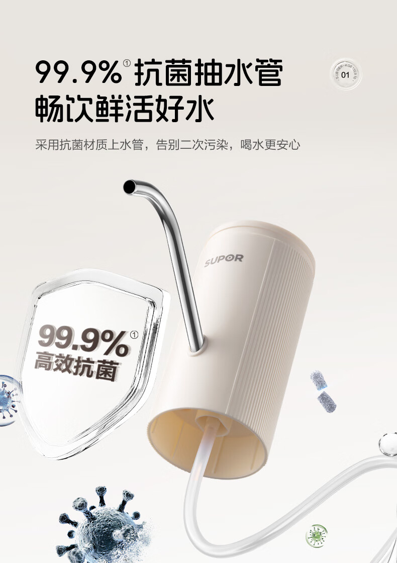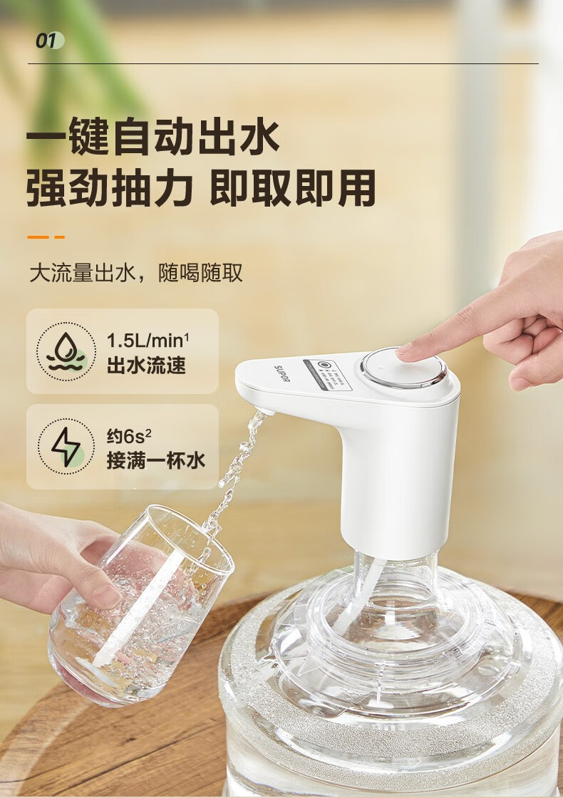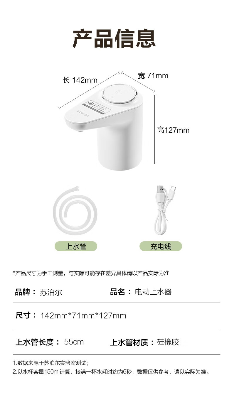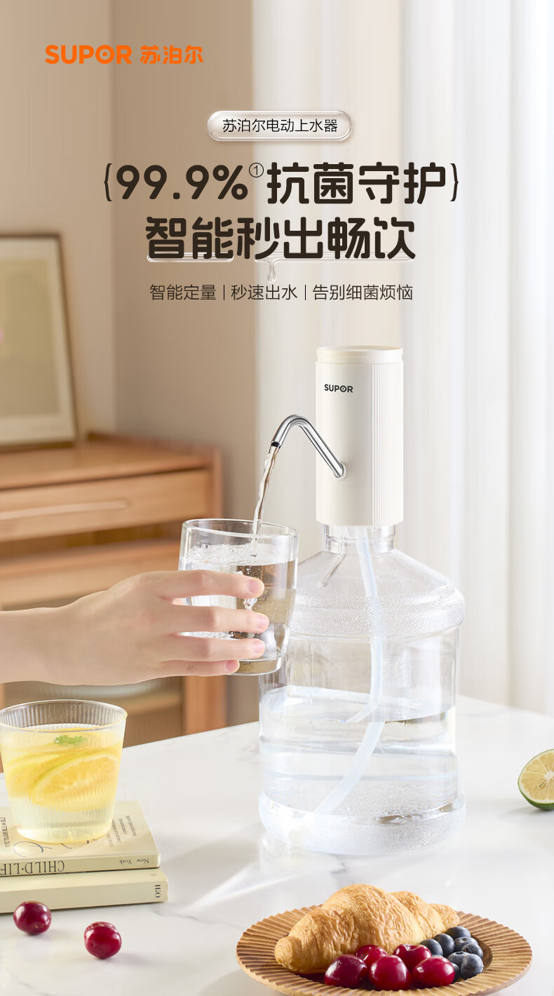SUPOR water dispenser, bottled water, electric water press, automatic water pump, push-type water pump, large bucket water dispenser, three-speed mode limited edition, including charging cable and water pipe
