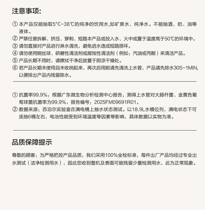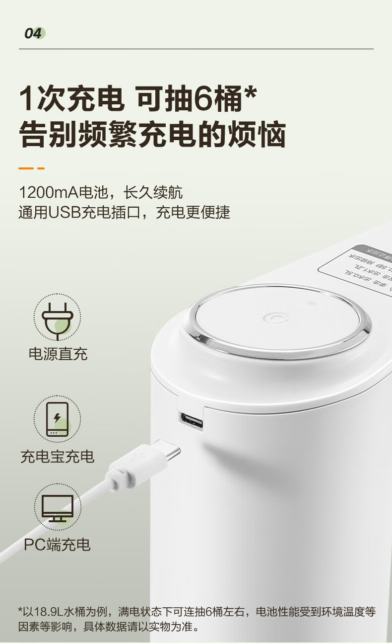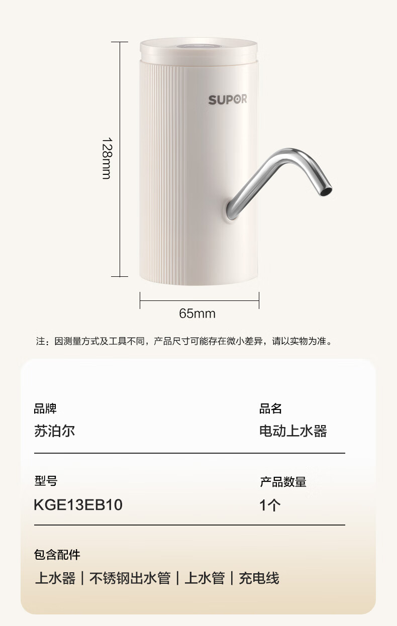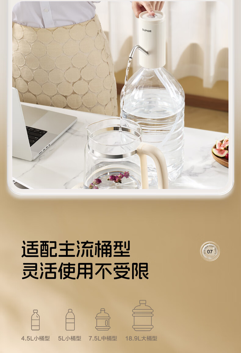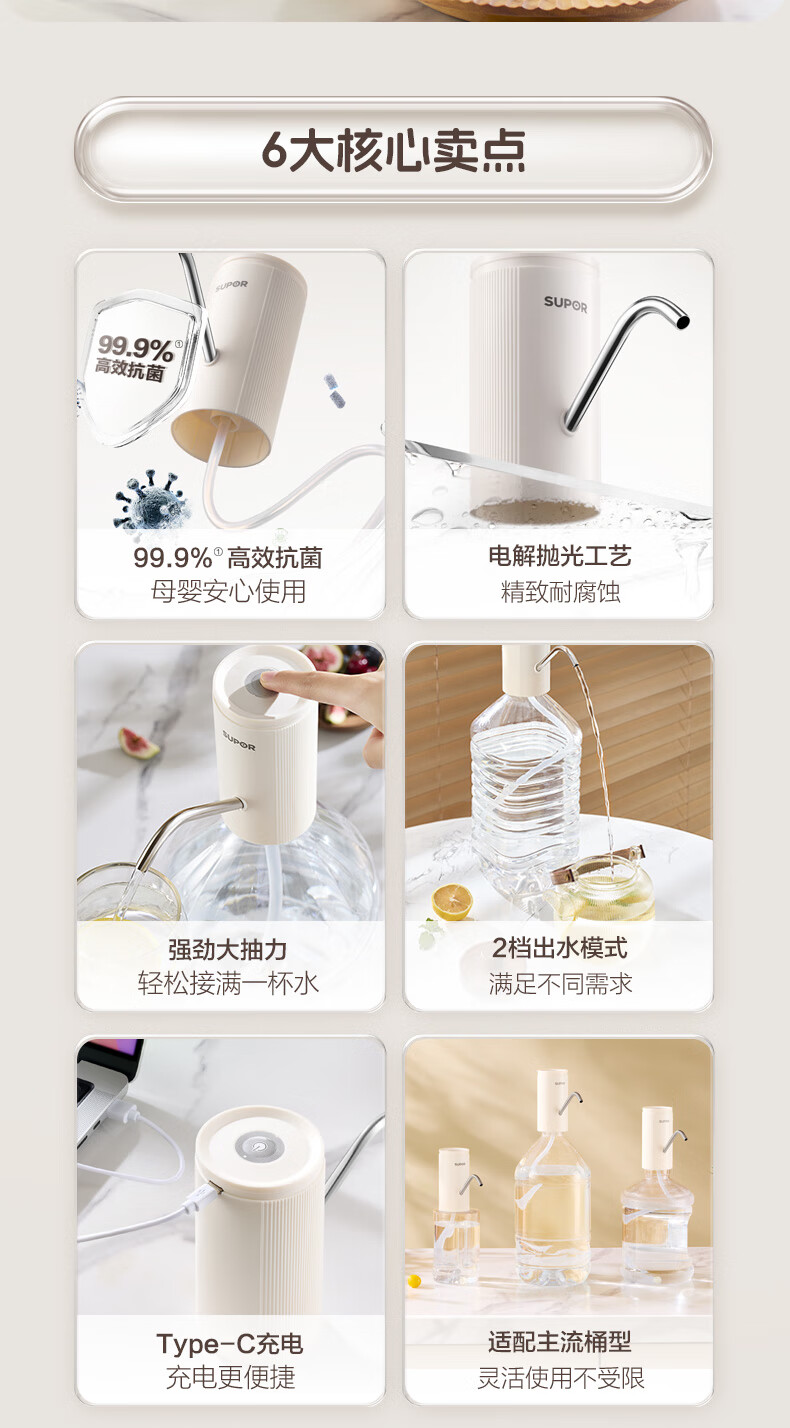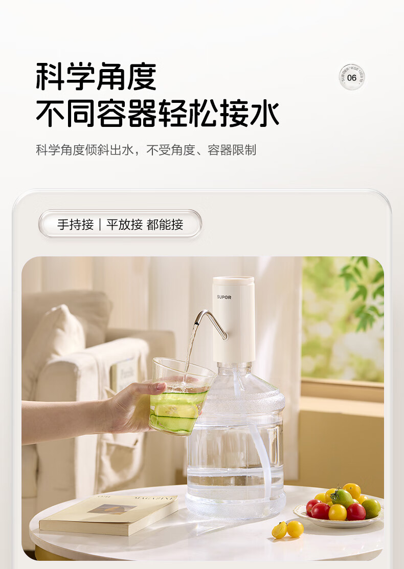 SUPOR water dispenser, bottled water, electric water press, automatic water pump, push-type water pump, large bucket water dispenser, three-speed mode limited edition, including charging cable and water pipe