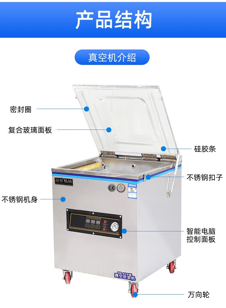 Yuechuang vacuum packaging machine commercial vacuum sealing machine large fully automatic wet and dry rice food plastic sealing machine 320 type suitable for dry goods