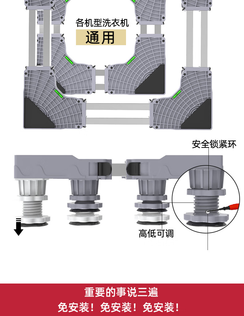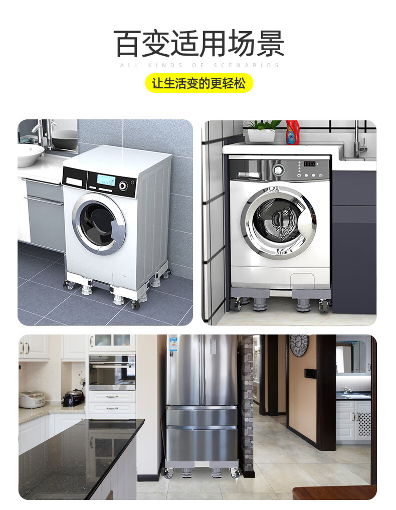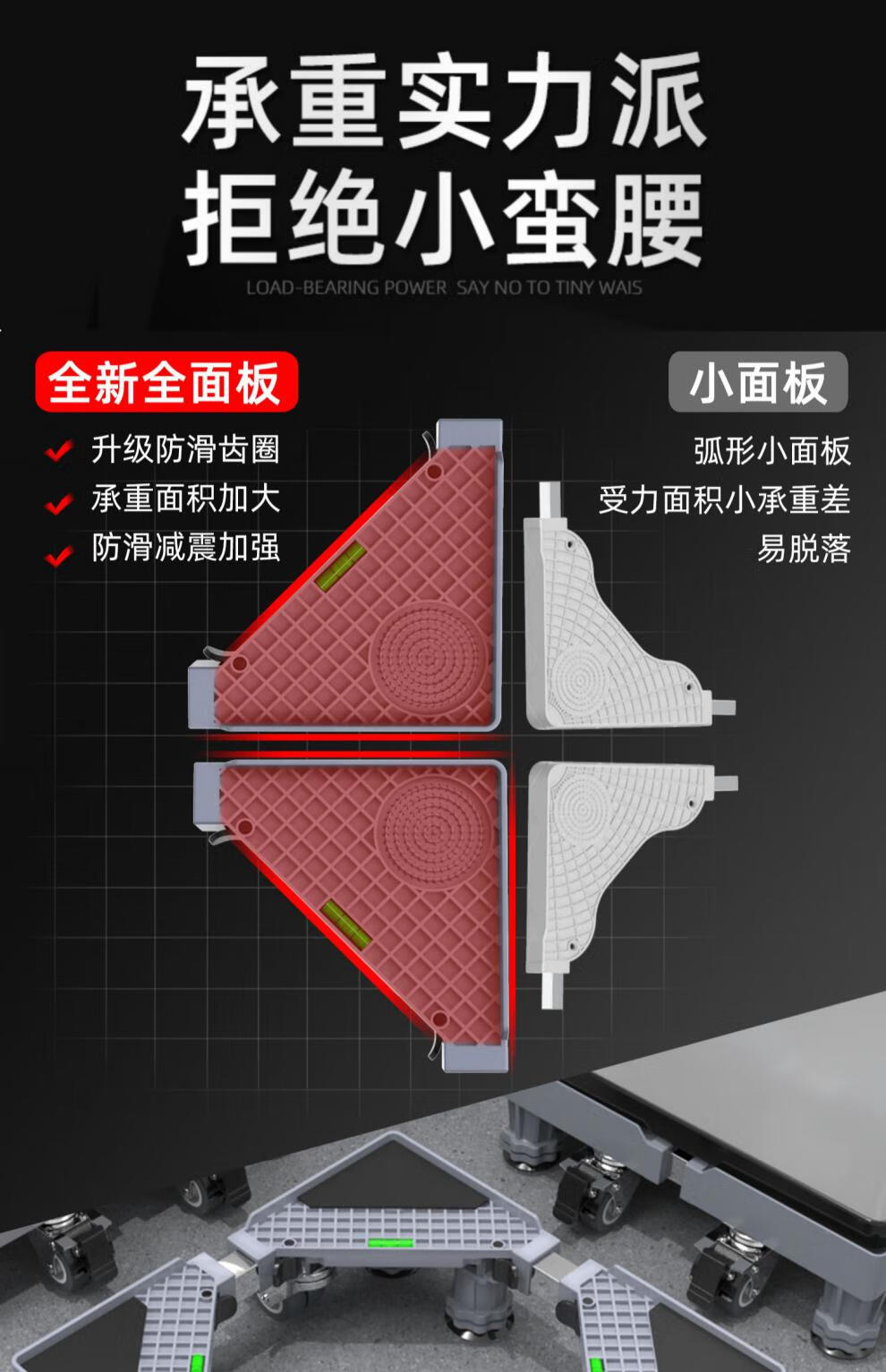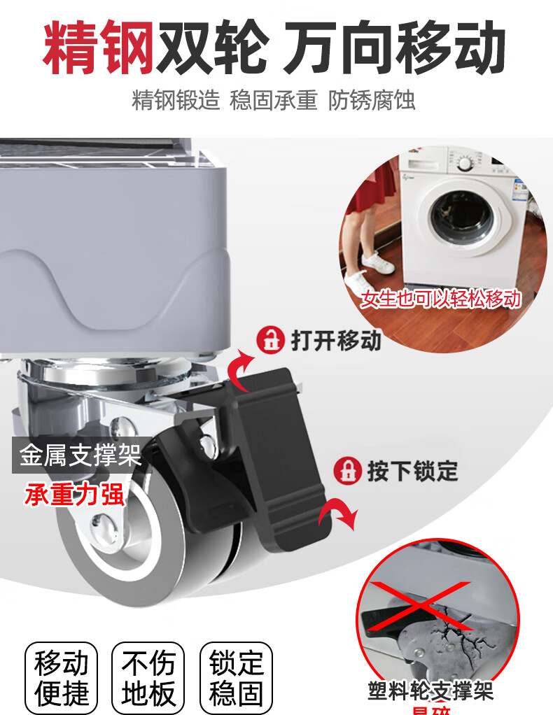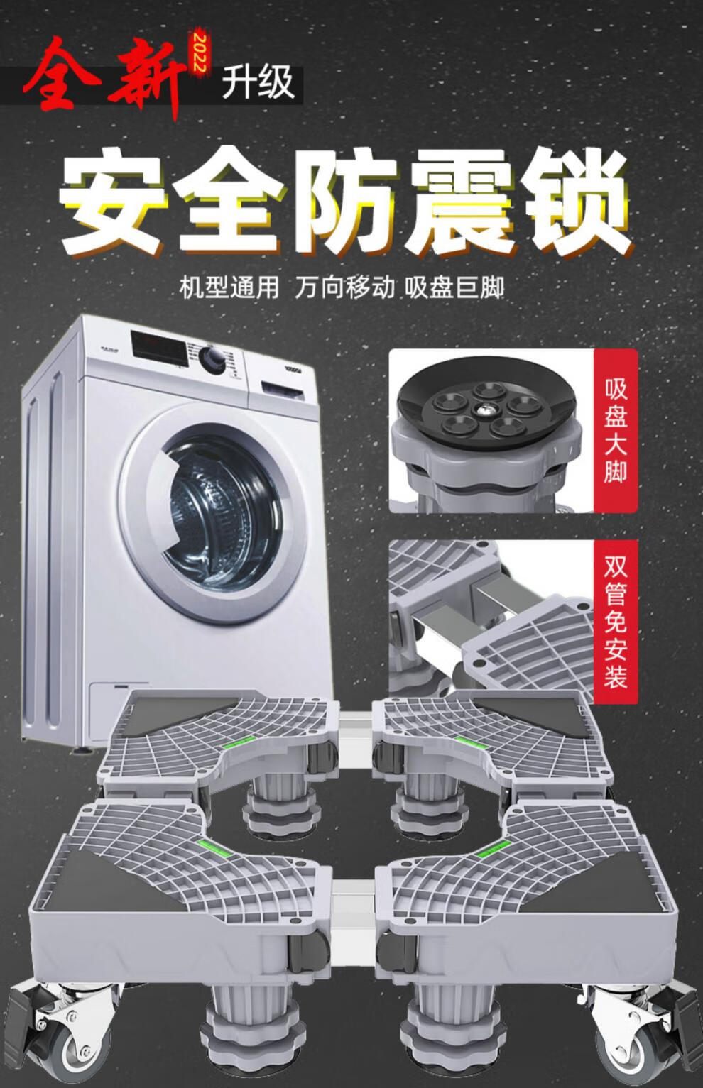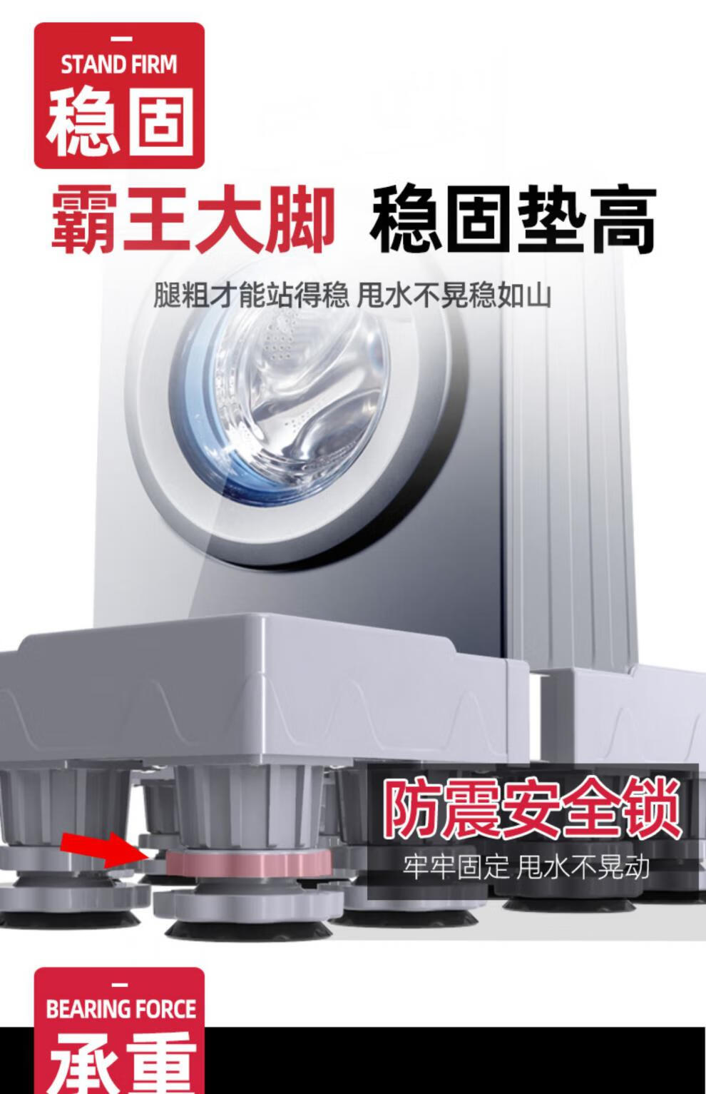 Suitable for Midea Little Swan washing machine base mobile universal wheel storage bracket universal drum refrigerator mat anti-slip anti-shock feet pad stand shock-proof 4 suction cup feet level + shock-absorbing pad