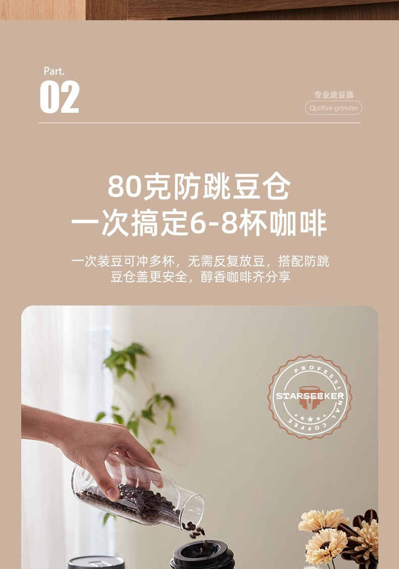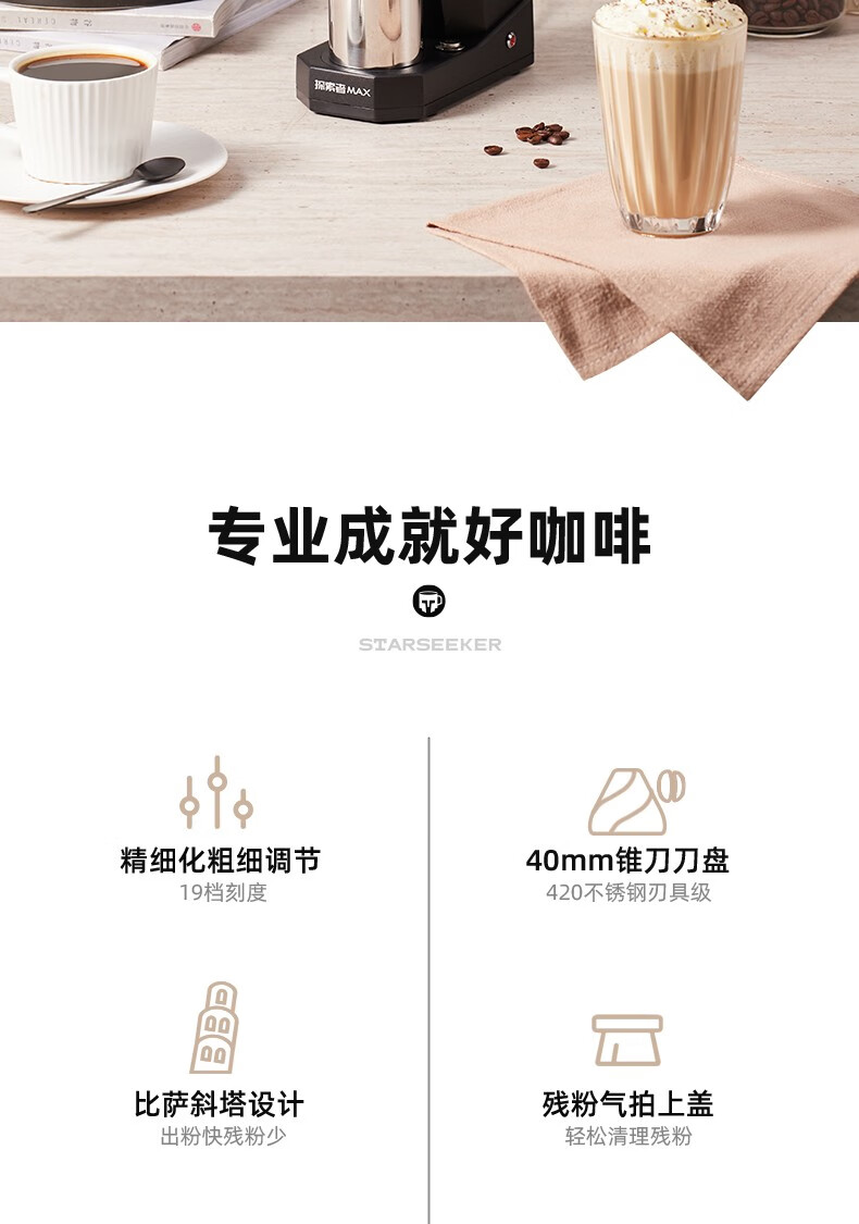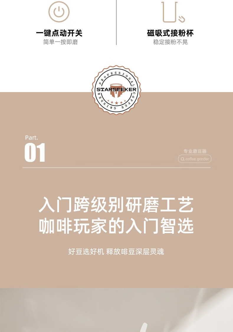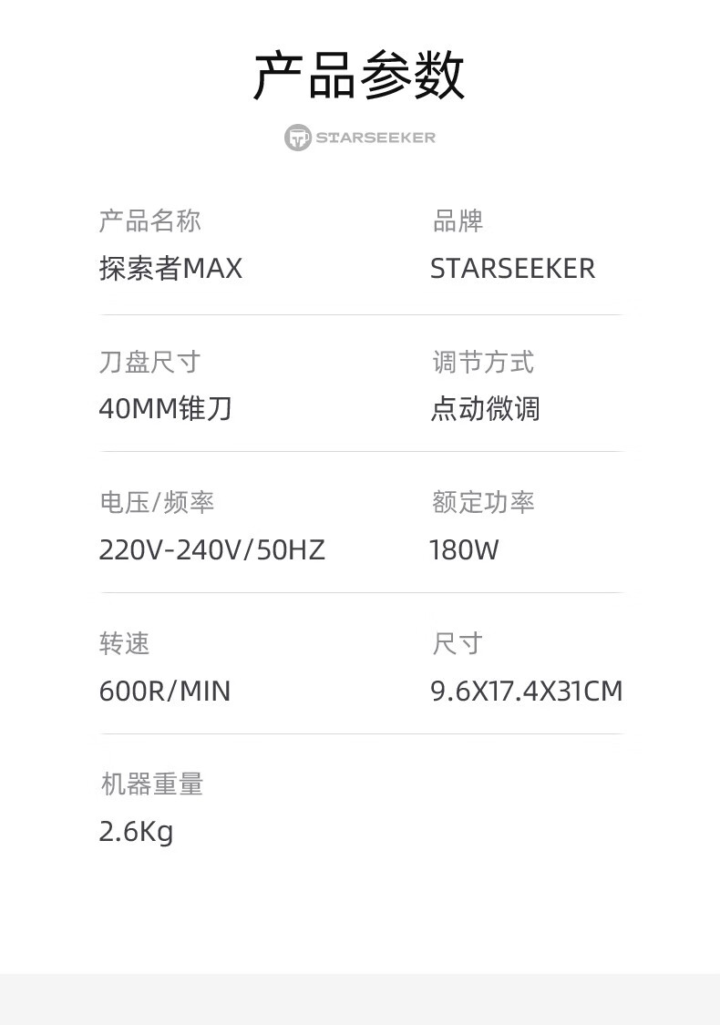 STARSEEKER Explorer Max electric bean grinder Italian hand-brewed coffee bean grinder commercial small round pearl white titanium knife