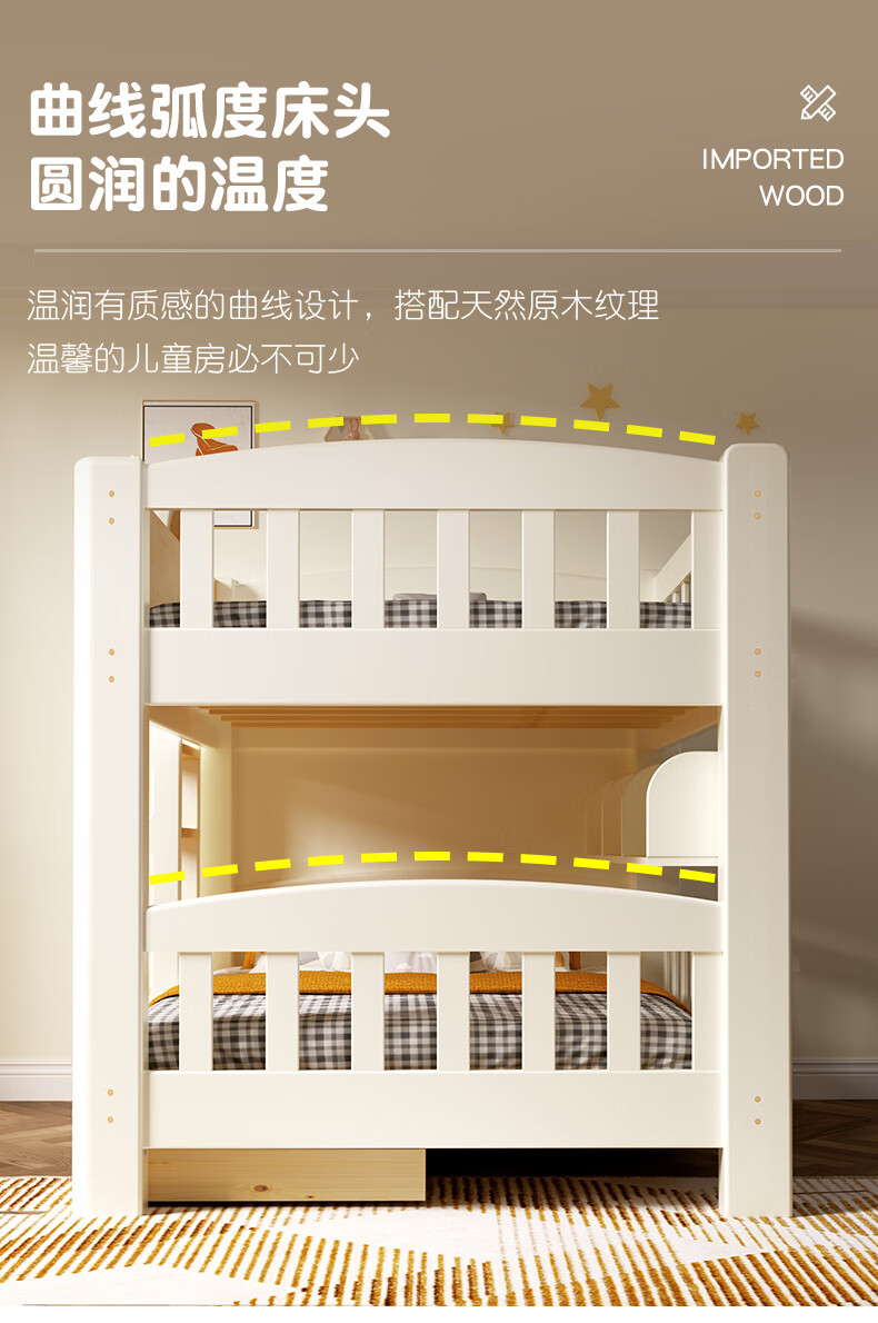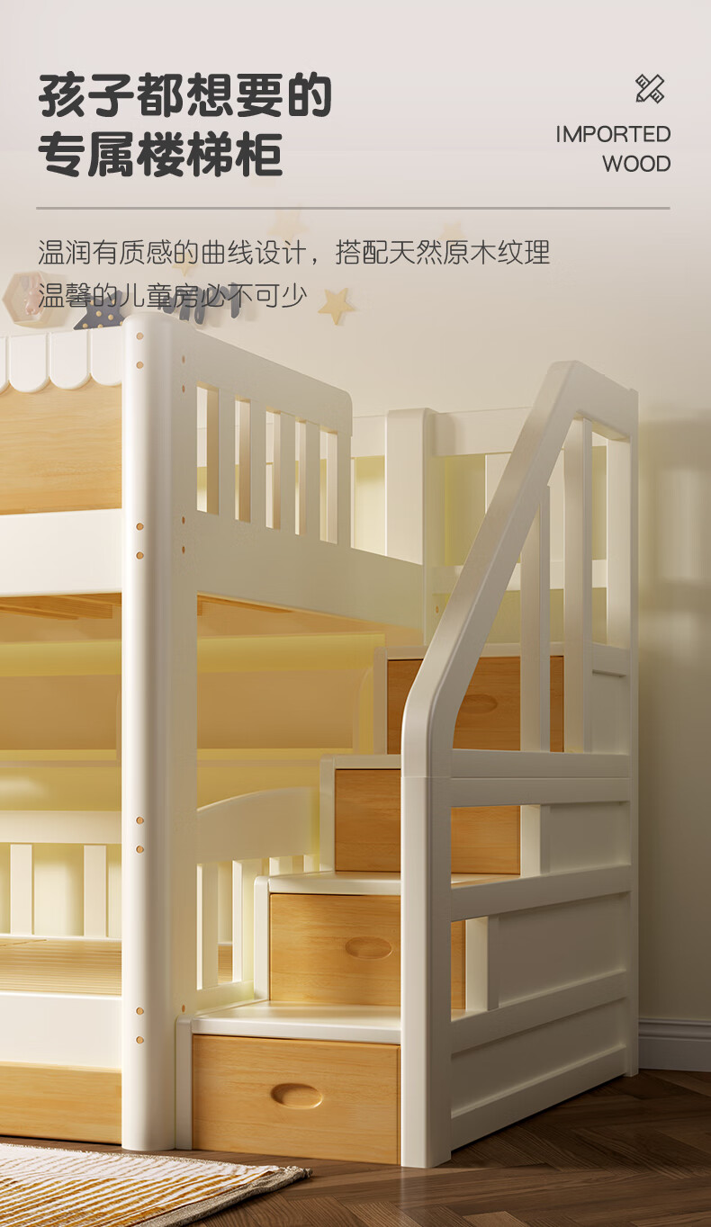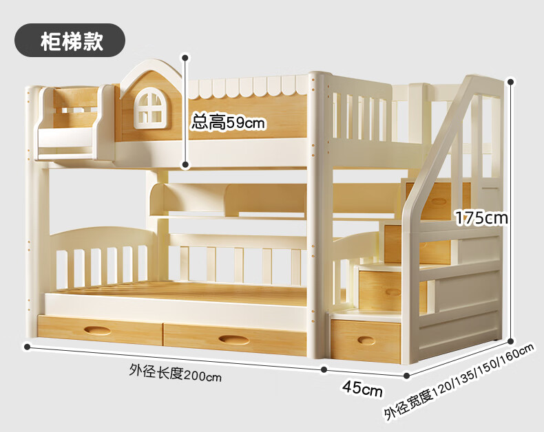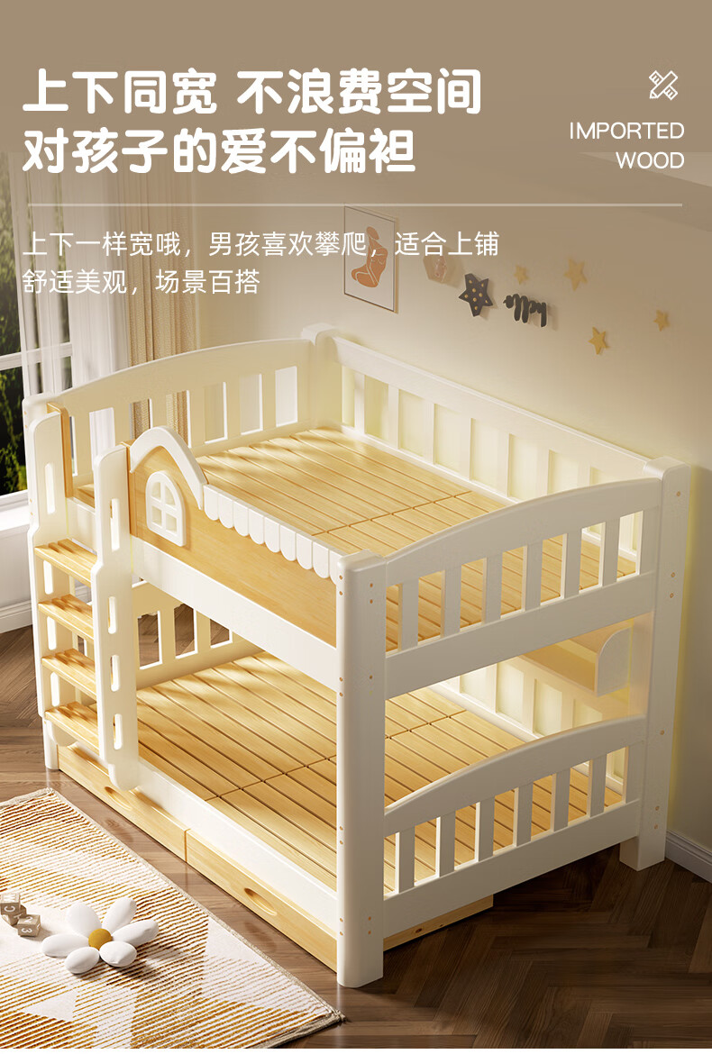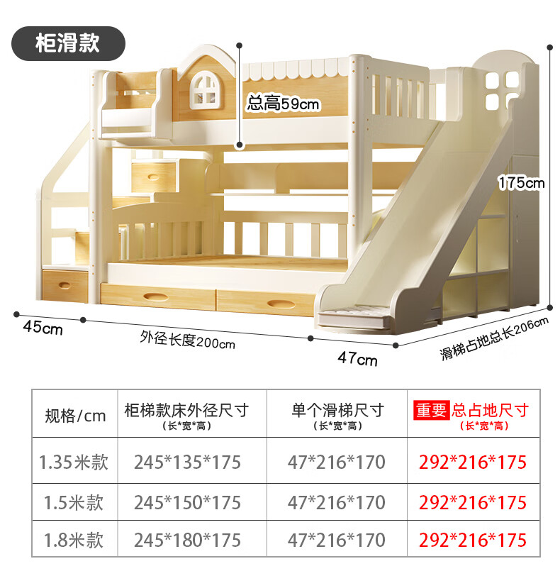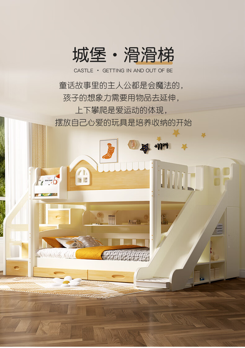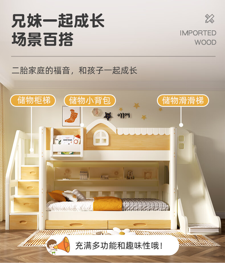Keyan bunk bed, all solid wood bed, children's bed, high and low bed, same width, parallel double-layer slide, high shelf mother bed, upper and lower bunks, cabinet, ladder, slide type 1600mm*2000mm