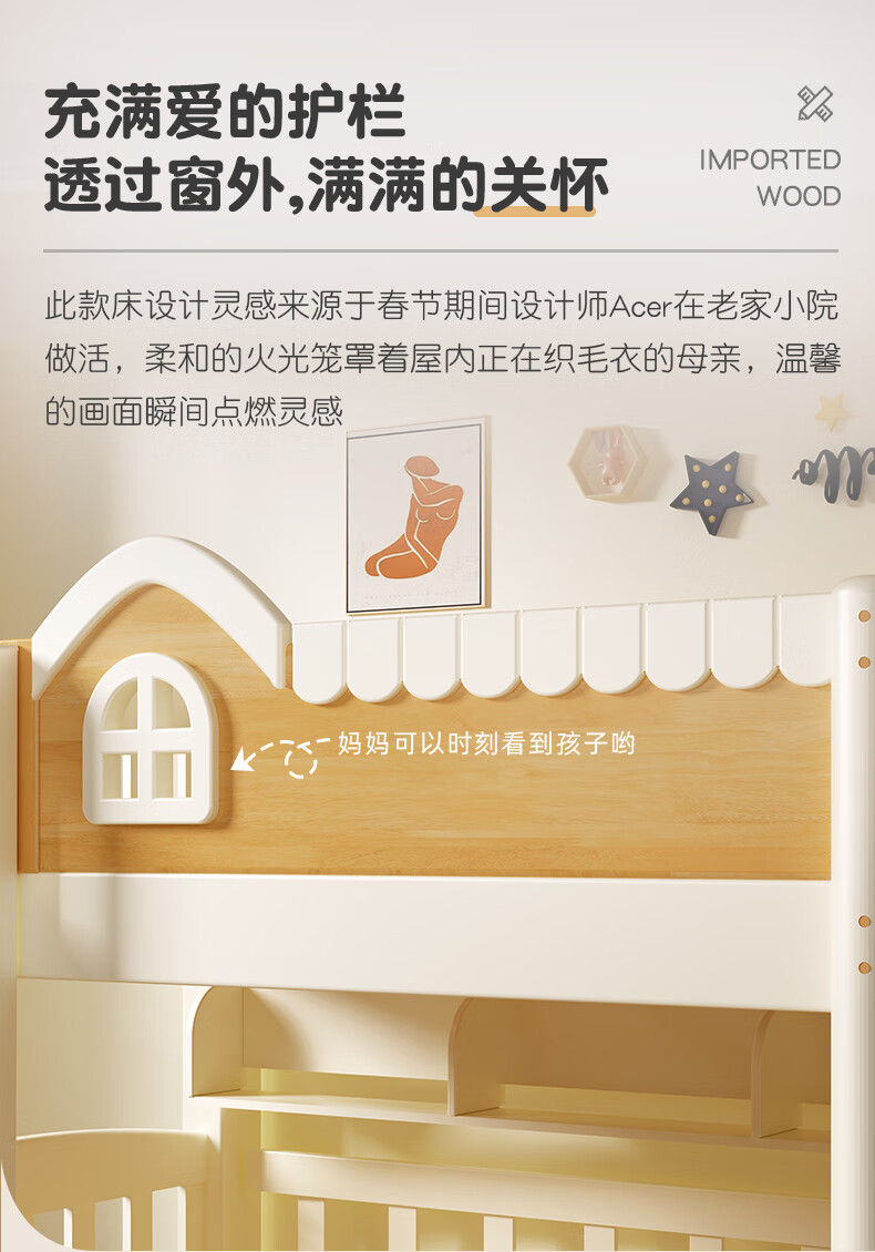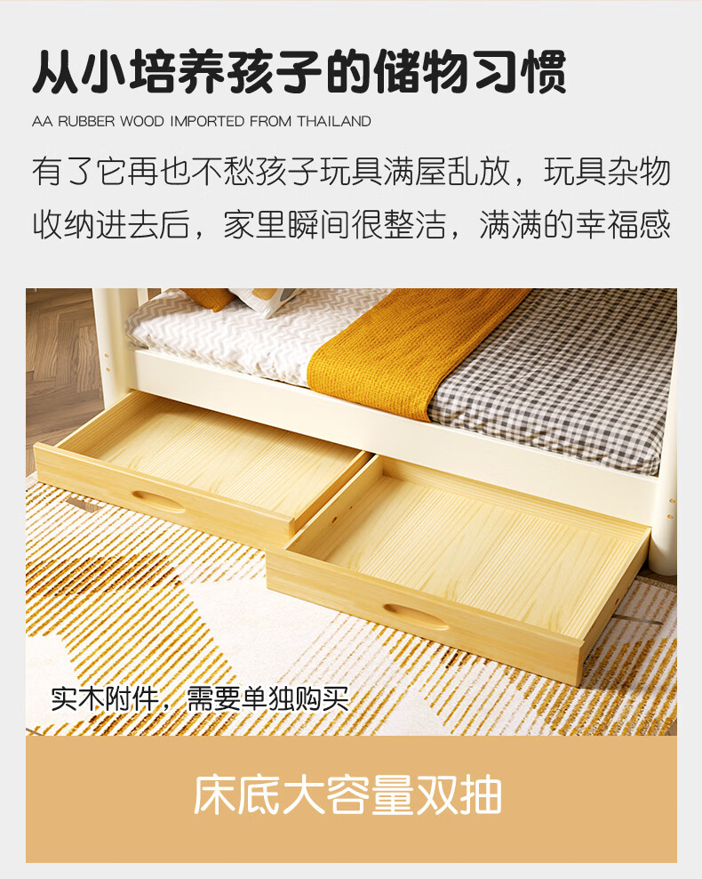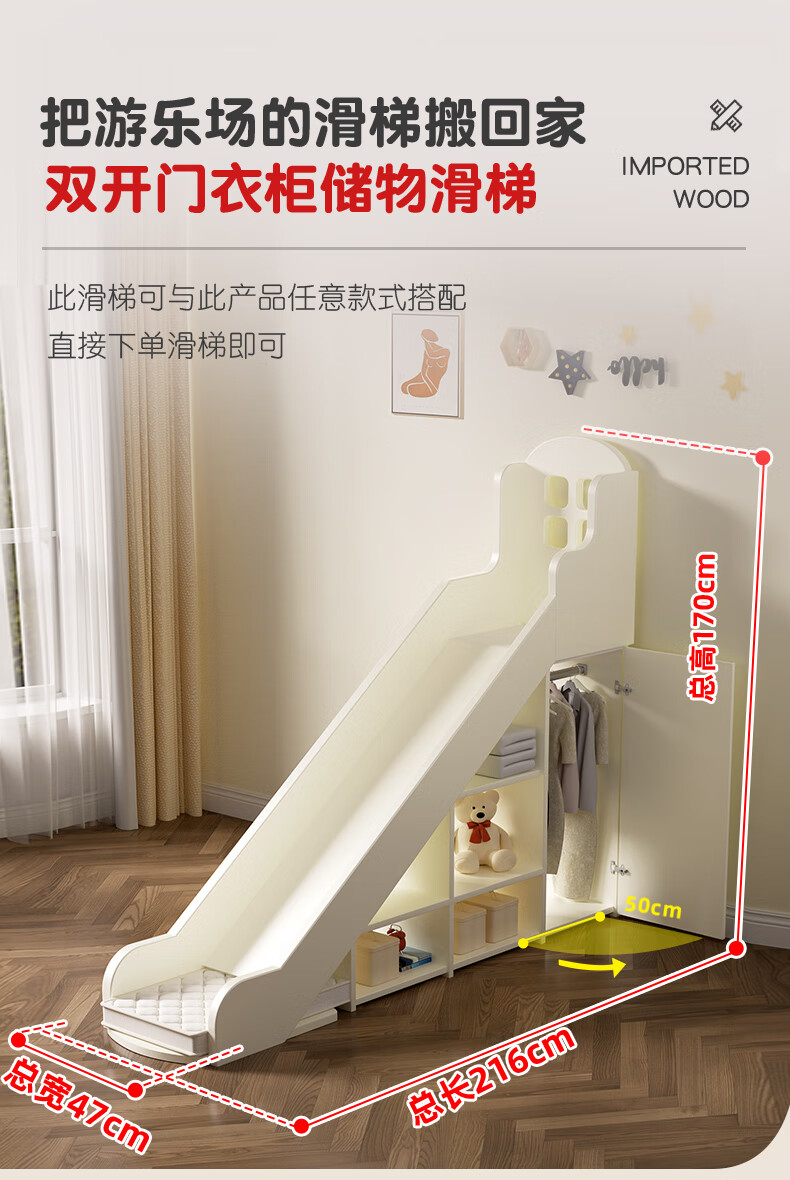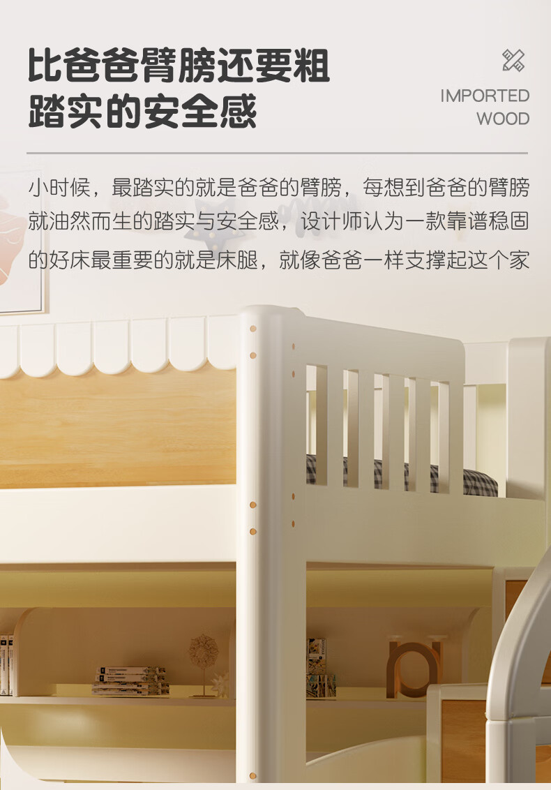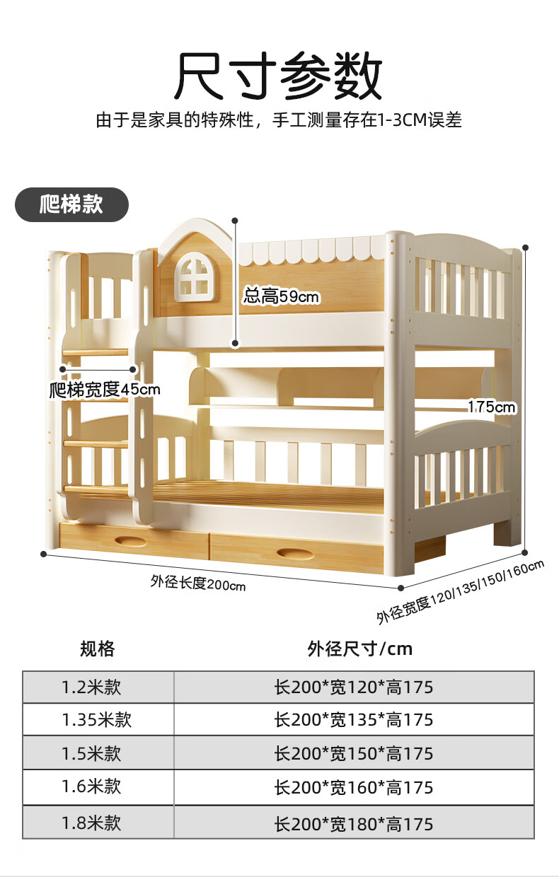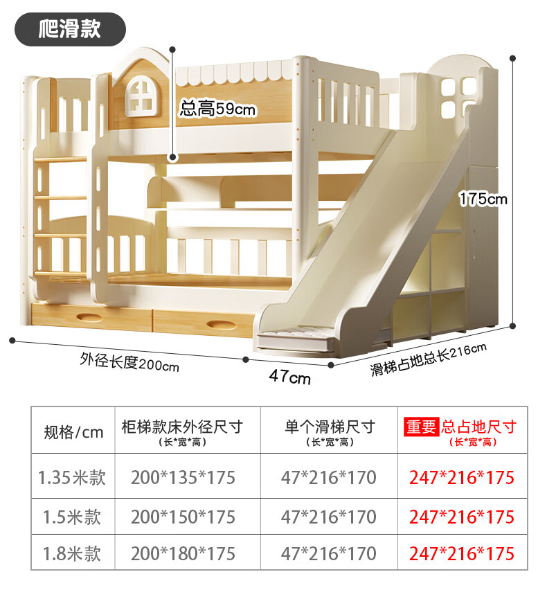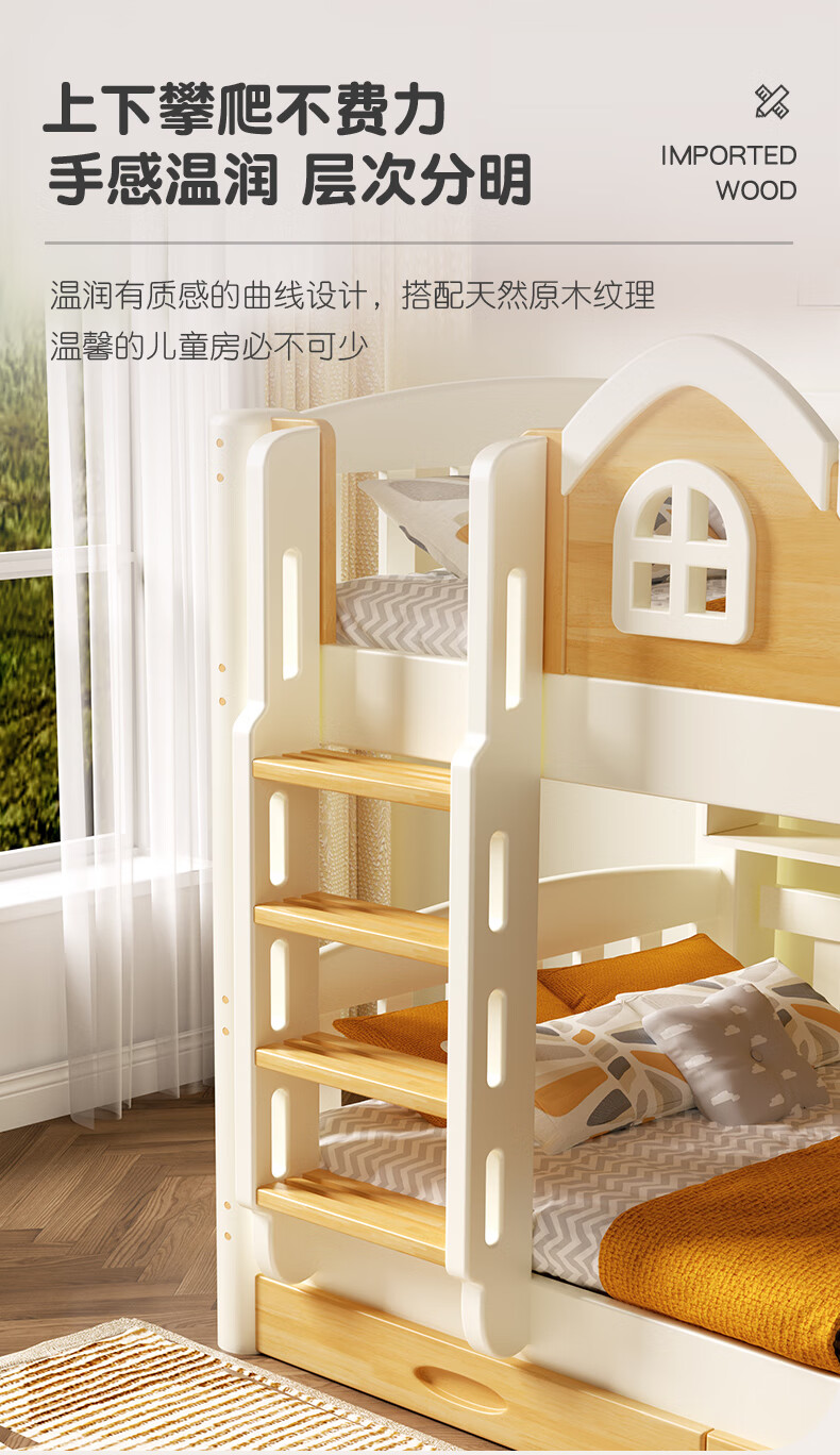 Keyan bunk bed, all solid wood bed, children's bed, high and low bed, same width, parallel double-layer slide, high shelf mother bed, upper and lower bunks, cabinet, ladder, slide type 1600mm*2000mm