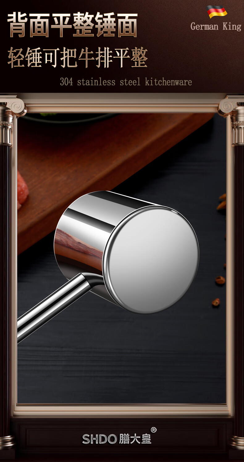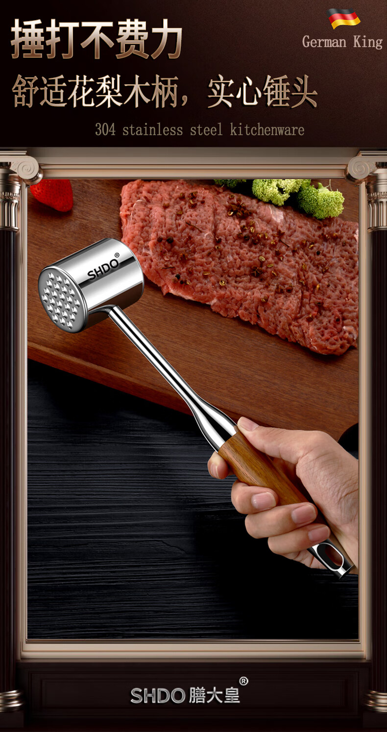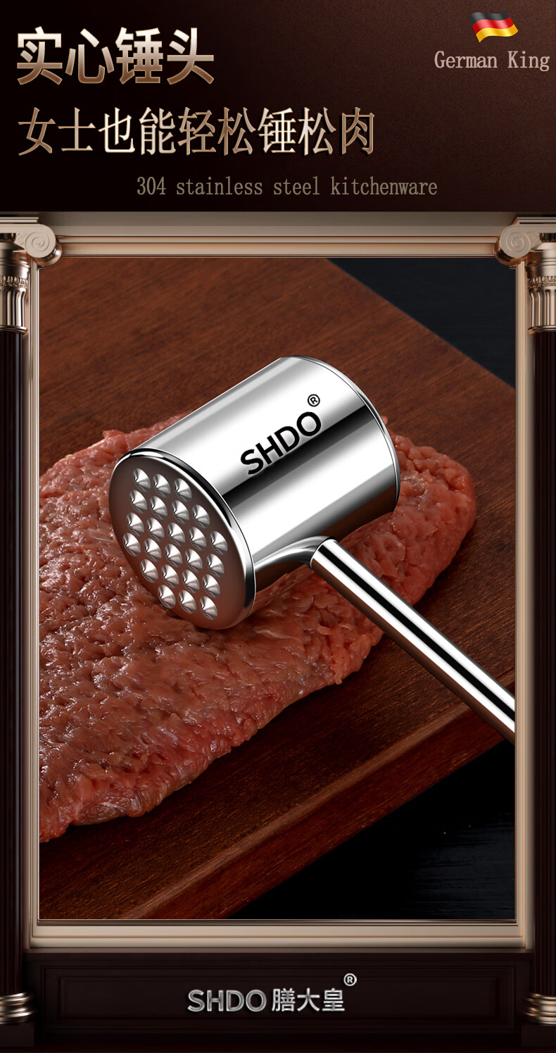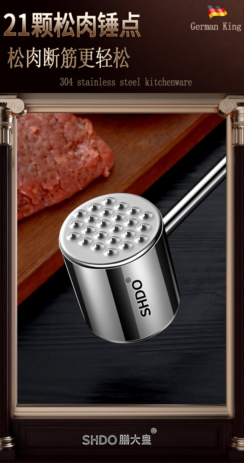 Shandahuang (SHDO) German 304 stainless steel meat hammer, solid steak hammer, meat needle tenderizer, beef hammer, meat hammer, tendon breaking hammer, 304 German style all-steel meat hammer