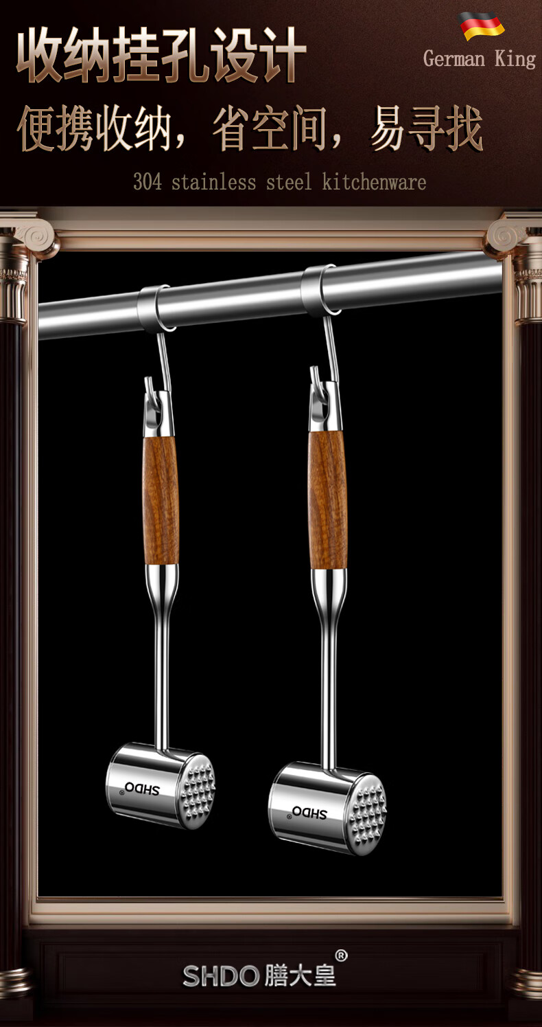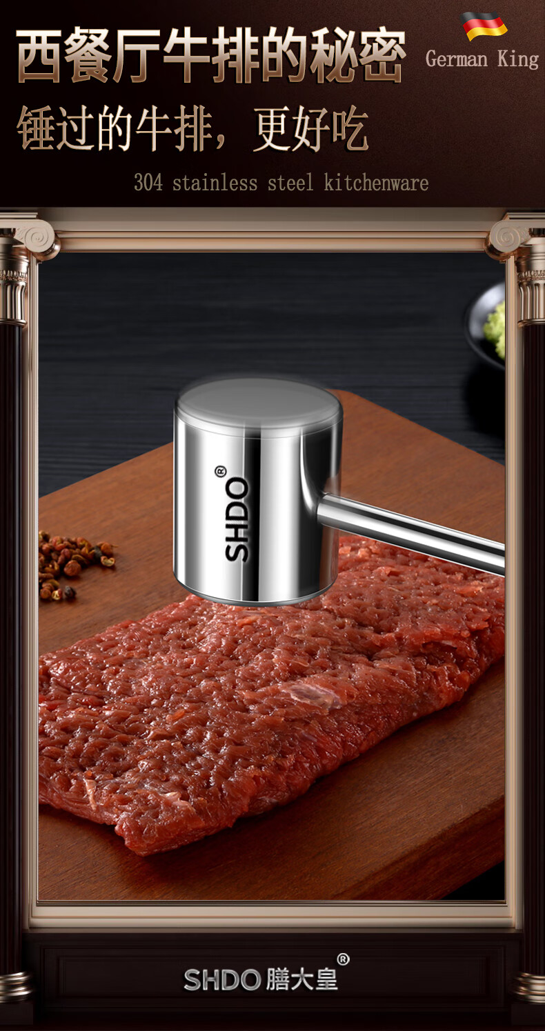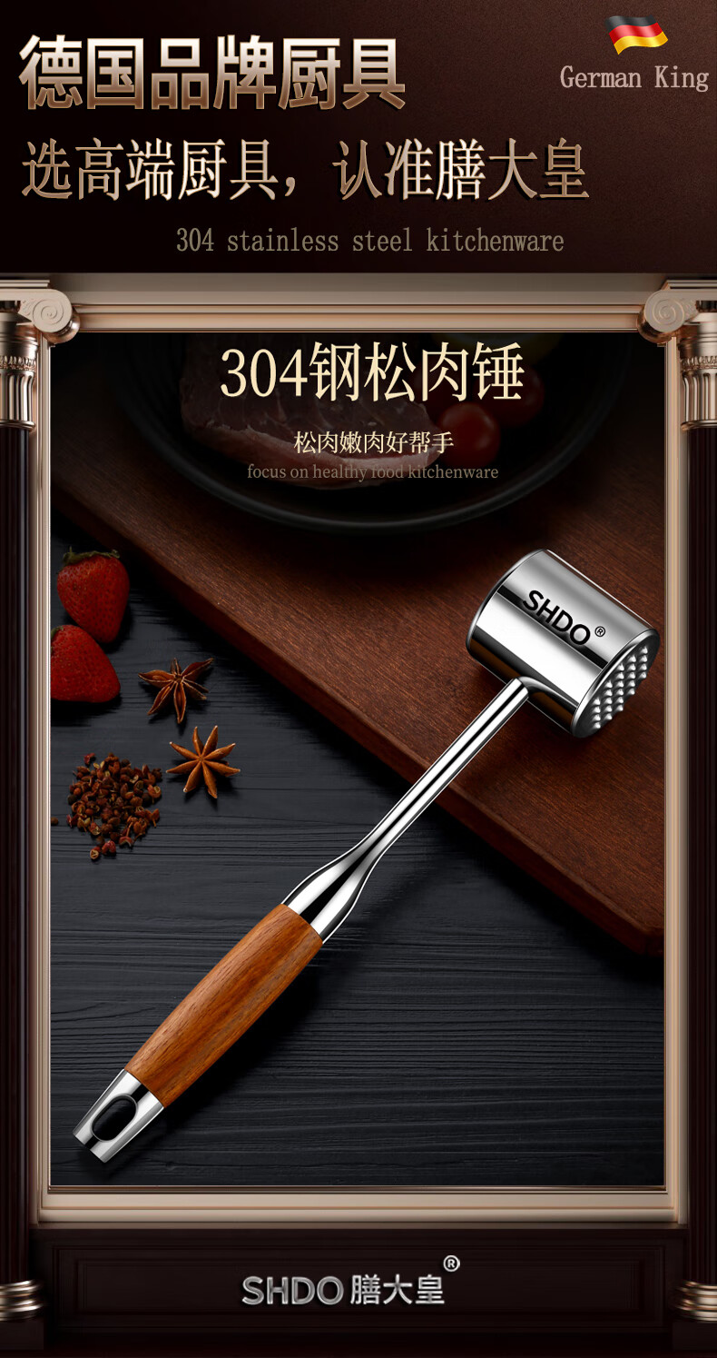 Shandahuang (SHDO) German 304 stainless steel meat hammer, solid steak hammer, meat needle tenderizer, beef hammer, meat hammer, tendon breaking hammer, 304 German style all-steel meat hammer