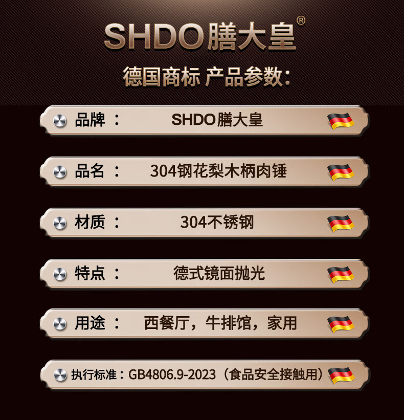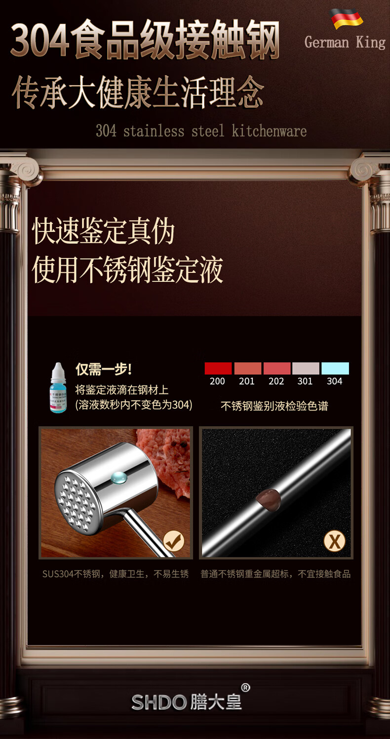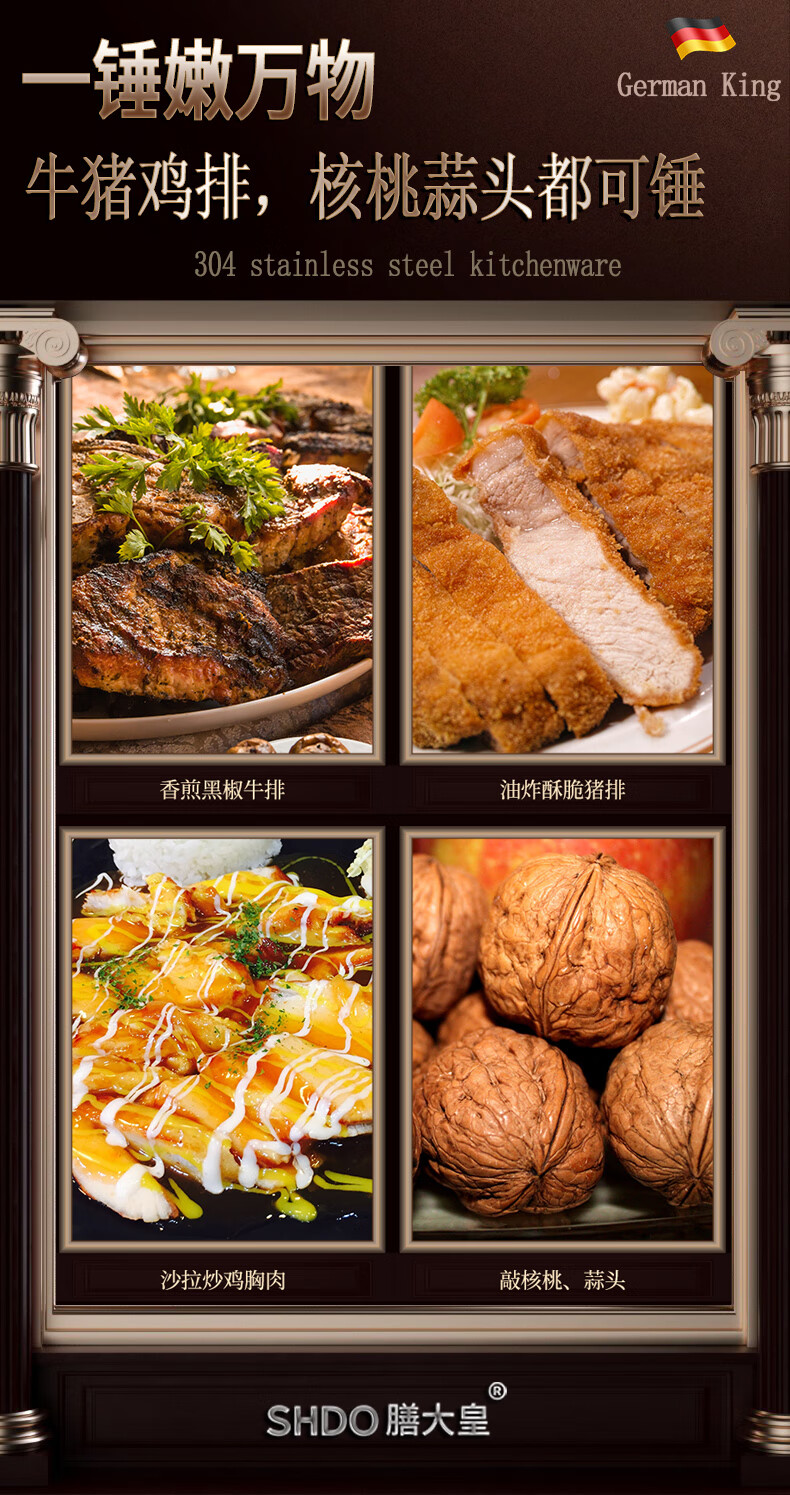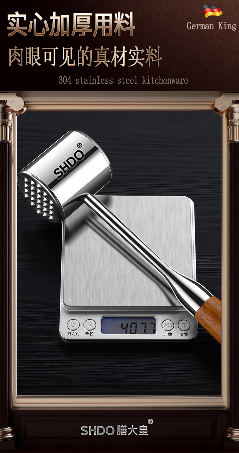 Shandahuang (SHDO) German 304 stainless steel meat hammer, solid steak hammer, meat needle tenderizer, beef hammer, meat hammer, tendon breaking hammer, 304 German style all-steel meat hammer