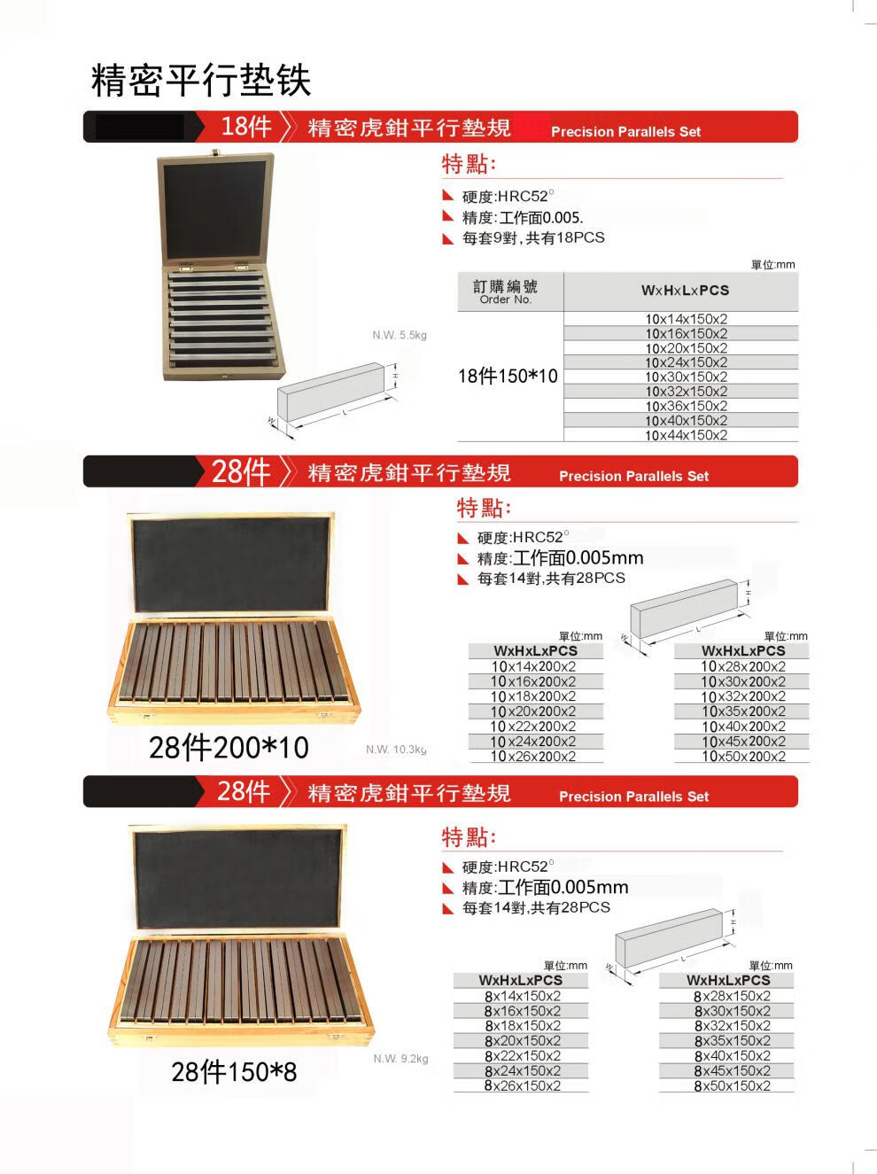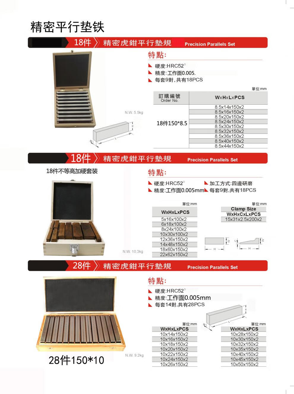 Parallel pad iron, parallel pad block, vise parallel plate, 18 pieces 150*8.5