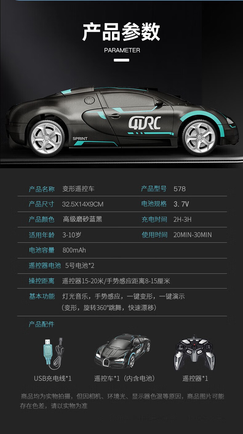 Huanmojia Transforming Car Remote Control Car Robot Boy Children Water Bomb Toy Car RC Kids Racing Stunts Birthday Gift Gesture Sensing Transforming Car Gift Box-Blue 3-6-12-15 Years Old Christmas Eve Christmas Gift New Year's Day New Year's Gift