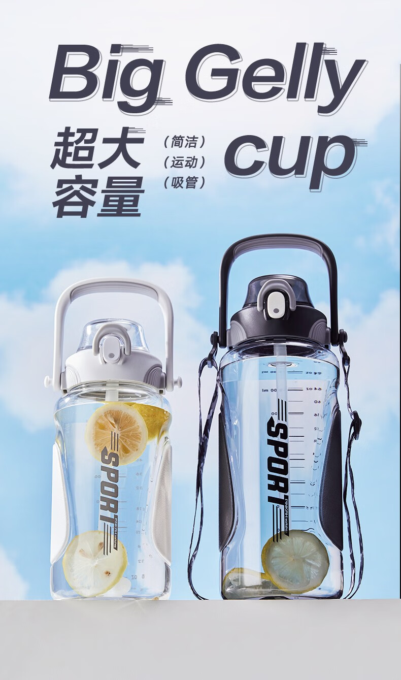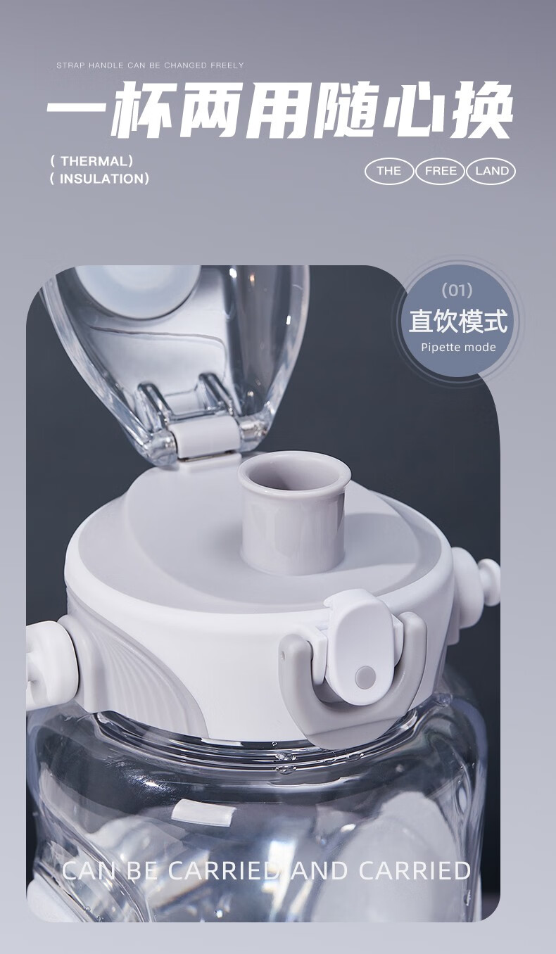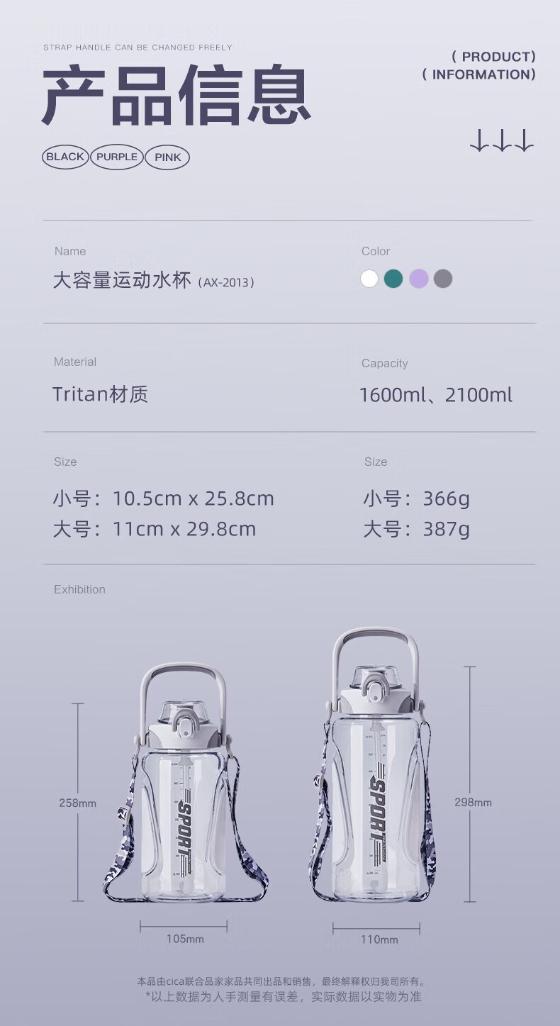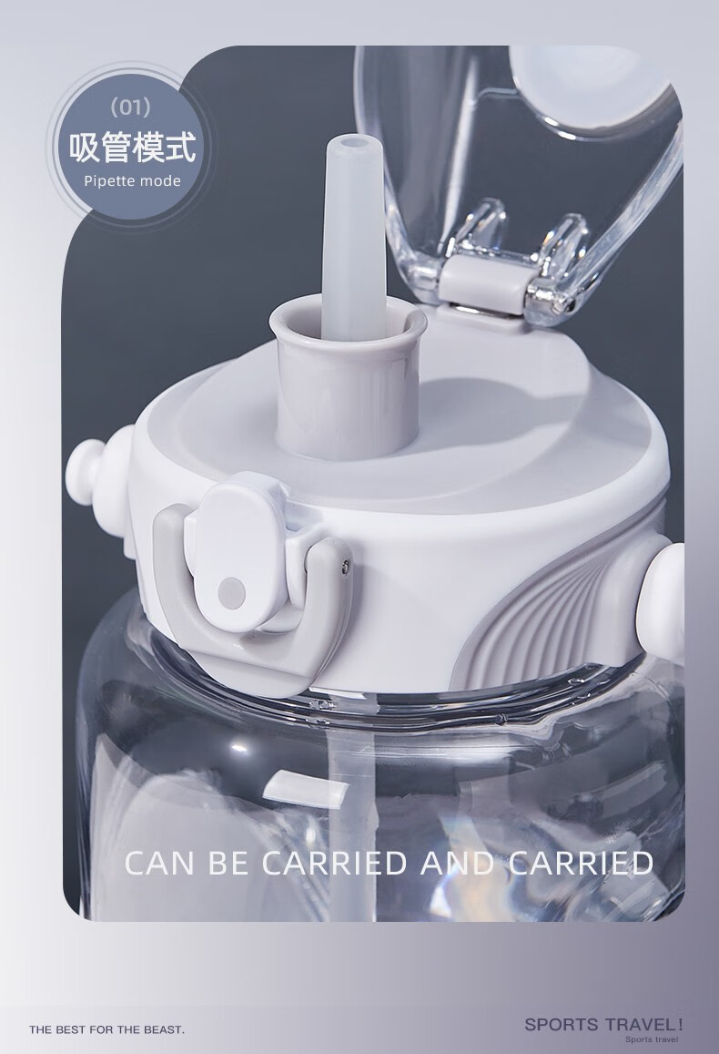 Cica sports water cup large capacity dunton ton bucket high temperature resistant tritan plastic cup military training kettle bottle with scale summer (straw + direct drink + strap) white 1600ml