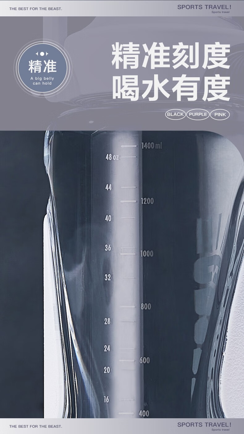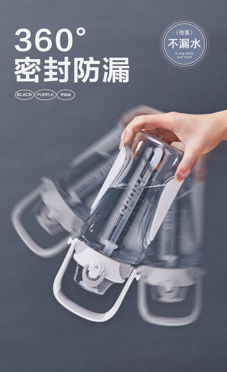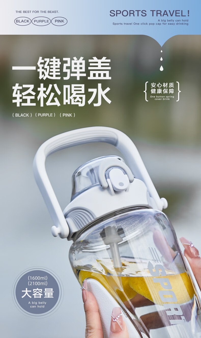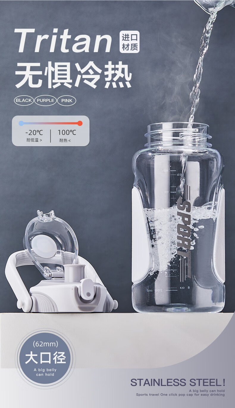 Cica sports water cup large capacity dunton ton bucket high temperature resistant tritan plastic cup military training kettle bottle with scale summer (straw + direct drink + strap) white 1600ml