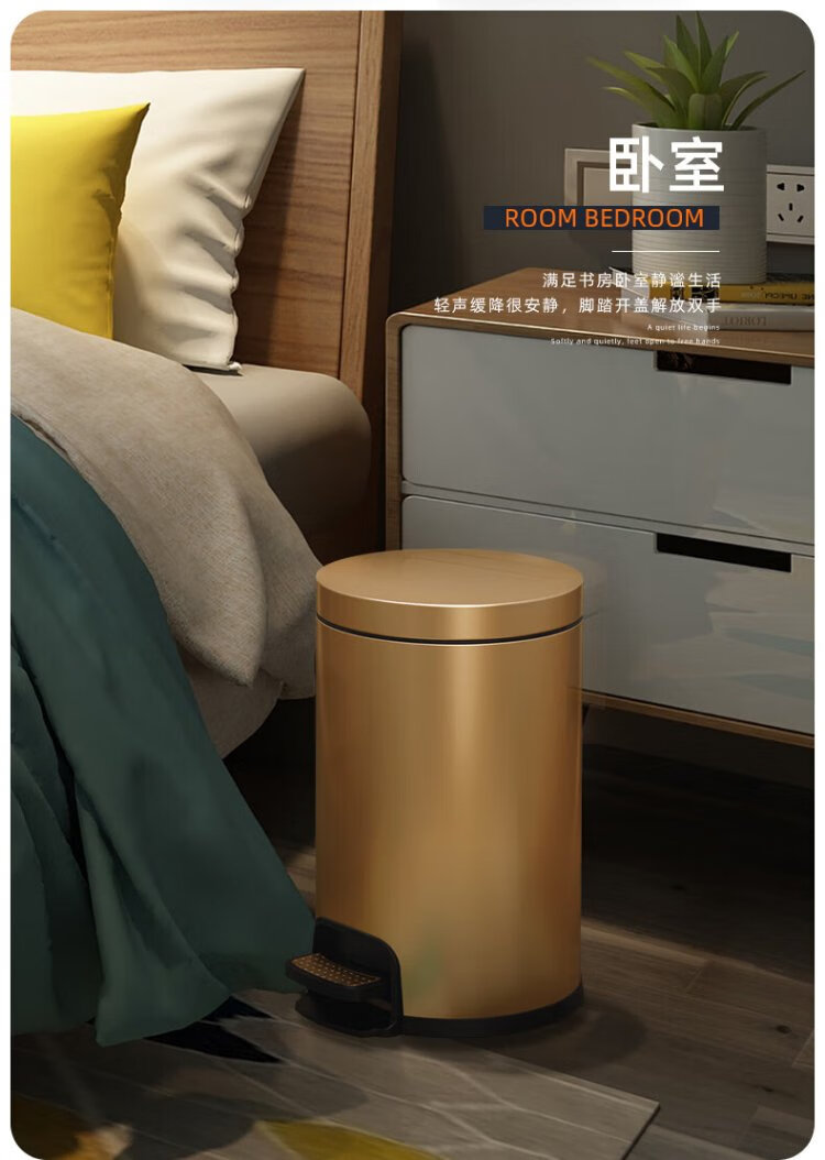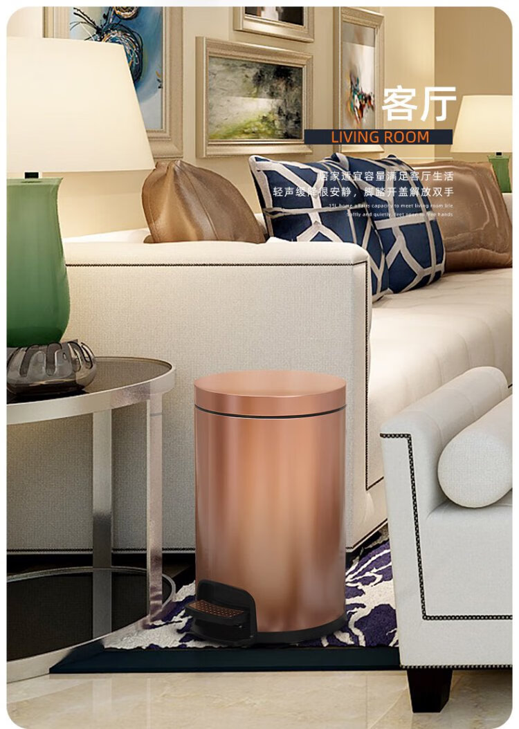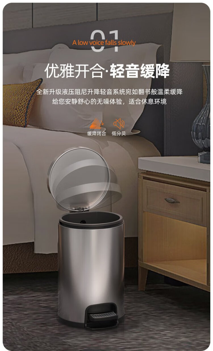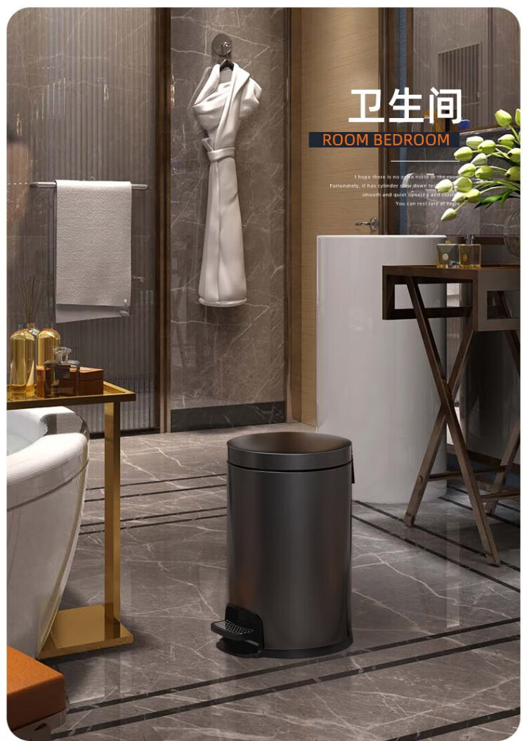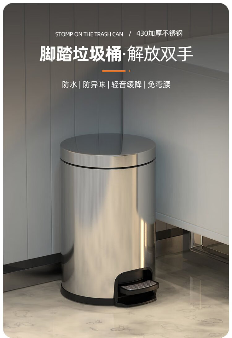 Jinke stainless steel trash can with lid, foot-operated, slow-down closure, hotel office, commercial use, large capacity, indoor and outdoor living room, bathroom, customized, 8 liters of sand silver steel