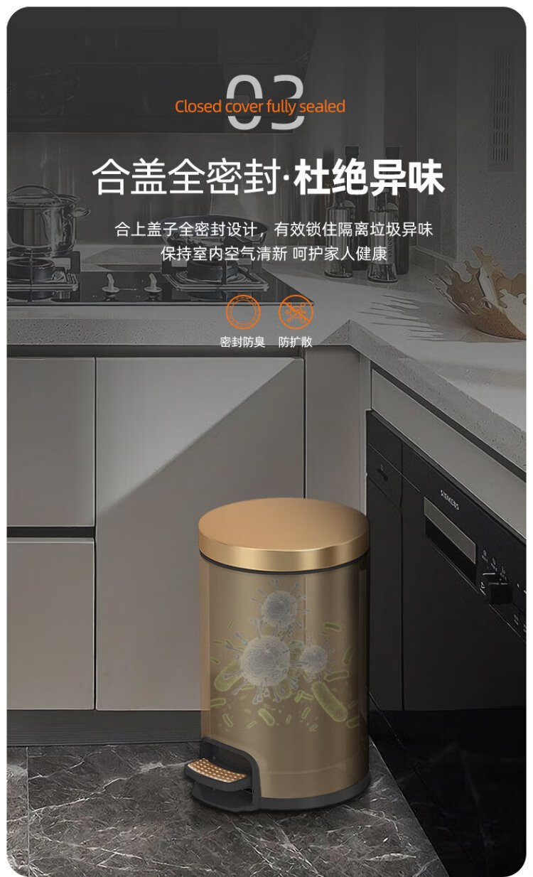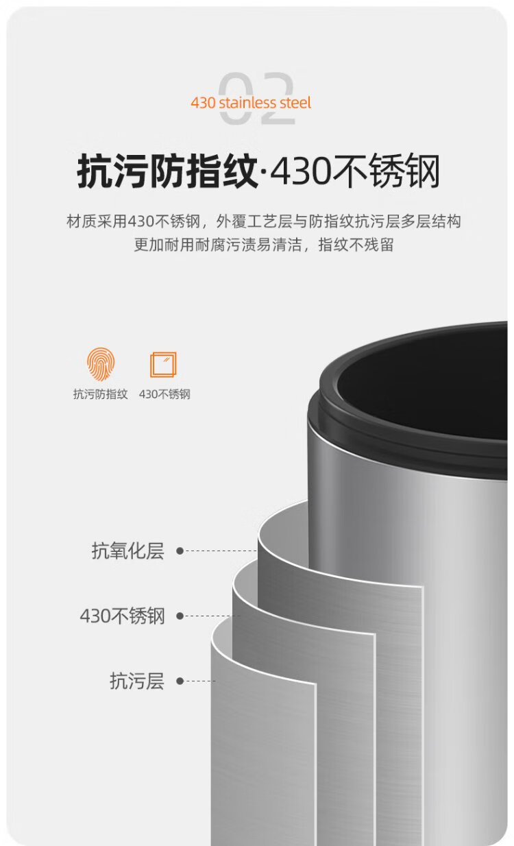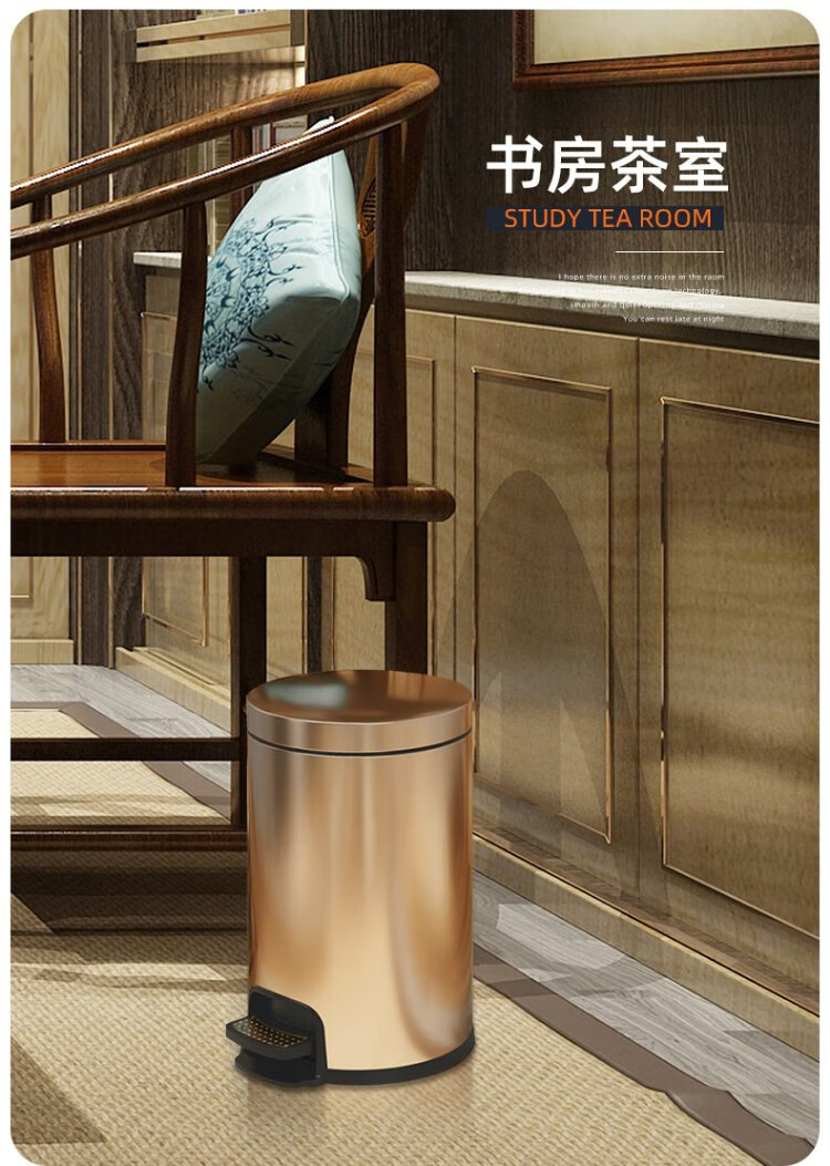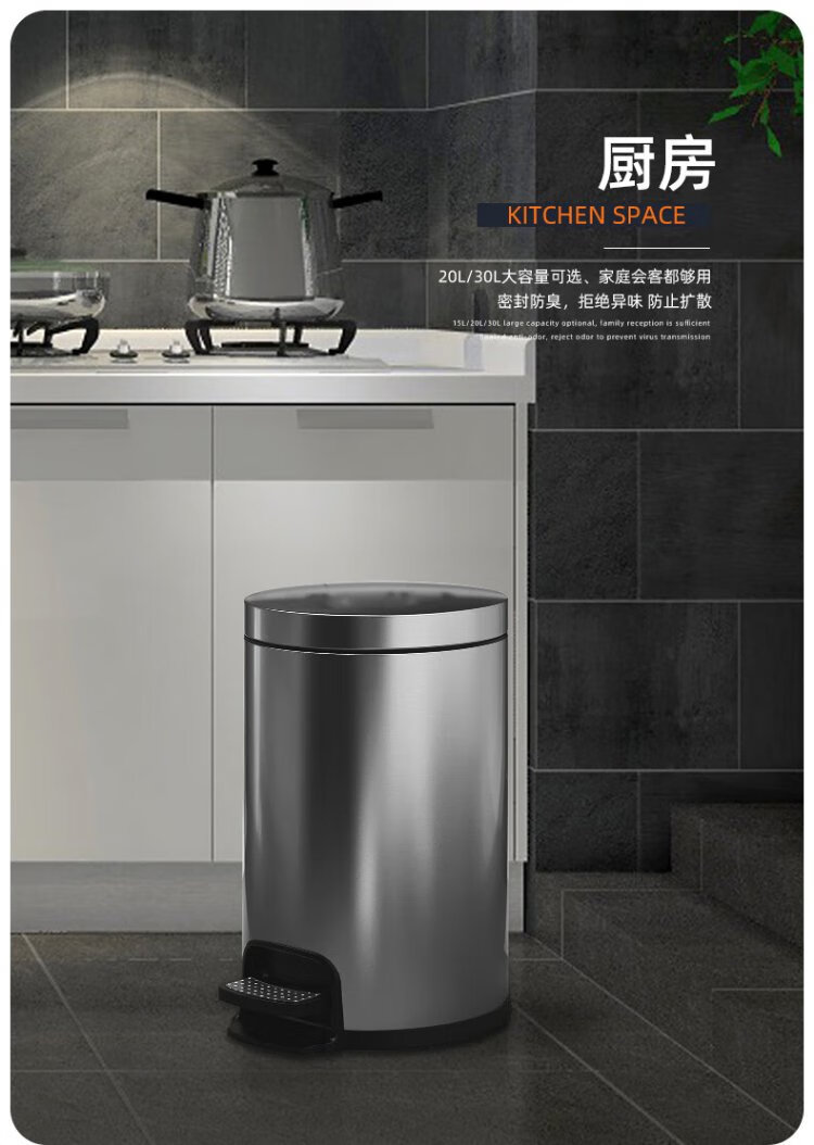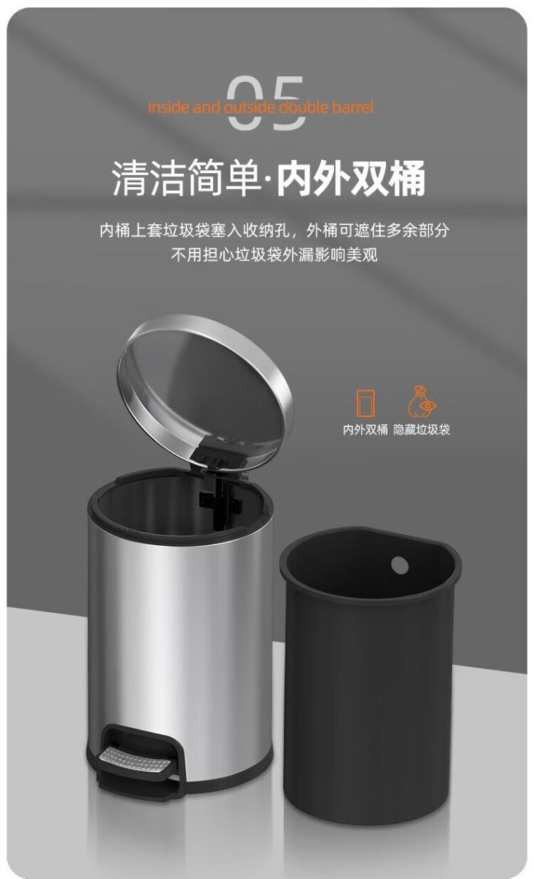 Jinke stainless steel trash can with lid, foot-operated, slow-down closure, hotel office, commercial use, large capacity, indoor and outdoor living room, bathroom, customized, 8 liters of sand silver steel