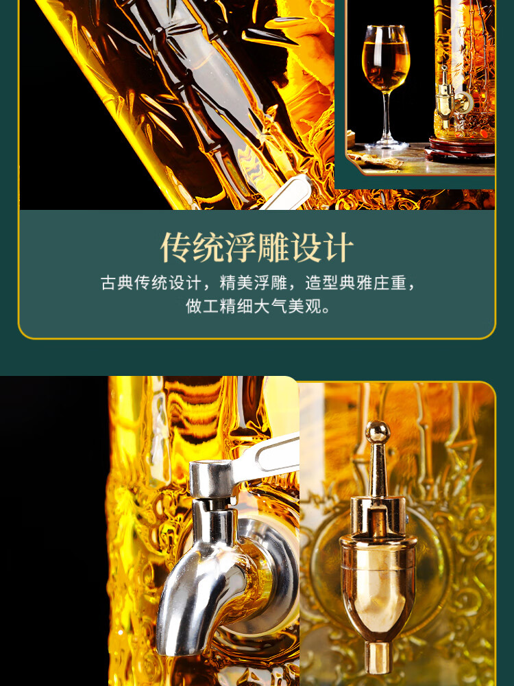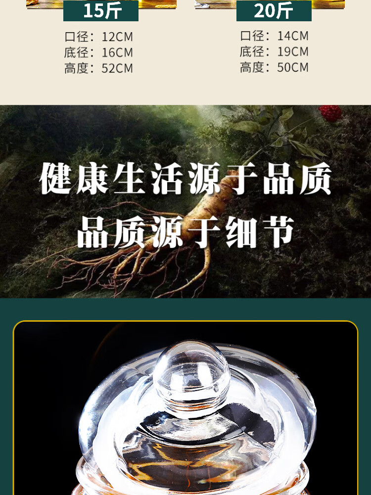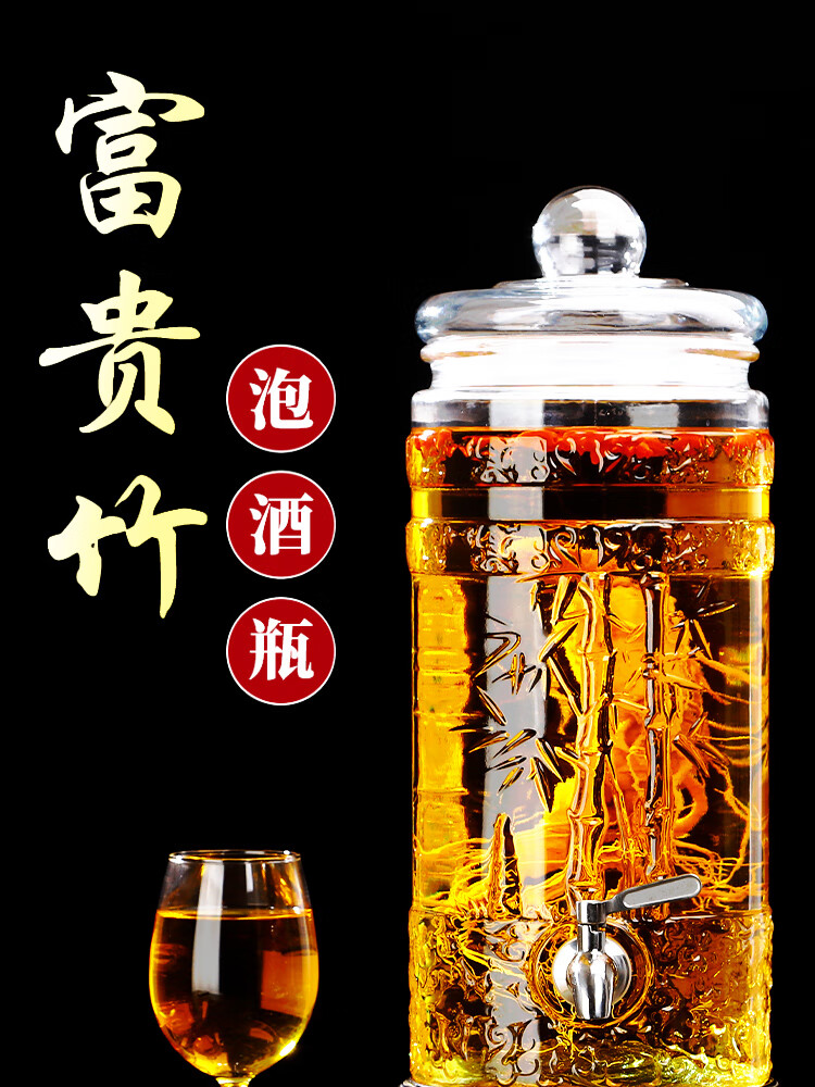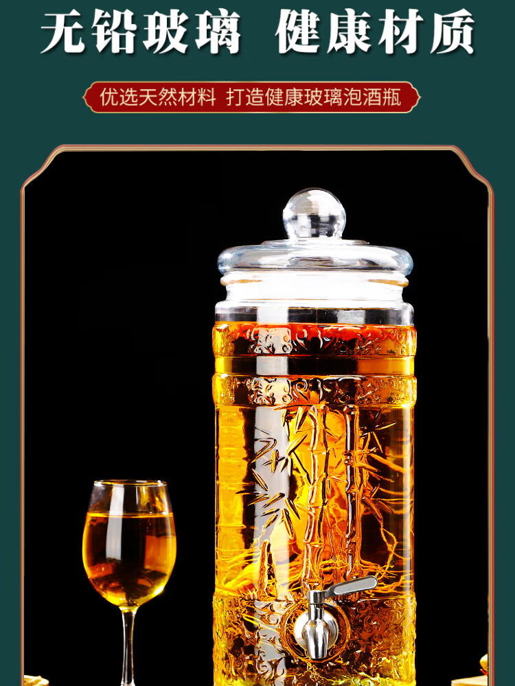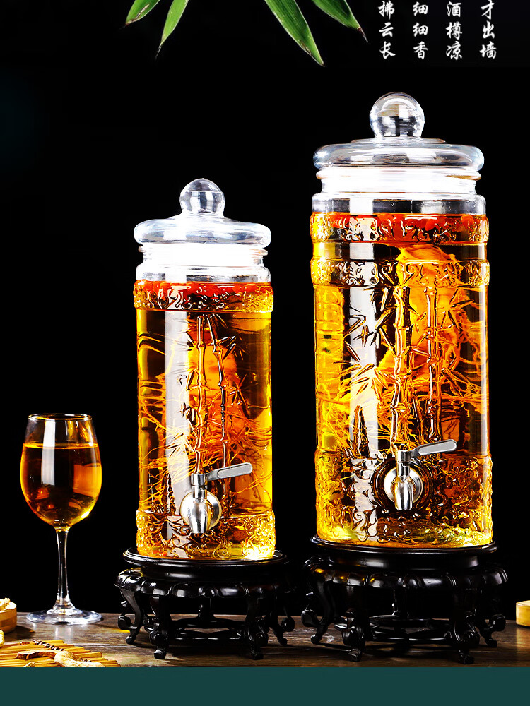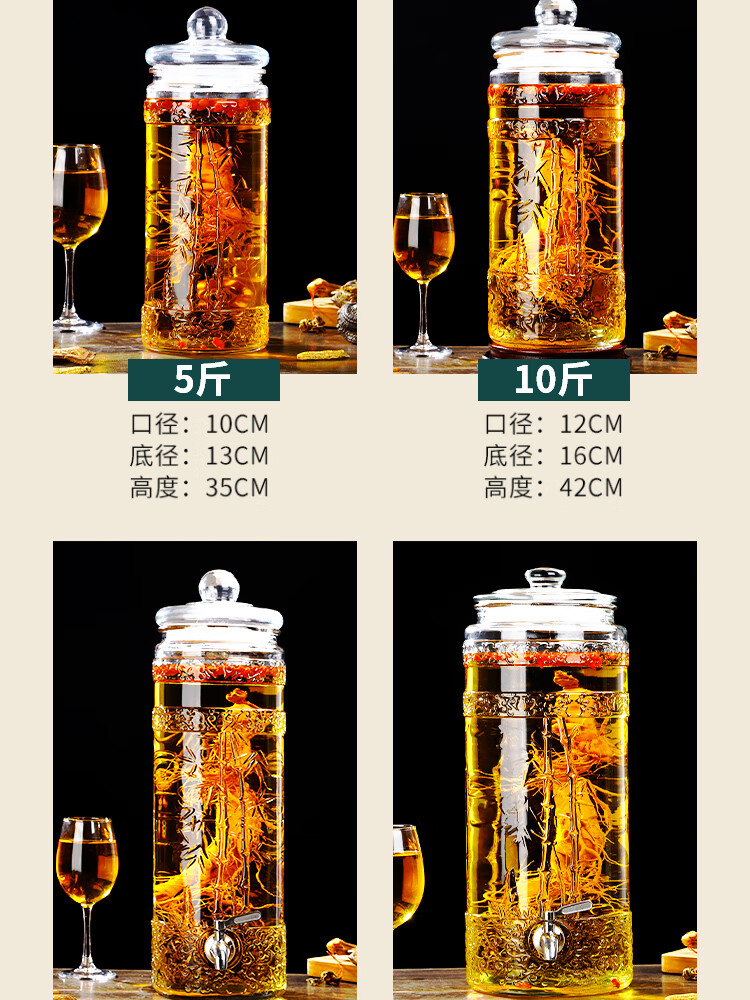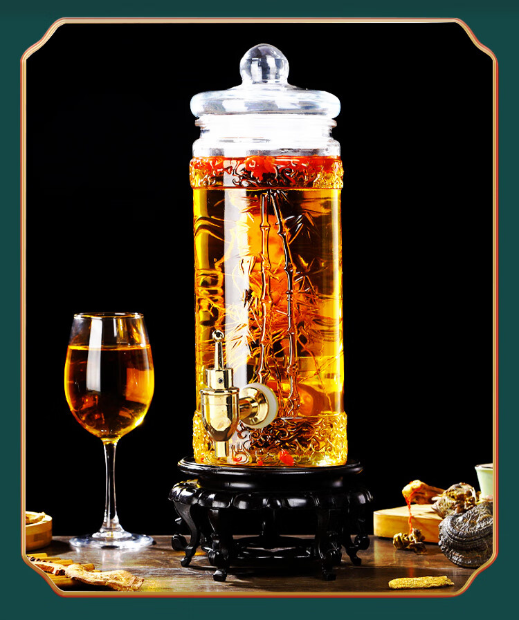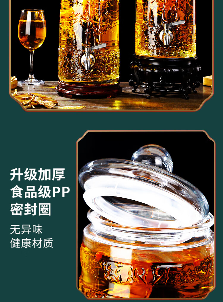 Divine bottle eight-glass lead-free thickened ginseng wine jar, special wine bottle for making wine, household 5 jin green plum fruit wine medicinal wine brewing container, 5 jin no faucet