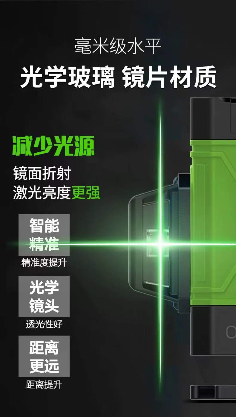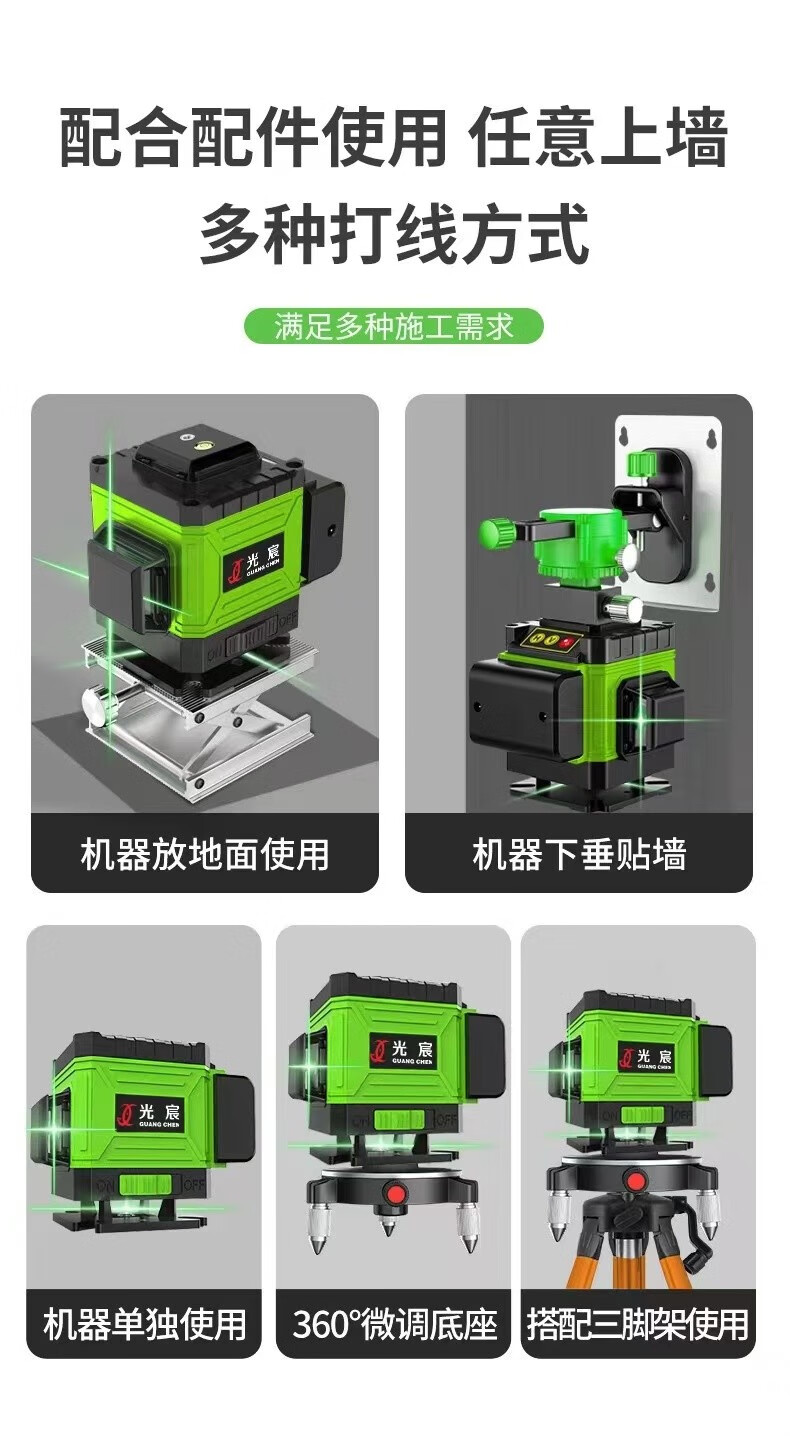 Nainod Guangchen Infrared Level Green Light Laser Level High-precision Line-Affixed Wall-mounted Instrument Ground Level Water Meter Green Light 8 Lines 1 Electricity 1 Charge No Accessories