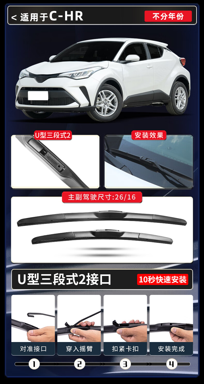 Aolin GAC Toyota C-HR wiper chr original original size car wiper strip silent boneless wiper blade C-HR 18-20-21-22 front and rear wiper set