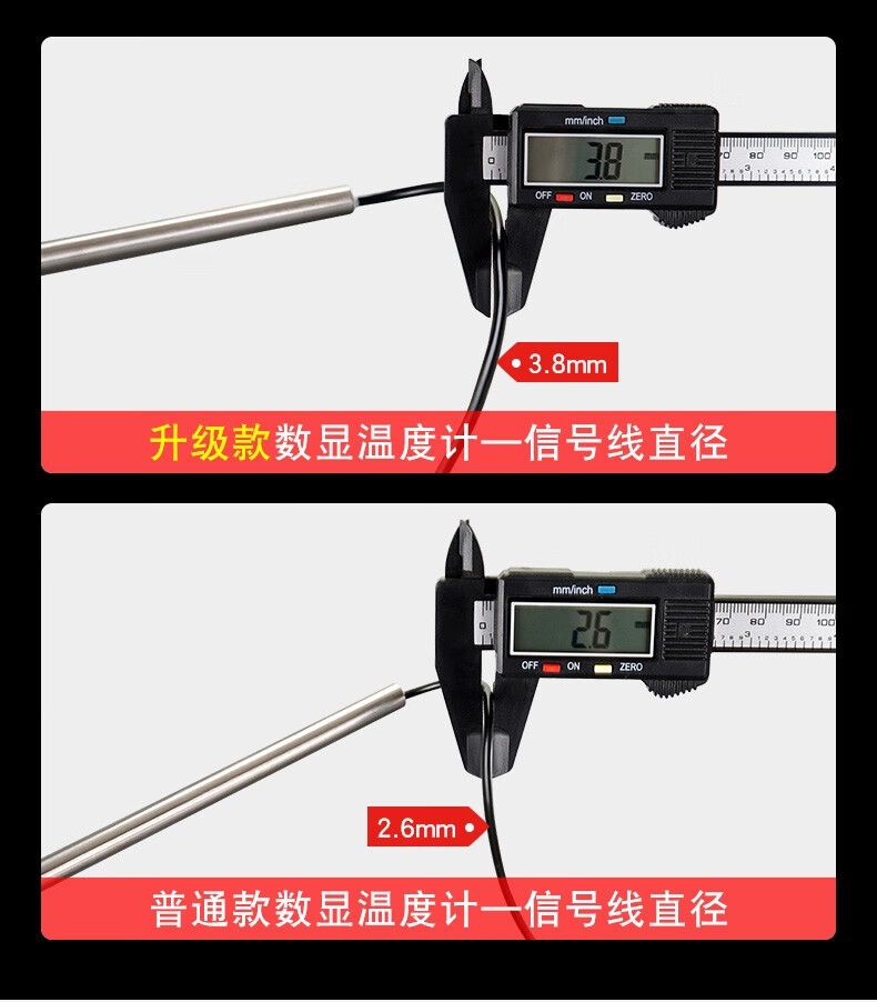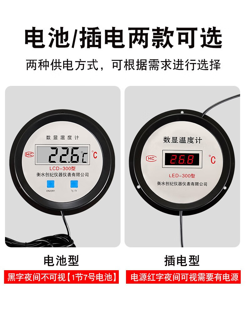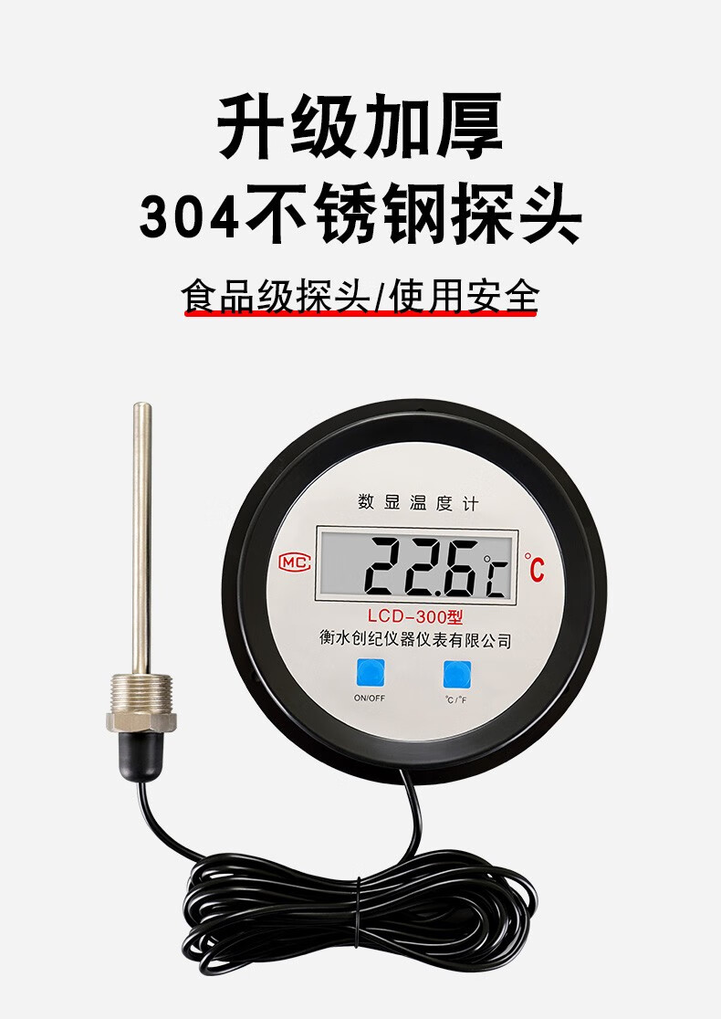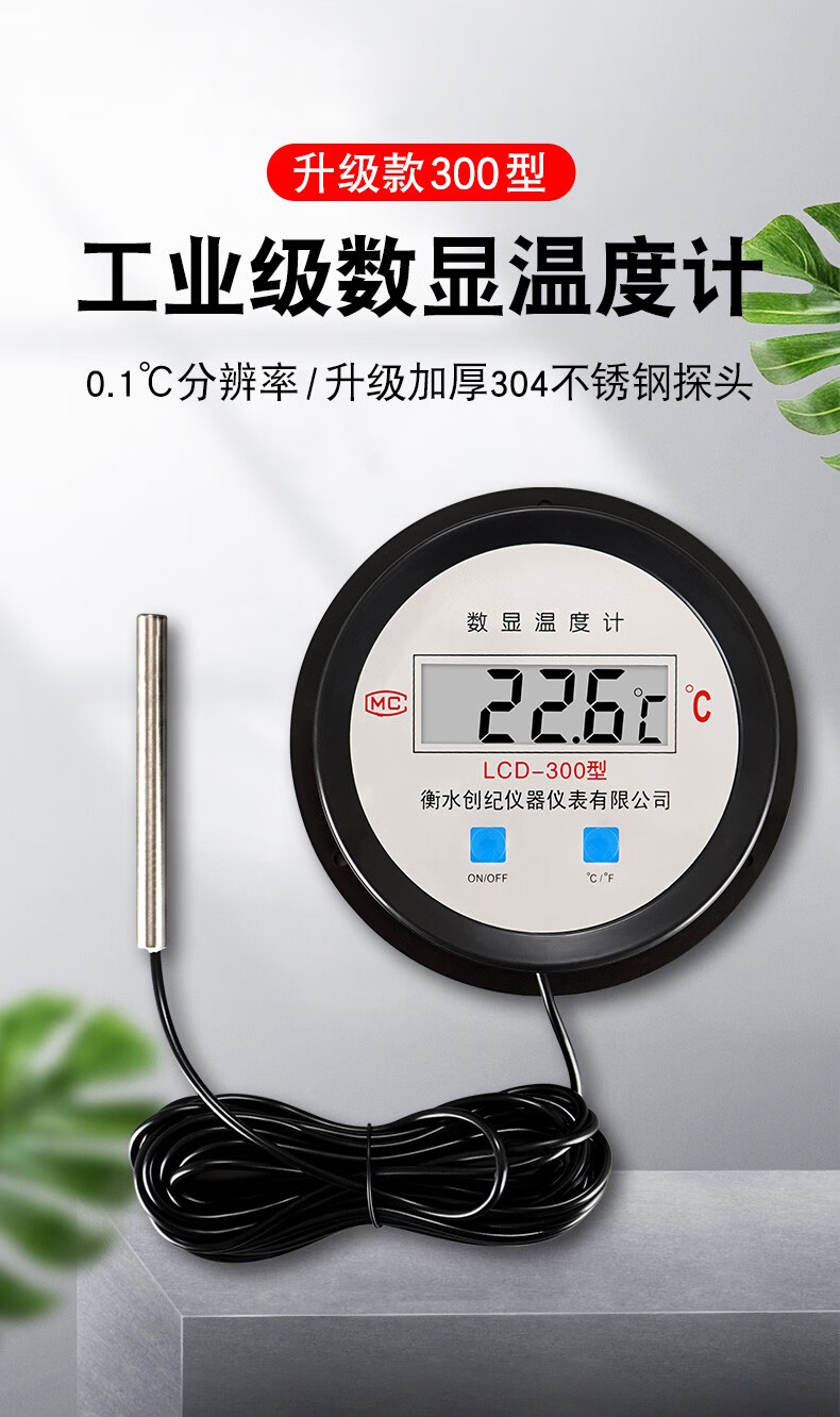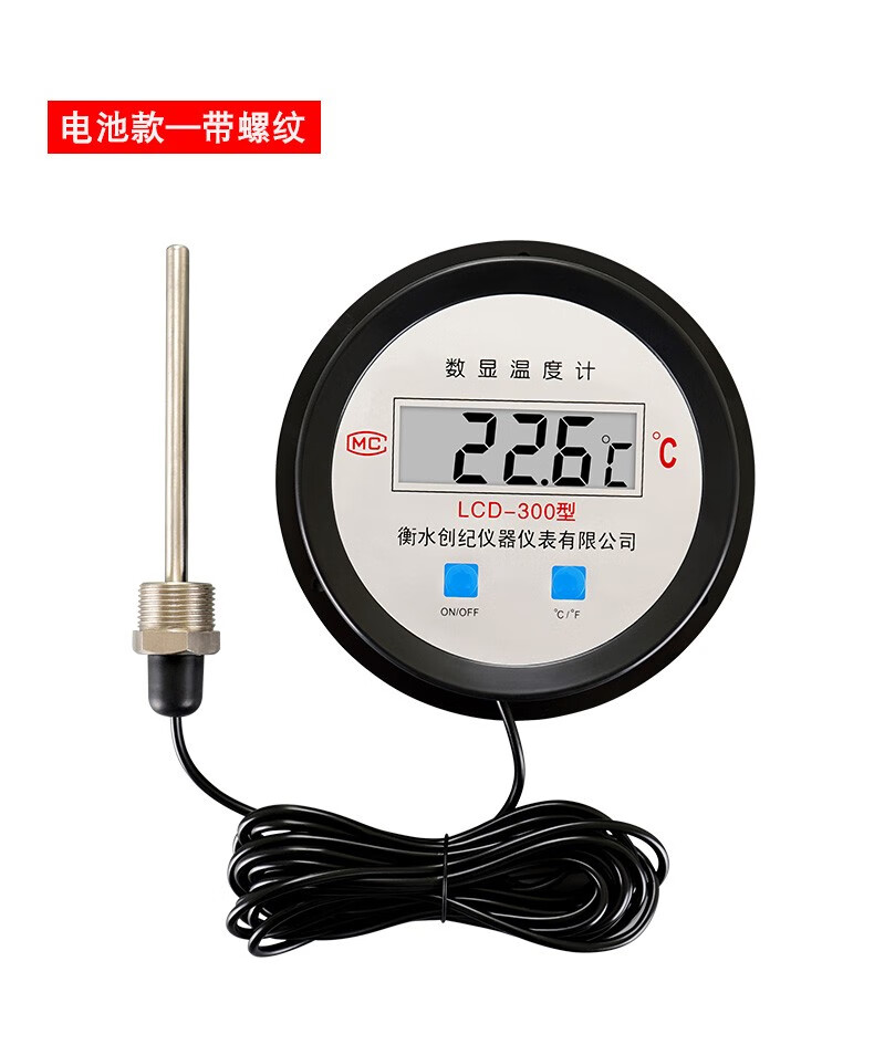 Chuangjimei Water Temperature Meter Electronic Water Temperature Meter Digital Display Thermometer Meter Sensor Fish Pond Aquaculture Greenhouse Industrial Use Battery Type - Thick 2 Meters Wire - No Thread