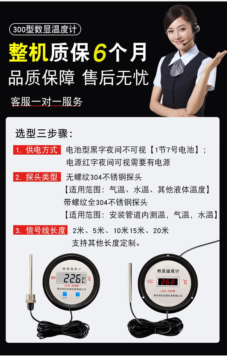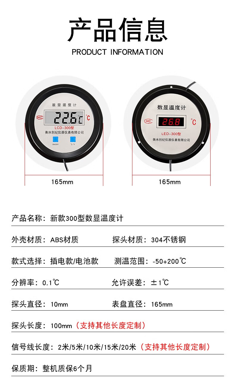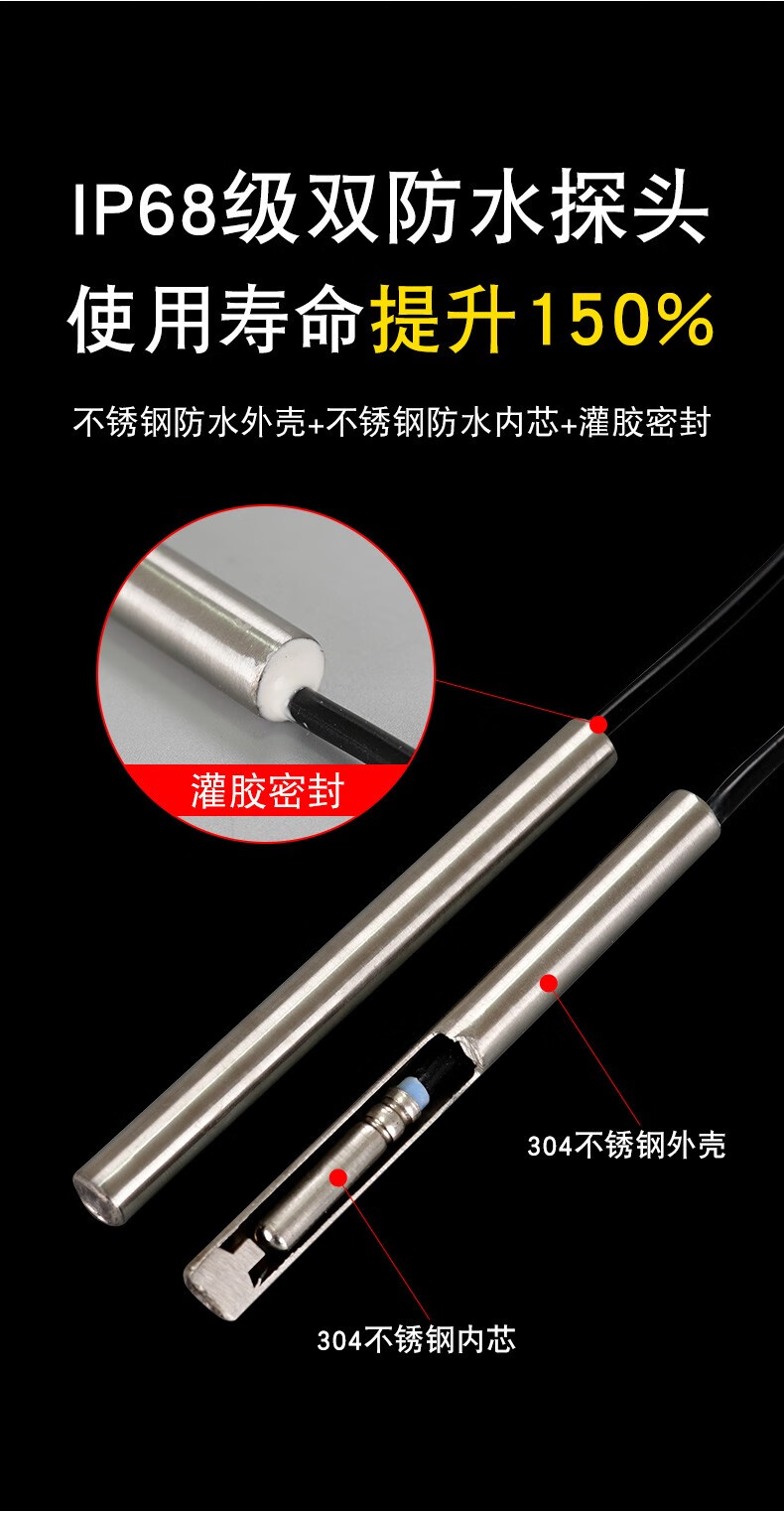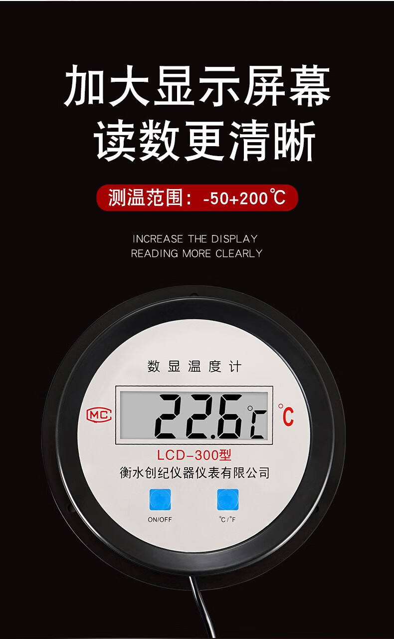 Chuangjimei Water Temperature Meter Electronic Water Temperature Meter Digital Display Thermometer Meter Sensor Fish Pond Aquaculture Greenhouse Industrial Use Battery Type - Thick 2 Meters Wire - No Thread