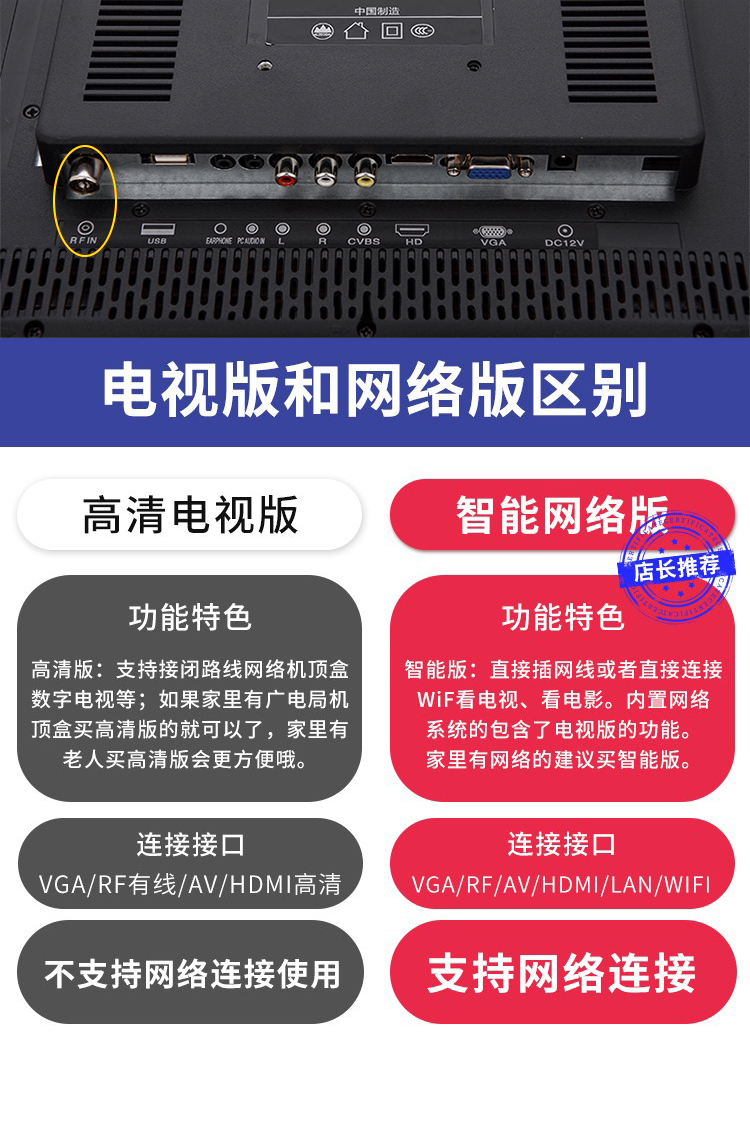 COOAV small size high-definition smart wifi small TV mini TV bedroom elderly TV color TV monitor 12v RV TV miniled TV 19-inch HD version cannot be connected to the Internet LCD TV