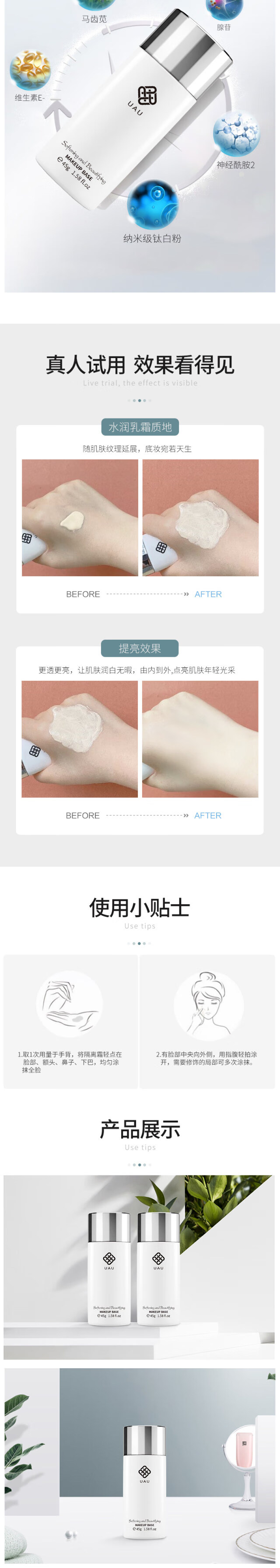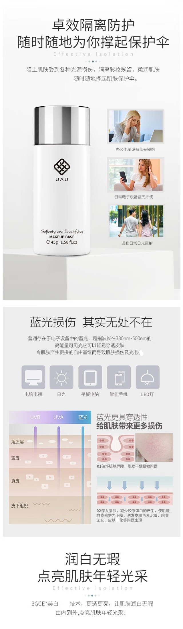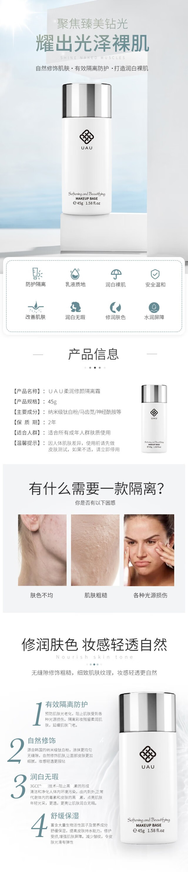 UAU Softening Repair Cream 45g Women's Complexion Long-lasting Concealer Moisturizing Nude Makeup Foundation Protective Makeup Primer