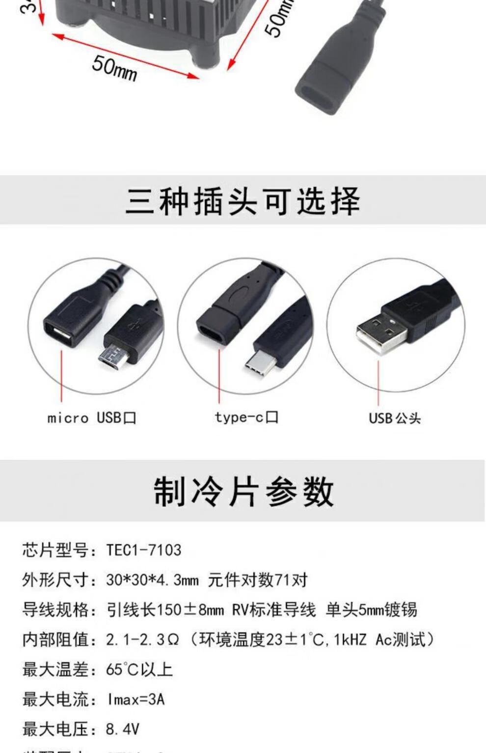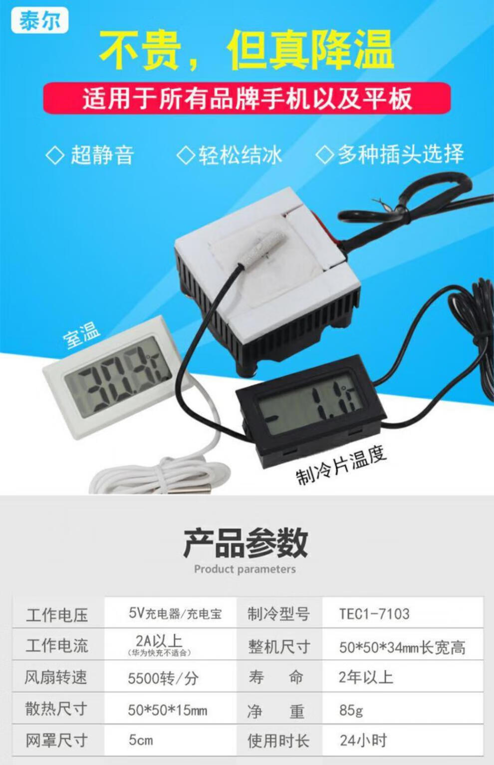 TLXTDIY mobile phone radiator semiconductor refrigeration chip TEC1-7103 conductive cooling fan flat cooling artifact 5V 7103 enhanced version type-c port has been assembled