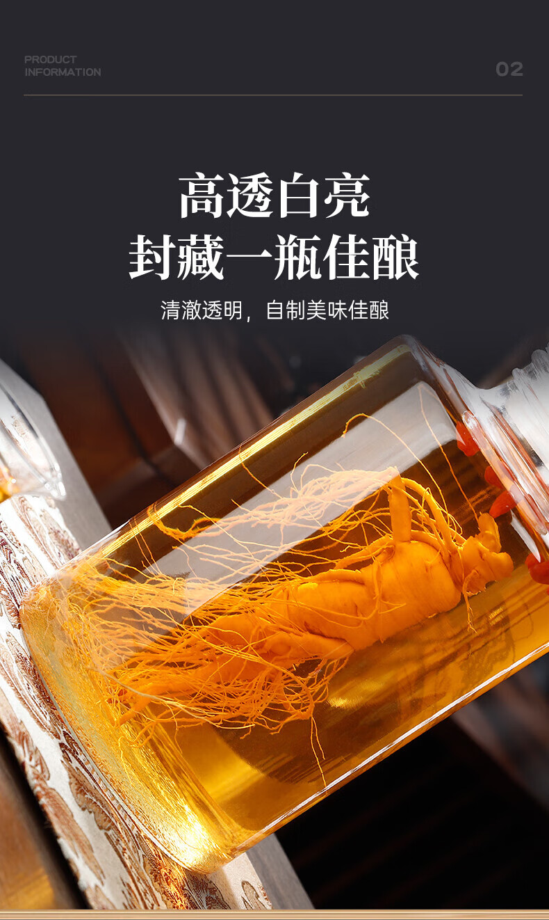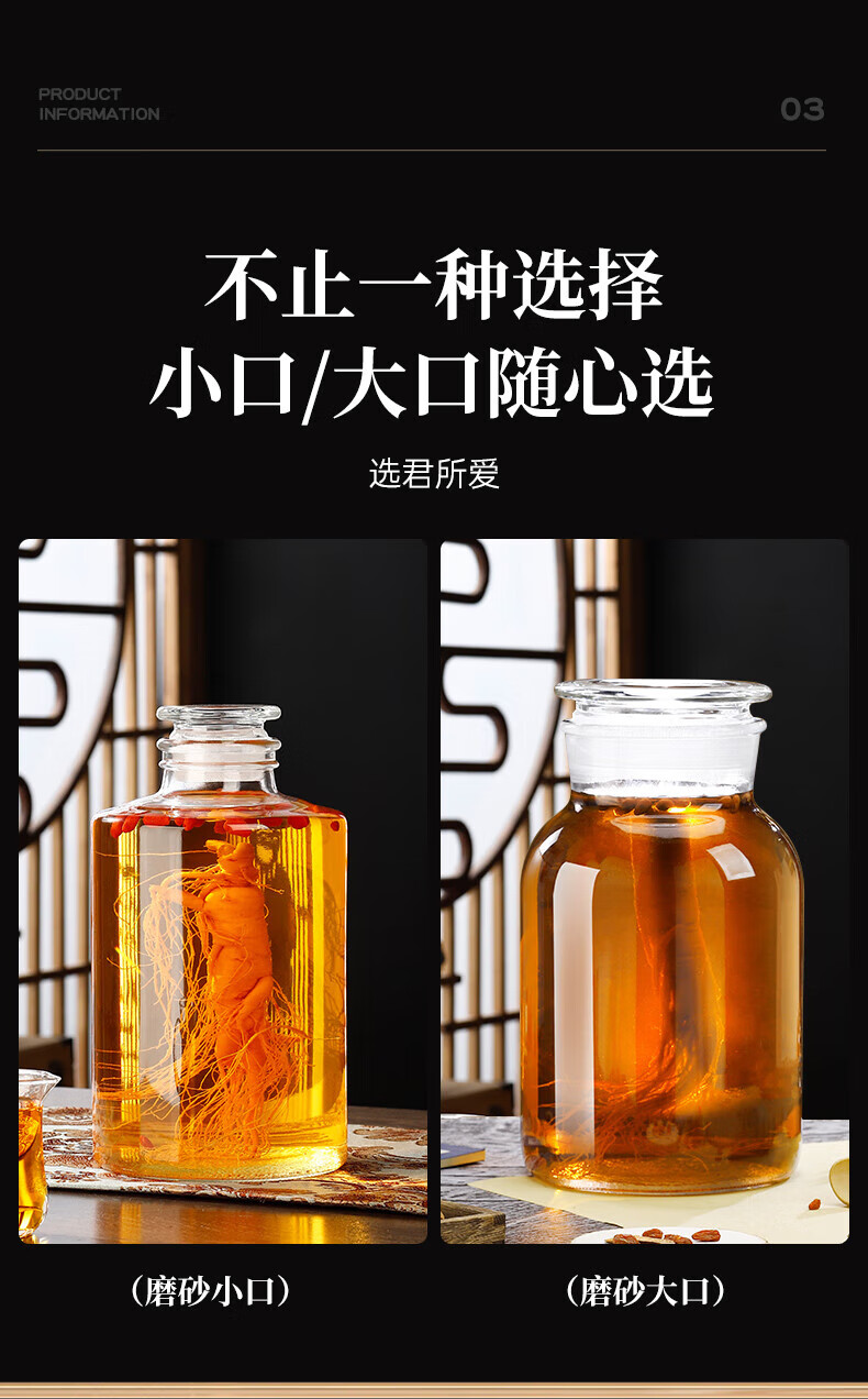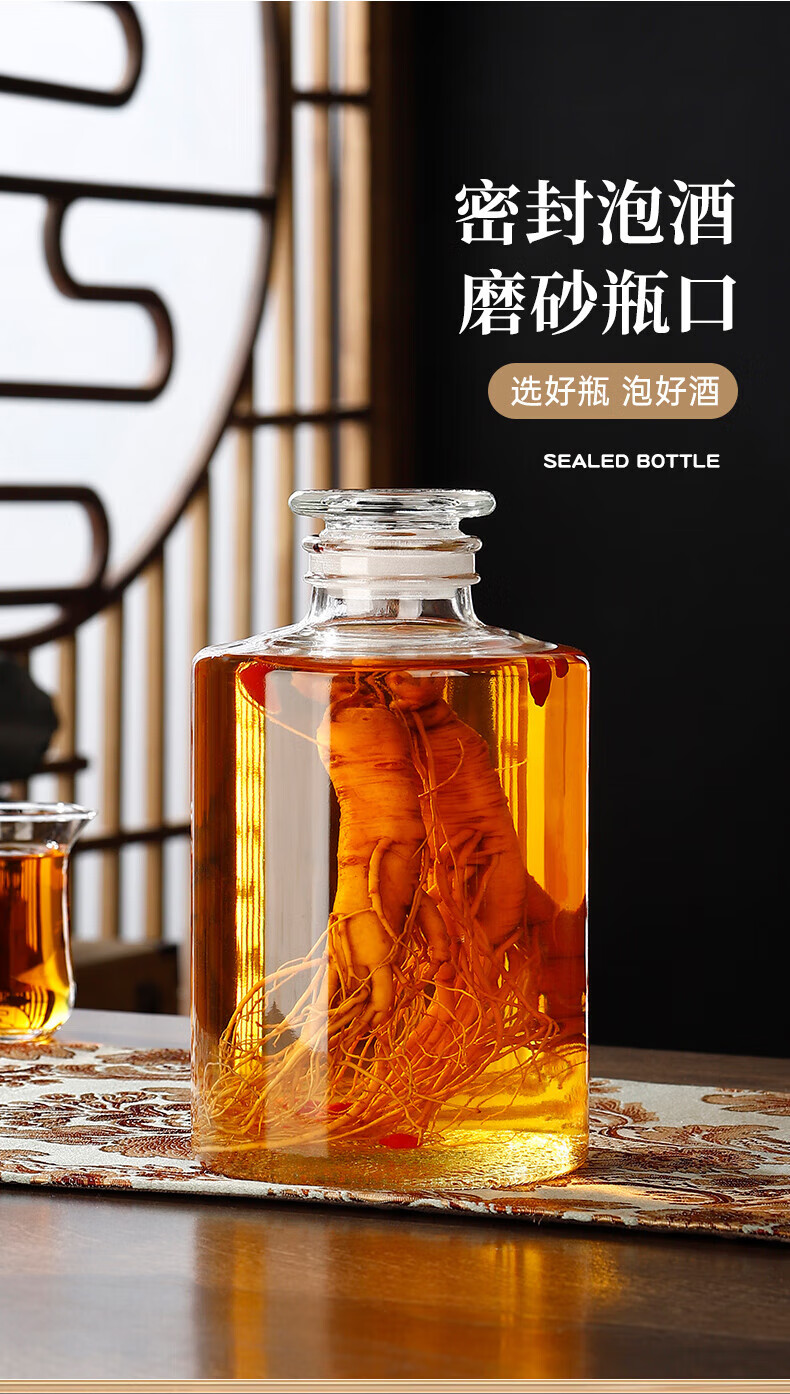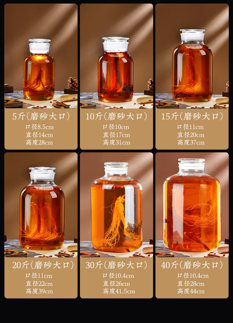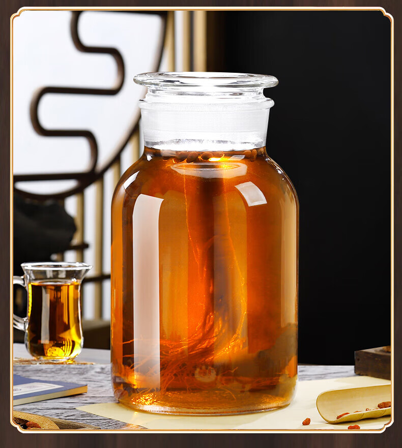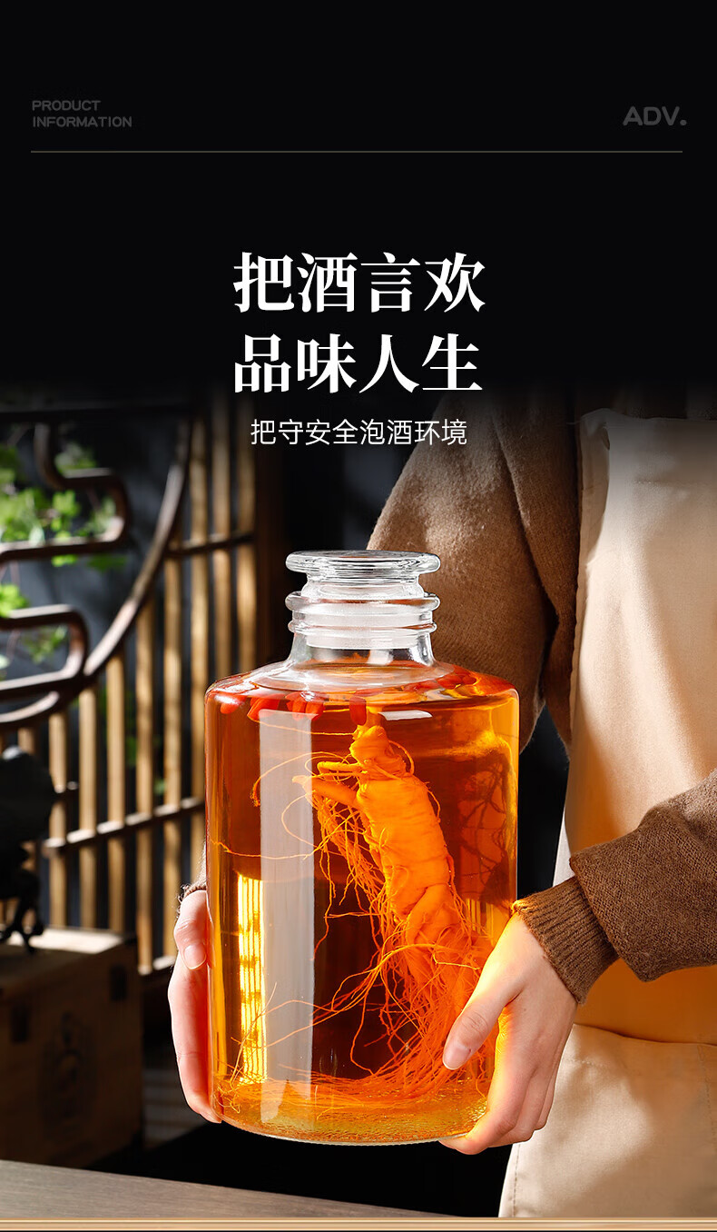 Chenbei bubble wine glass bottle household high-end ginseng special wine bottle medicinal wine jar sealed thickened wine jar wine jar wine container 10 catties naked bottle frosted mouth pattern model-large mouth 5L