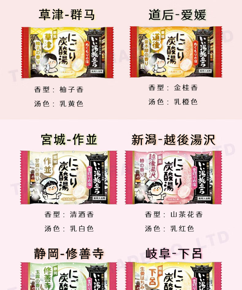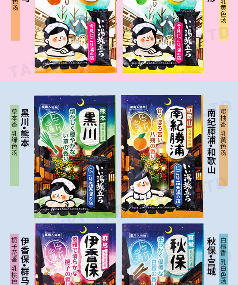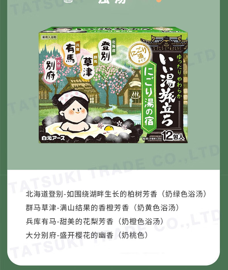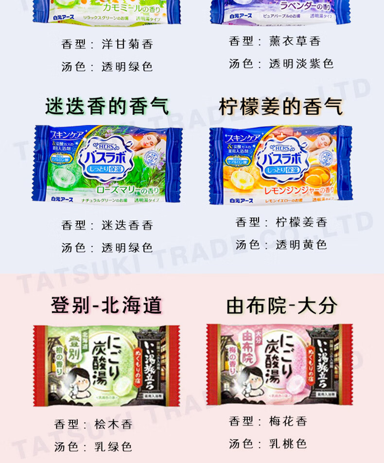 Bai Yuan JD Logistics Japan Direct Mail Bath Salt Carbonated Hot Spring Bath Agent Relieves Fatigue and Exfoliates Bath Agent 4 Scents Mixed C 12 Pack