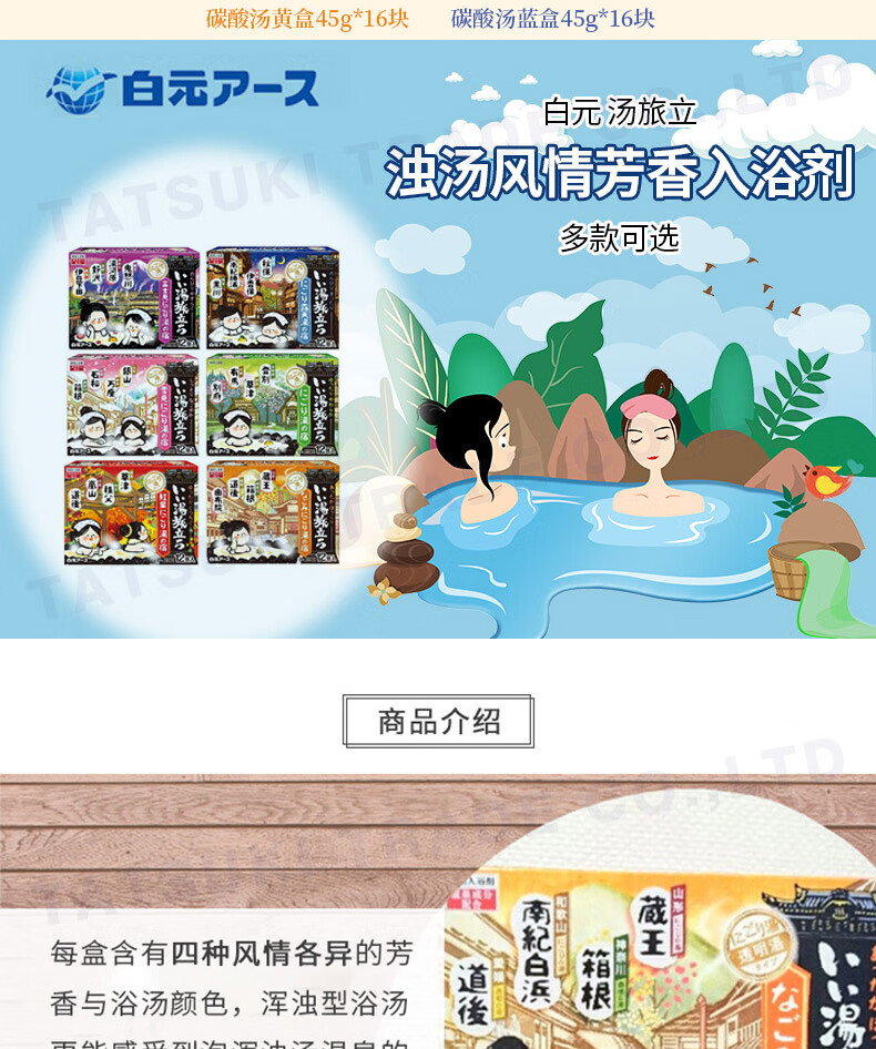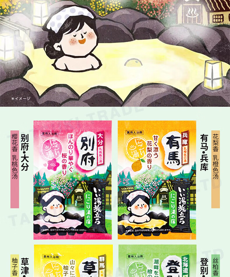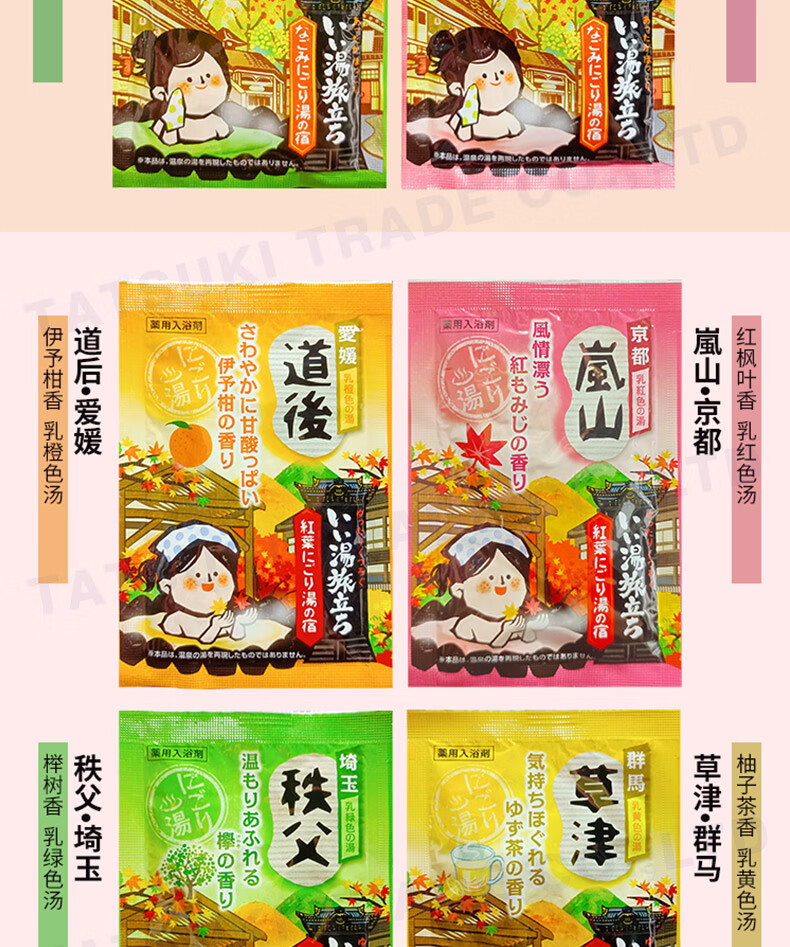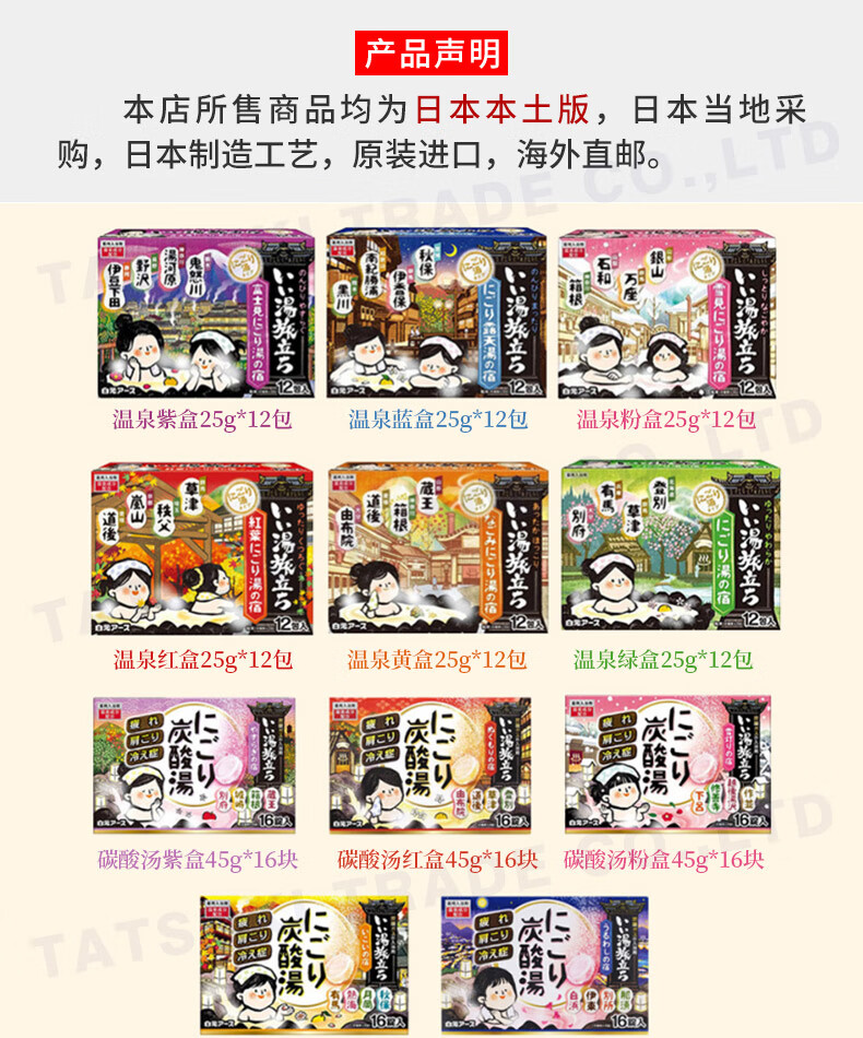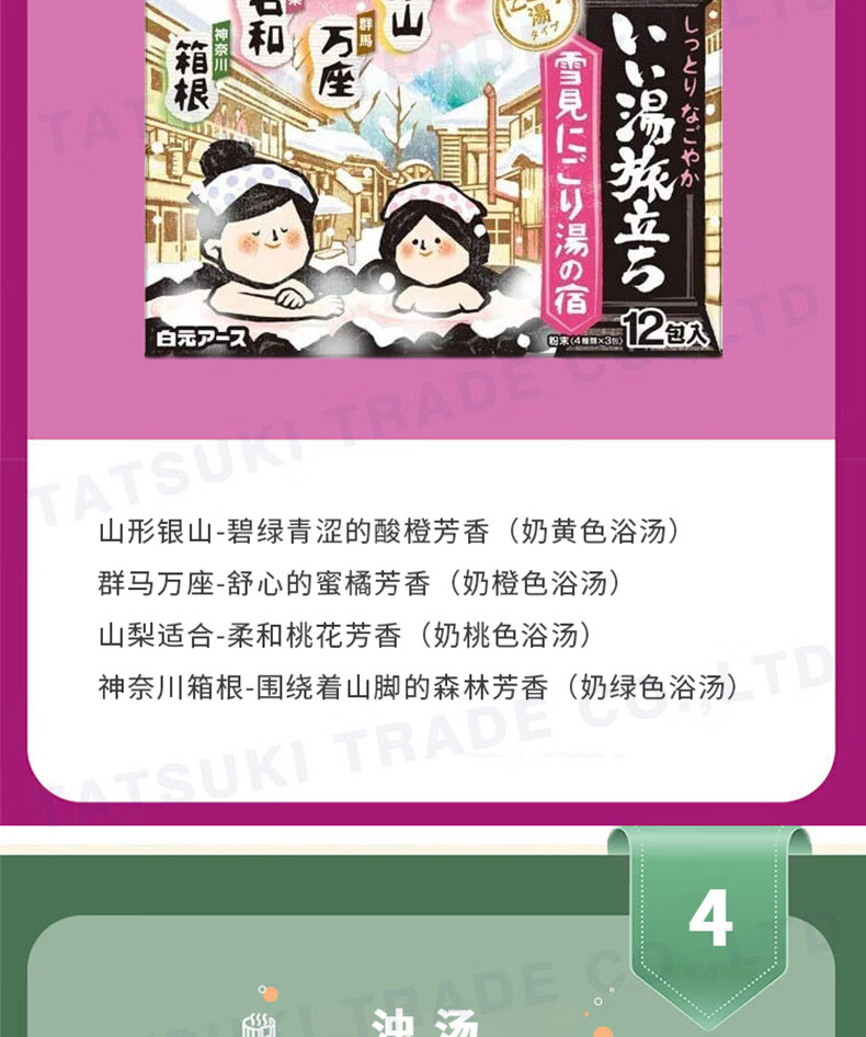 Bai Yuan JD Logistics Japan Direct Mail Bath Salt Carbonated Hot Spring Bath Agent Relieves Fatigue and Exfoliates Bath Agent 4 Scents Mixed C 12 Pack