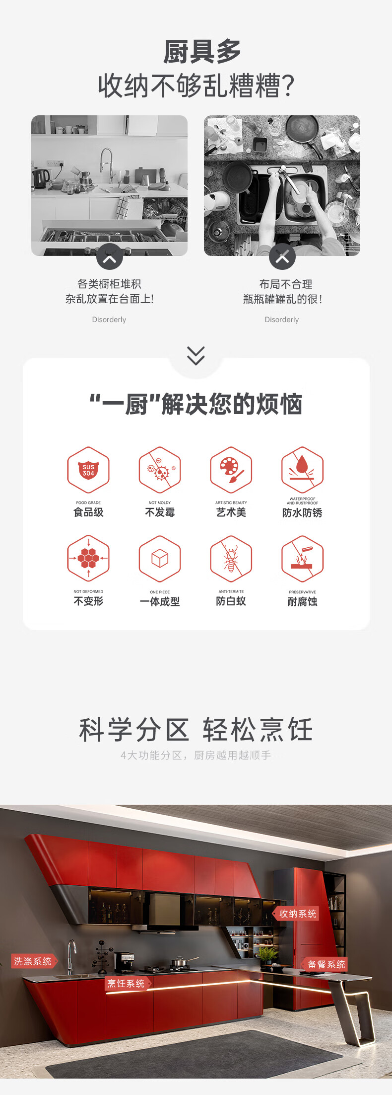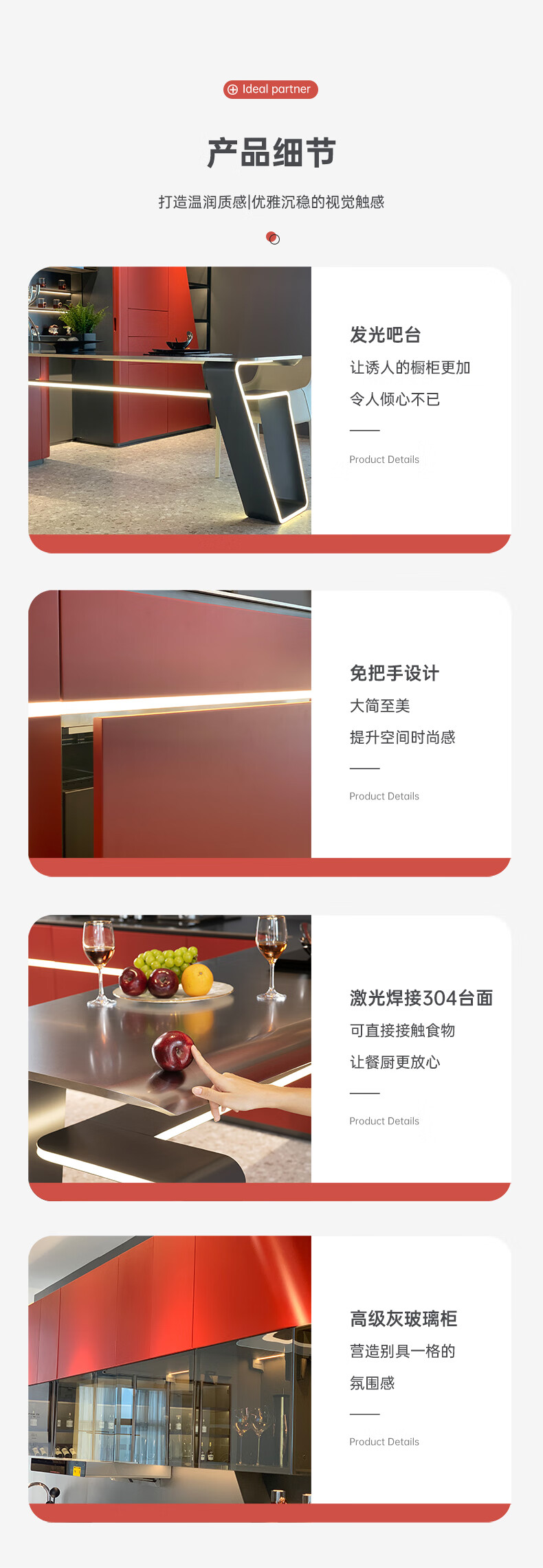Baineng stainless steel cabinets simple modern custom home kitchen cabinets dark red