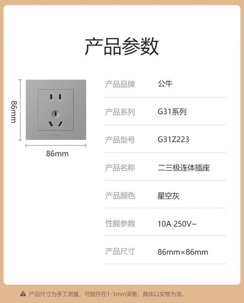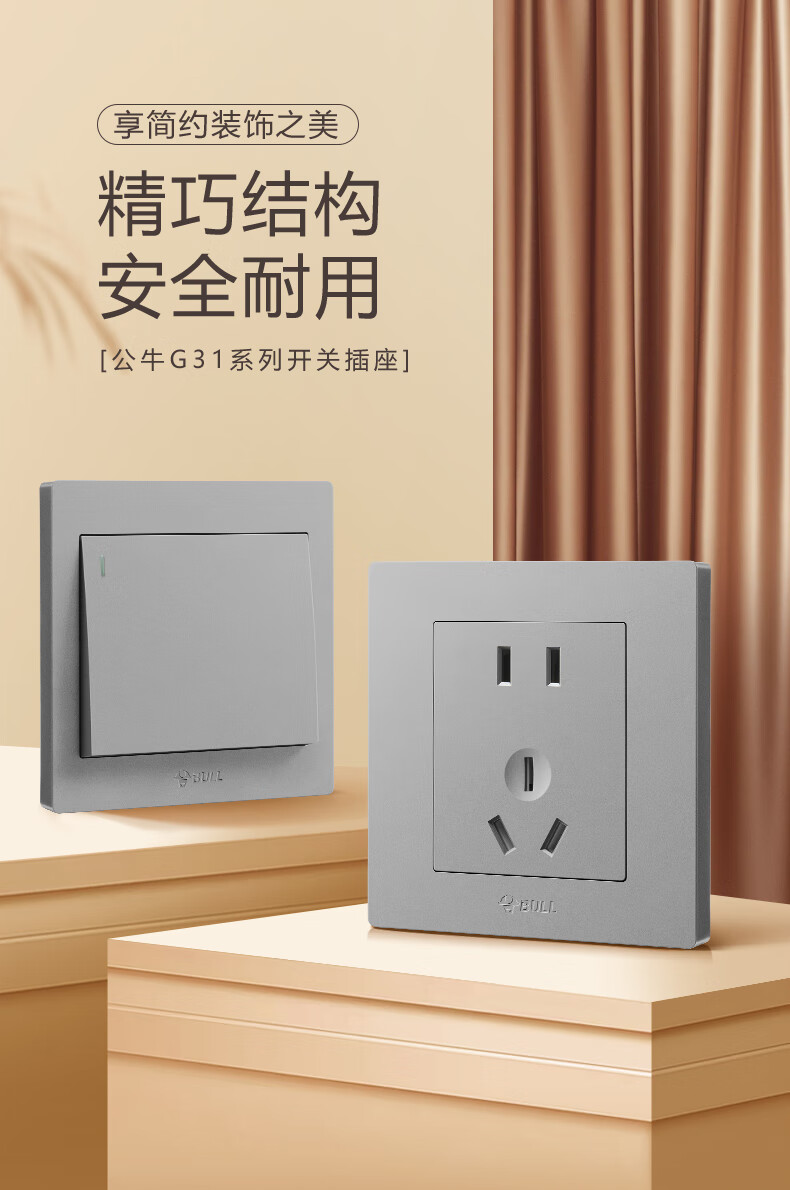 BULL switch socket panel 86 type home package wall power supply five-hole air conditioning socket with switch G31 gray whole house can be customized (40 pieces)