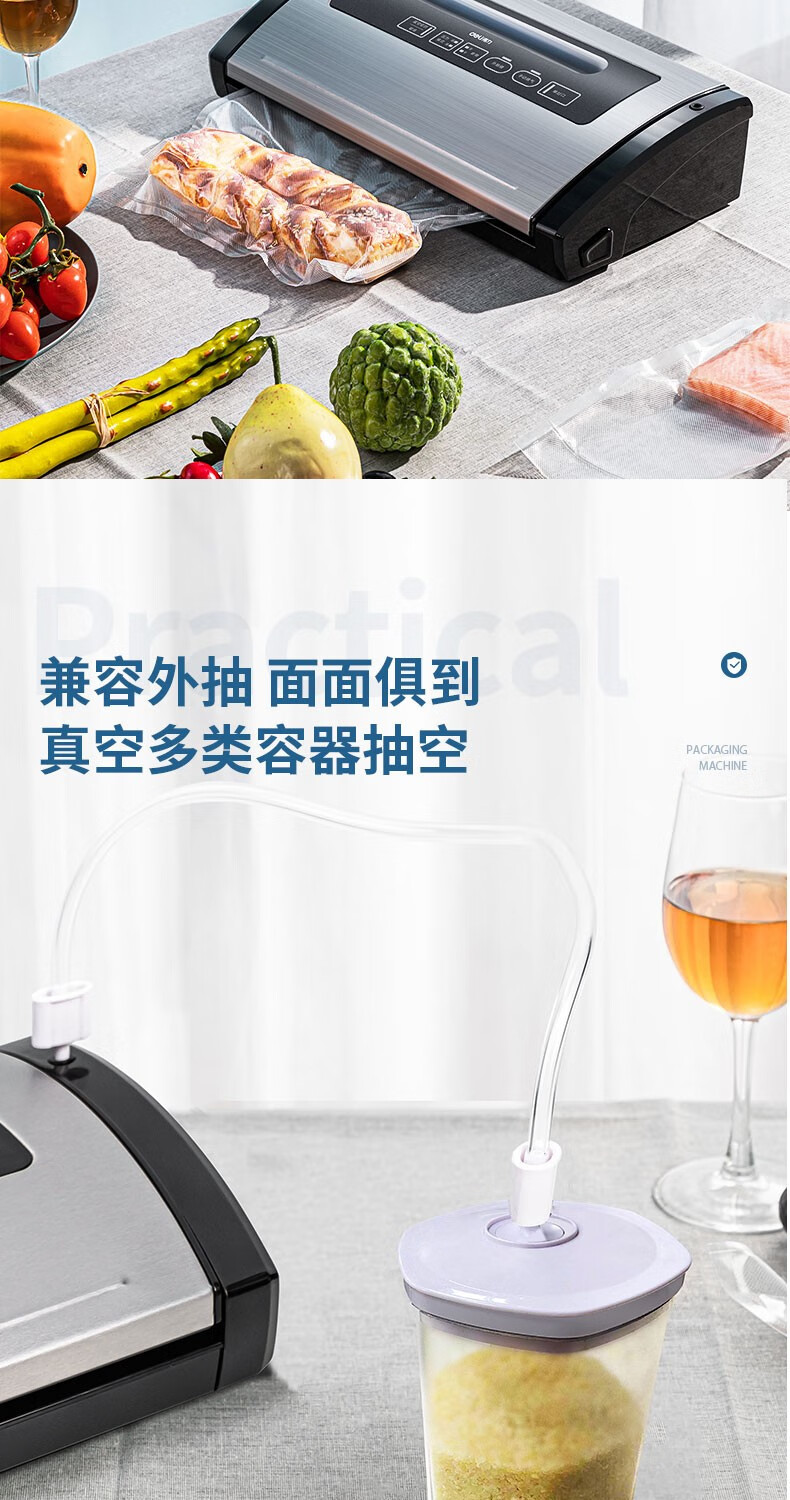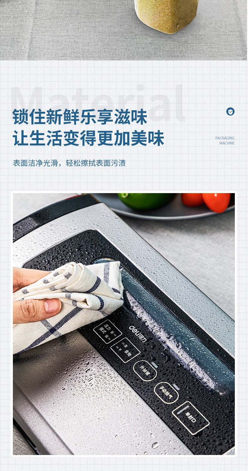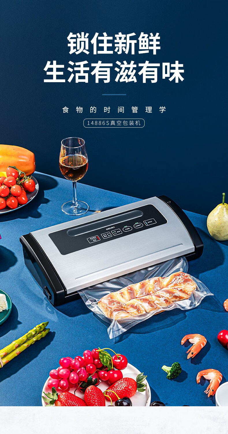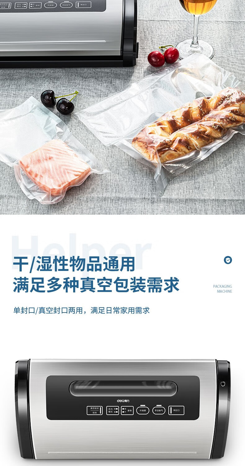 Deli 14886S vacuum machine, fully automatic sealing and evacuation machine, food preservation packaging machine, packaging machine, household small 14886s dry and wet soft powder universal (with 8 bags)
