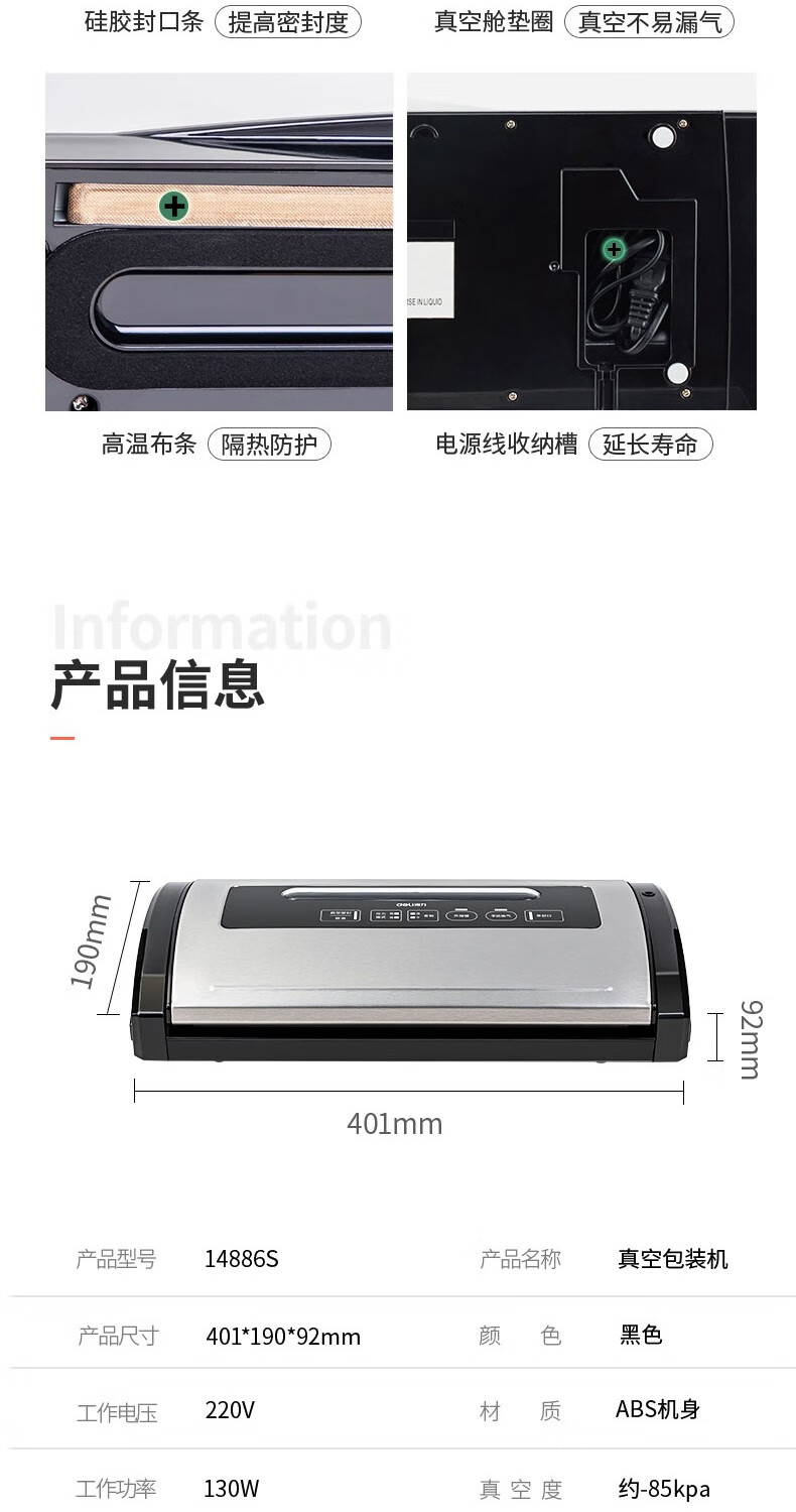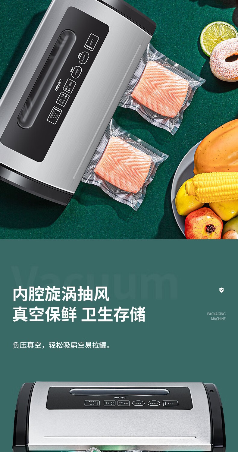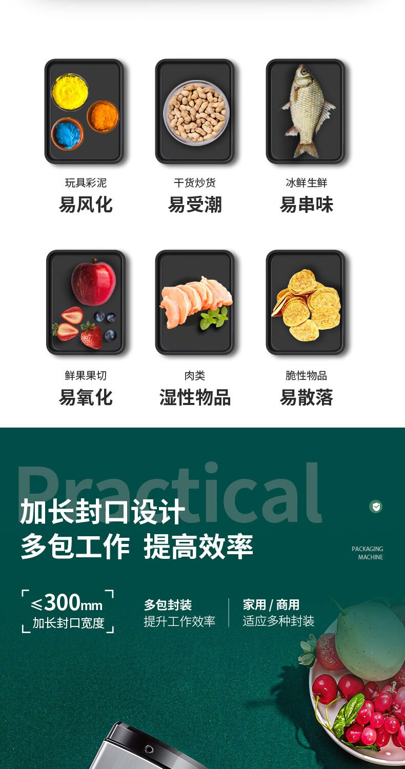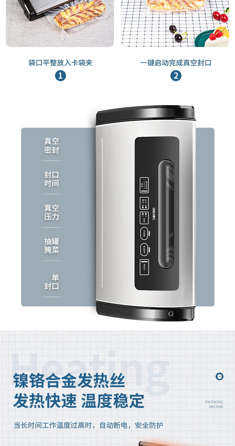 Deli 14886S vacuum machine, fully automatic sealing and evacuation machine, food preservation packaging machine, packaging machine, household small 14886s dry and wet soft powder universal (with 8 bags)