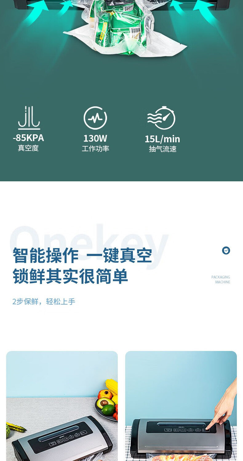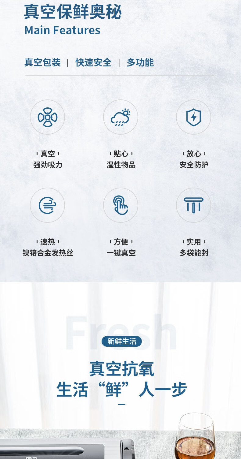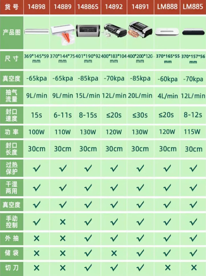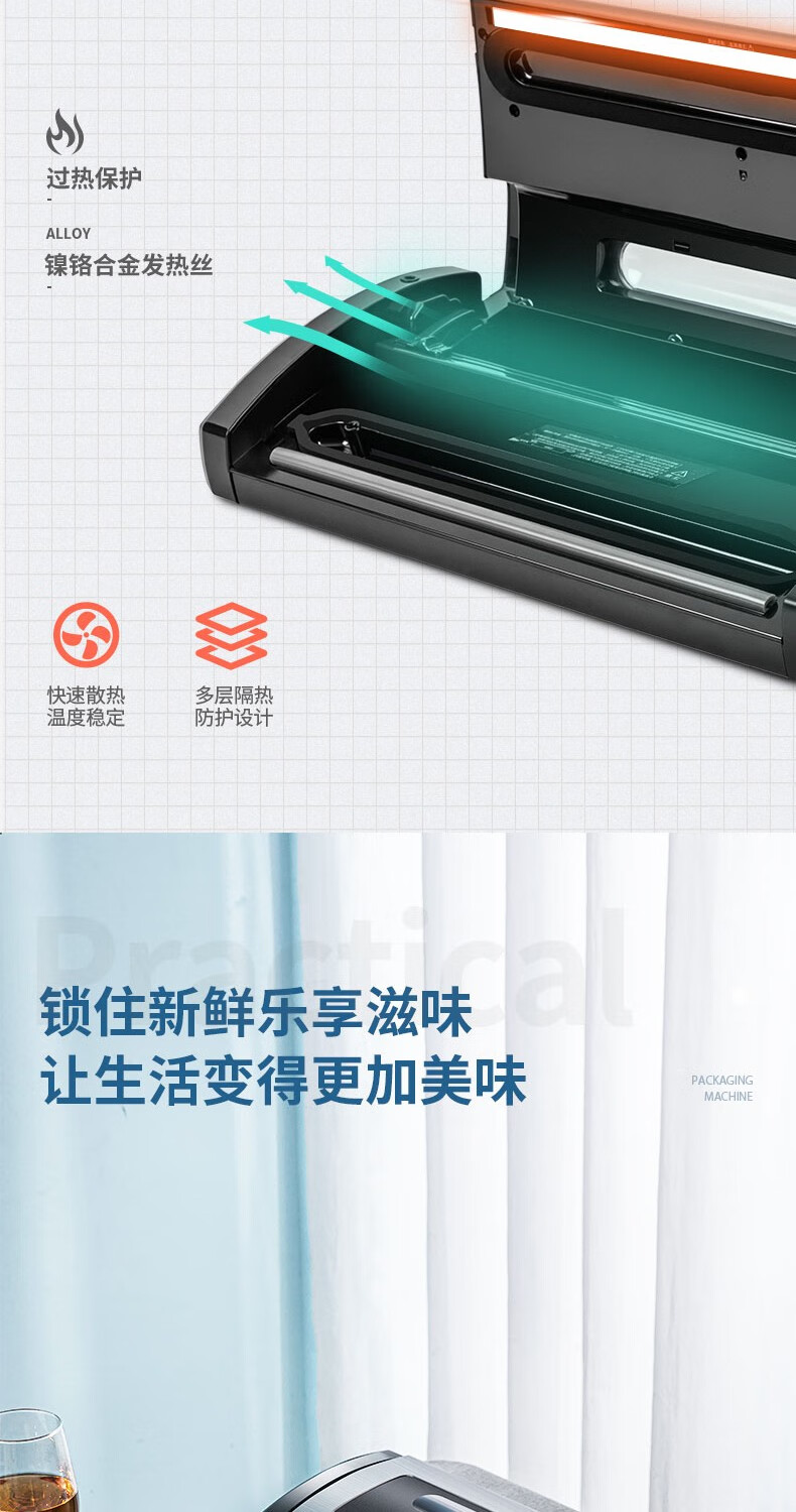 Deli 14886S vacuum machine, fully automatic sealing and evacuation machine, food preservation packaging machine, packaging machine, household small 14886s dry and wet soft powder universal (with 8 bags)
