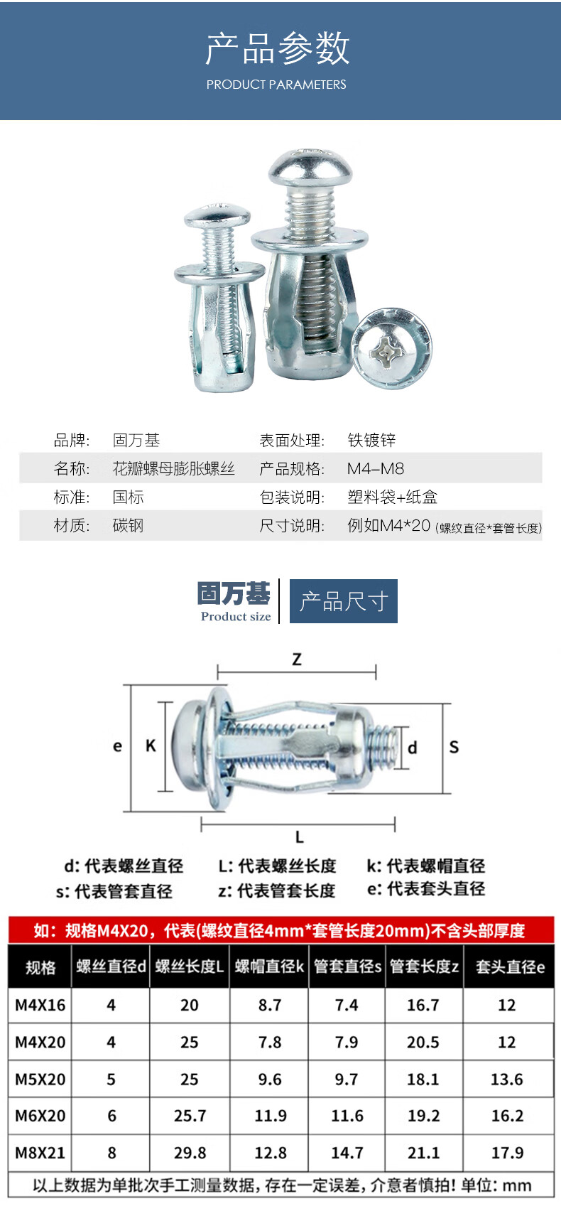 GUWANJI petal nut expansion screw plastic plate hollow iron sheet car fixed lantern type rivet expansion bolt M4x16 (10 pieces)