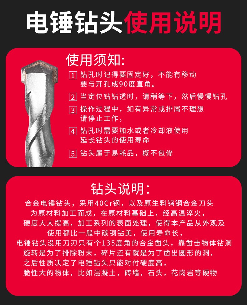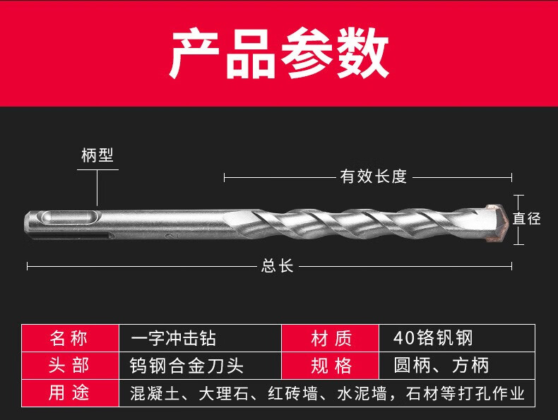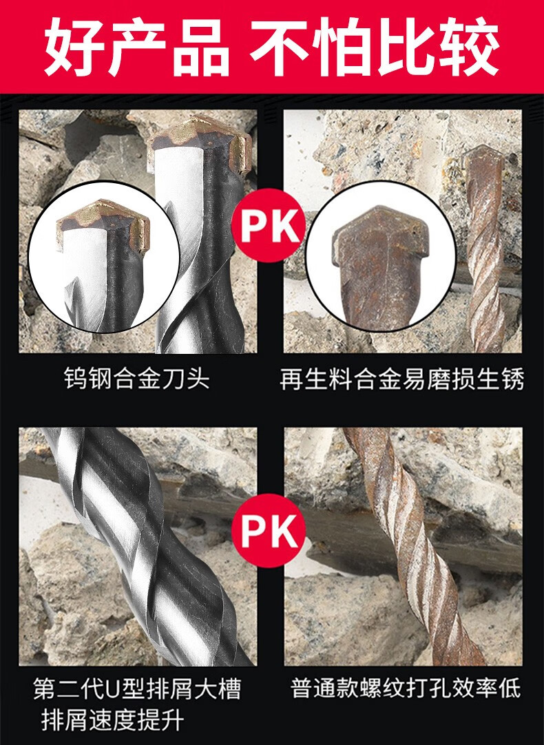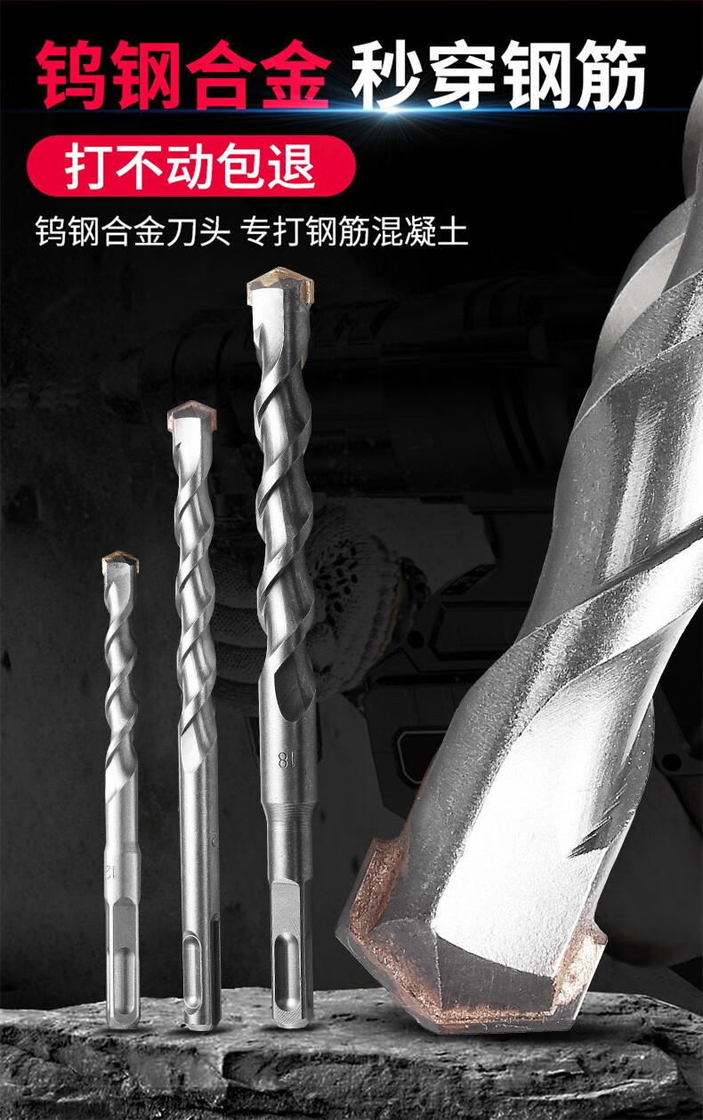 Chengzhou extended impact drill tungsten steel cement concrete square through the wall square handle round handle drilling and slotting alloy rotor 6*110 (round handle)