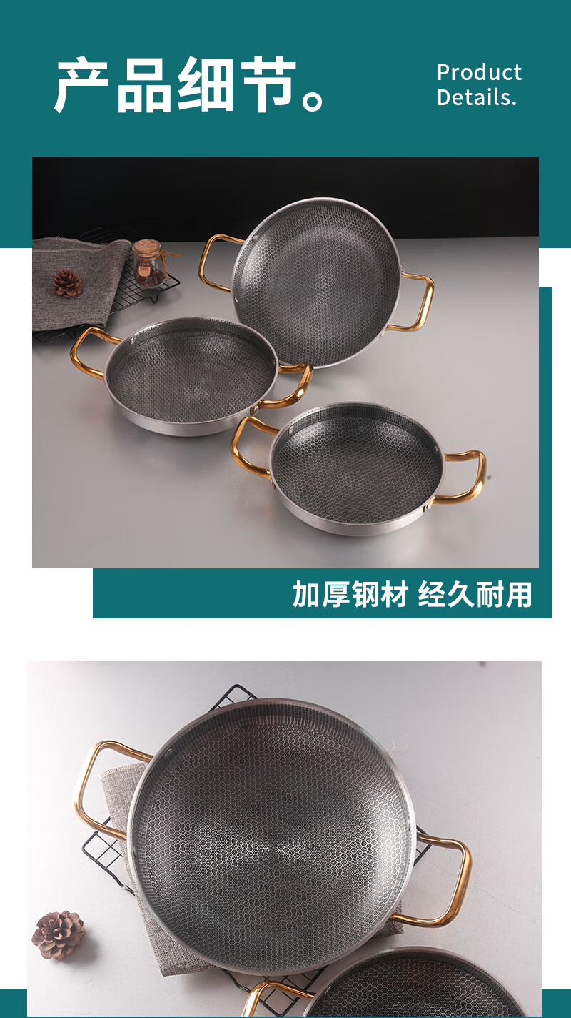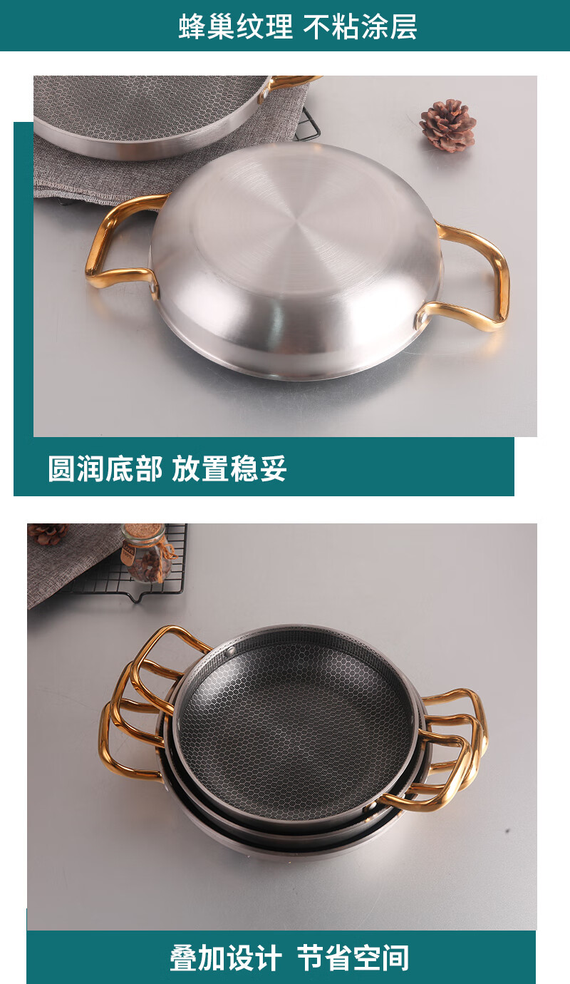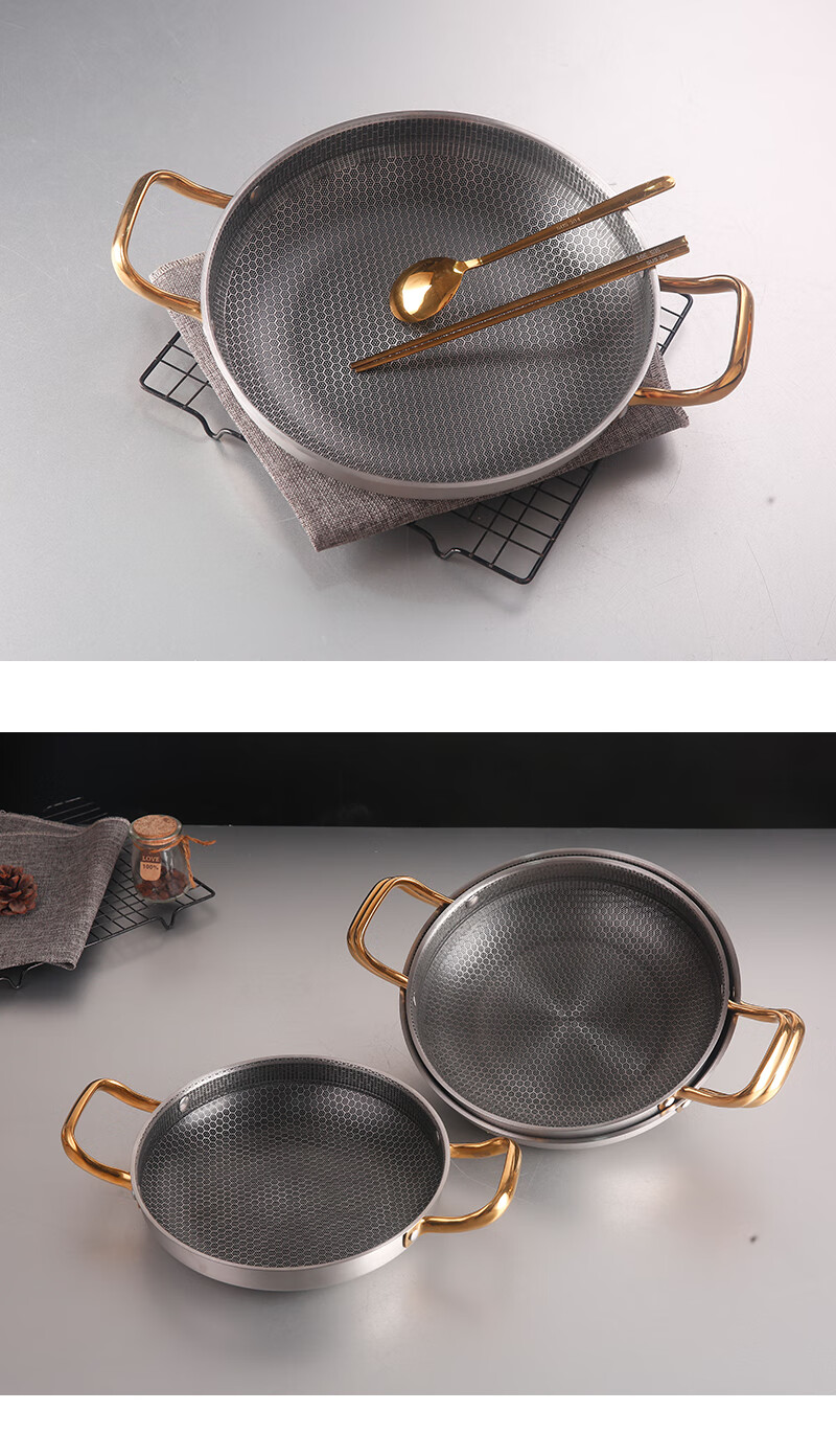 DELE honeycomb griddle stainless steel seafood rice pot crayfish plate thickened commercial creative double-ear pan griddle pot golden ear honeycomb griddle 28cm
