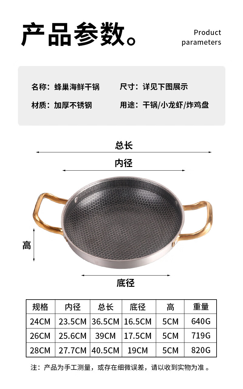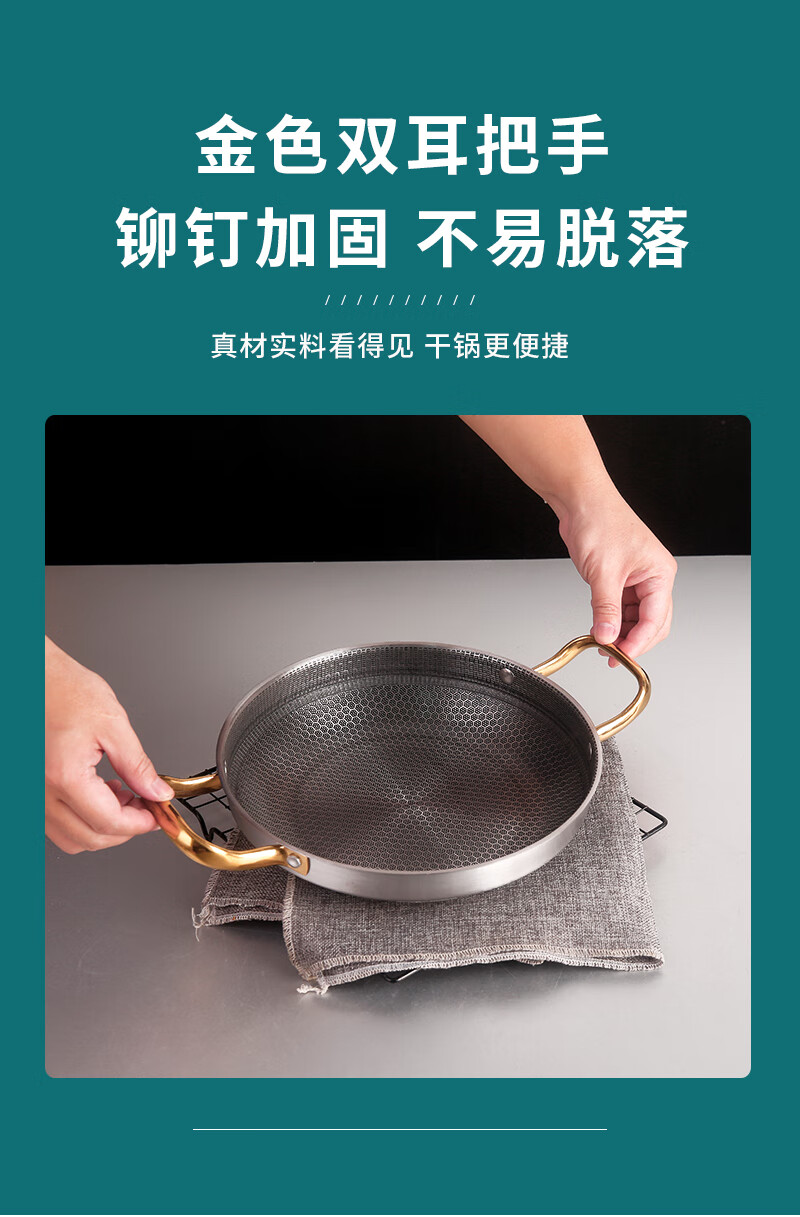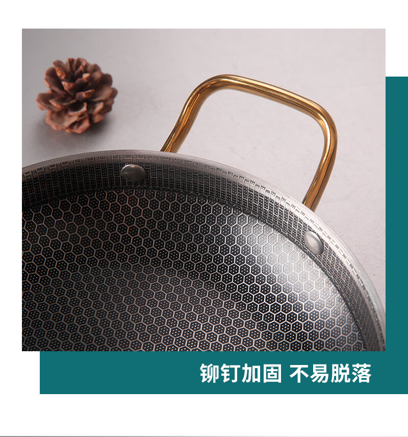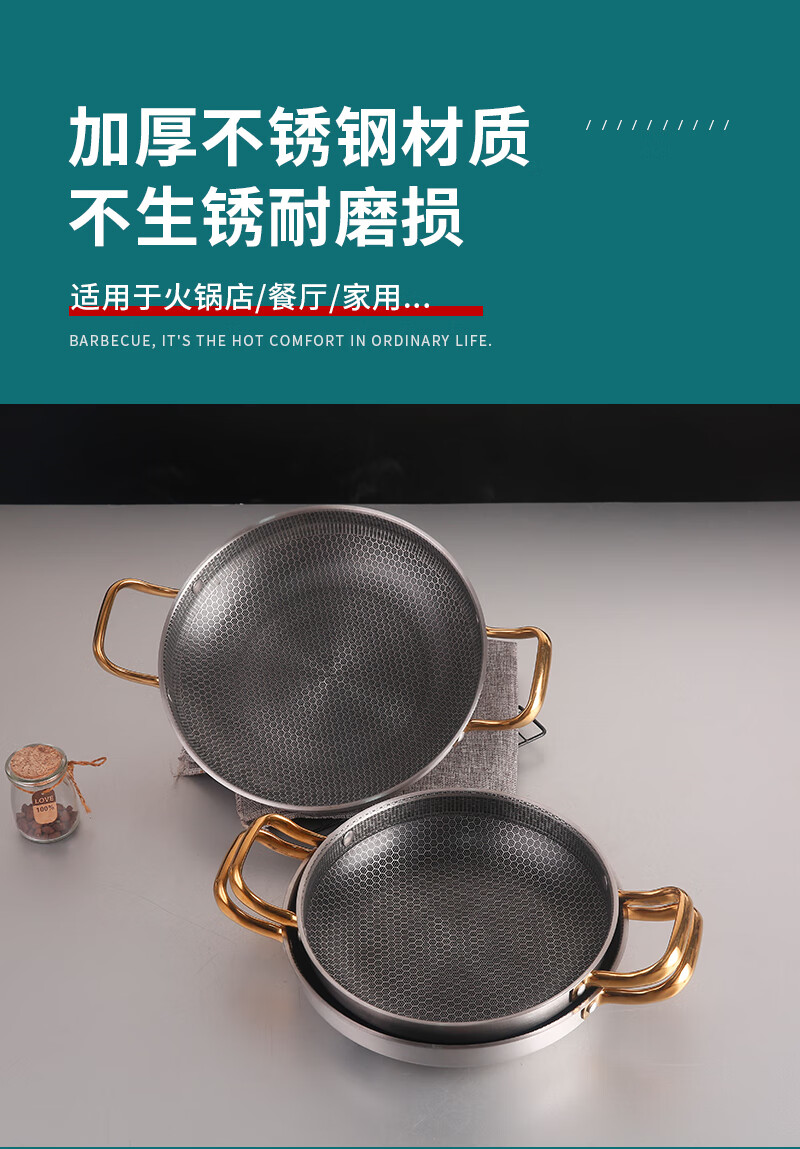 DELE honeycomb griddle stainless steel seafood rice pot crayfish plate thickened commercial creative double-ear pan griddle pot golden ear honeycomb griddle 28cm